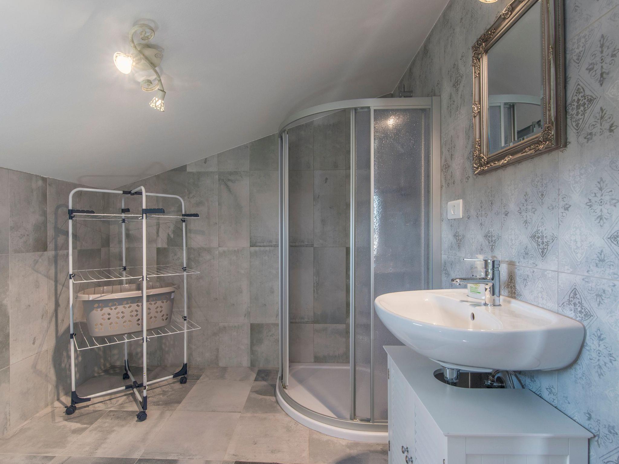 On the upper floor there are two bedrooms with double bed or double bed and single bed, a bathroom with WC / shower (washing machine). On the top floor there is a bedroom with double bed and sofa bed (1 person) and a bathroom.