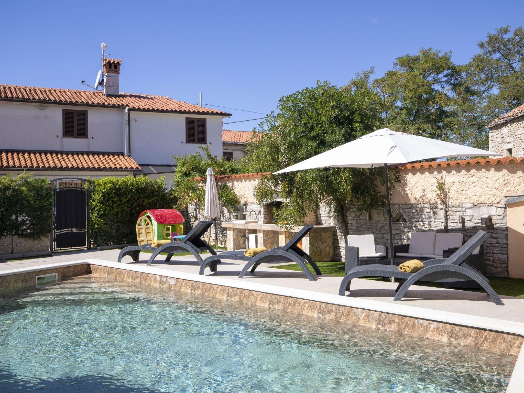 The property is conveniently located for exploring Istria. Barban is just 9 km away, Fažana 20 km, and beaches such as Luka Beach (17 km) and Fažana Beach (21.8 km) are within easy reach. National Park Brijuni is also nearby, offering opportunities for boat excursions and nature visits.