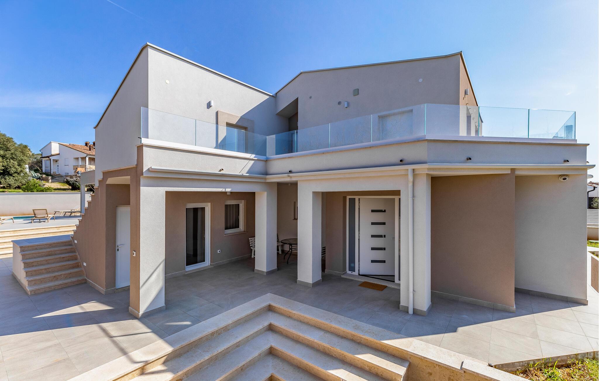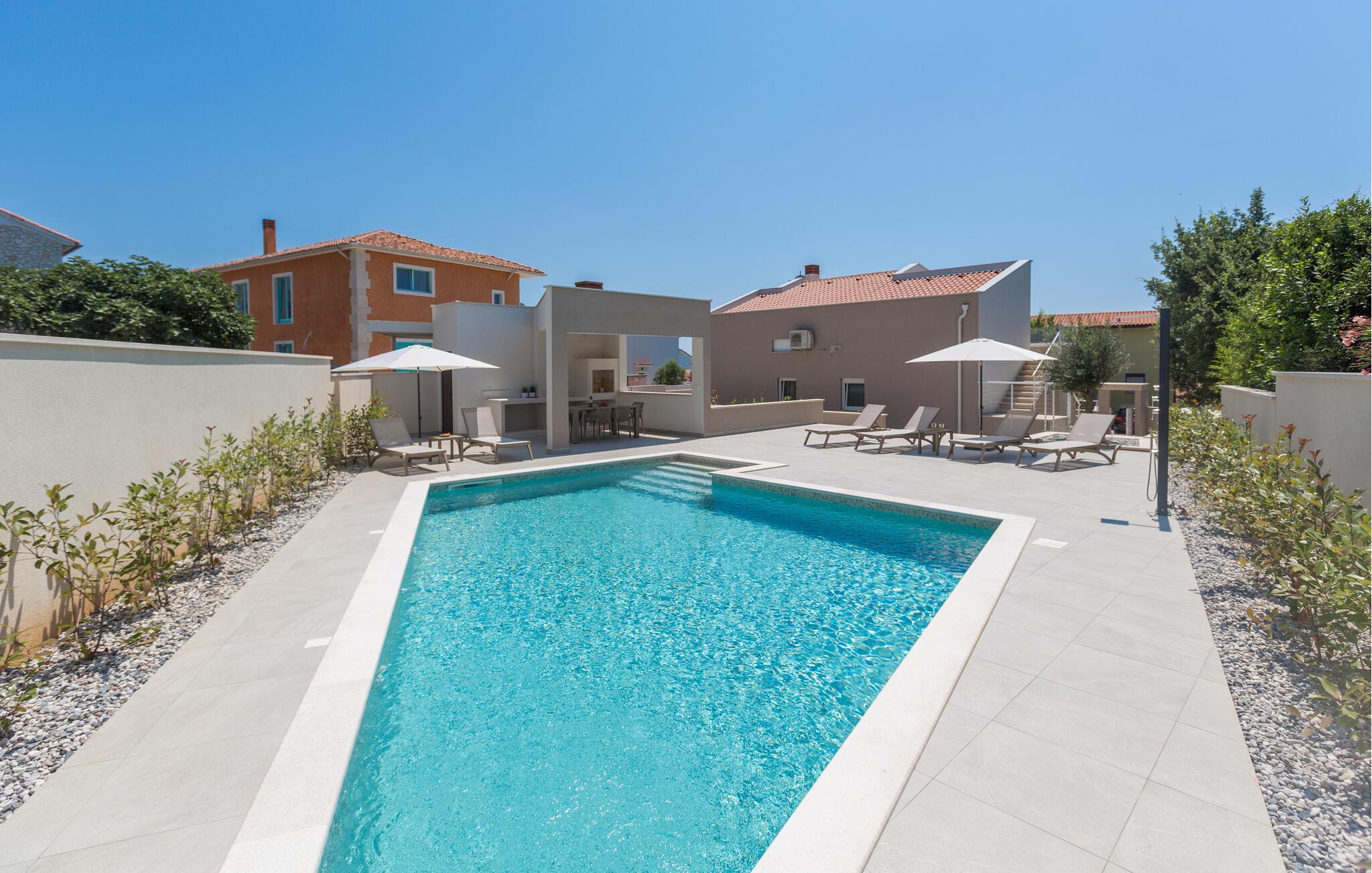 Glæd jer til en ferie i sus, dus og med masser af komfort i dette moderne luksushus med en lækker, privat pool.