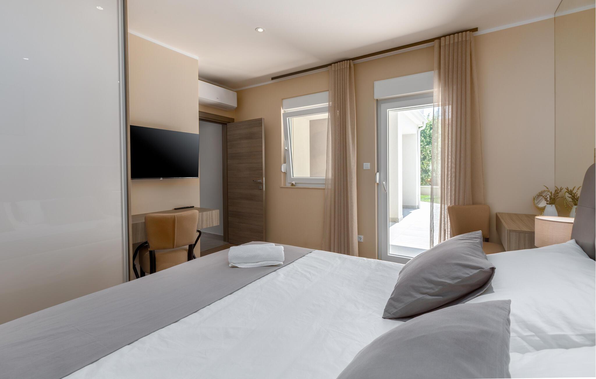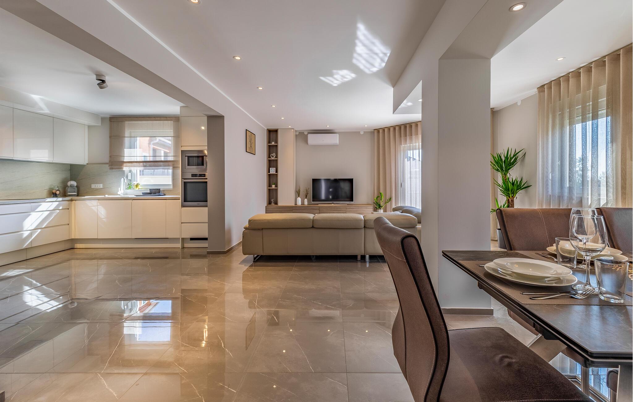 Her på Istriens vestkyst er der mange smukke strande, der indbyder til mange timers strandhygge for store og små. I kan også besøge historiske seværdigheder som Fort Benedetto eller kirken Crkva sv. Foska, som begge ligger tæt på huset. Tag også en dagstur til Pula, hvor I kan beundre det berømte amfiteater og Triumfbuen og bare slentre gennem de hyggelige gader.