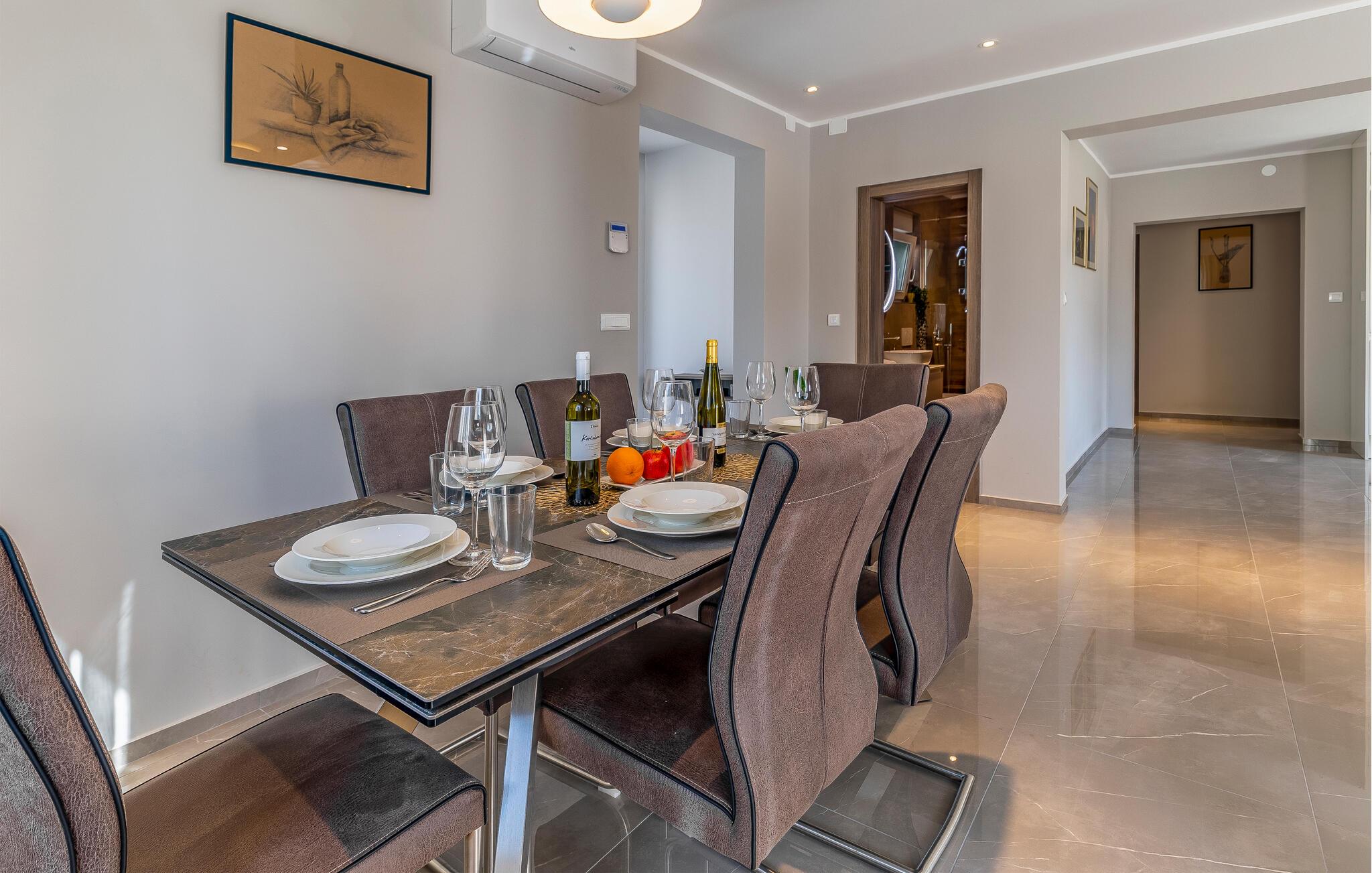 Hvis I er på udkig efter en ægte drømmebolig til årets familieferie, er I kommet til det helt rette sted. Denne villa bugner nemlig af luksus og kvalitet over hele linjen. Indretningen fremtræder stilsikkert og elegant, og med de mange moderne faciliteter får I alt, I behøver til at gøre madlavningen, måltiderne og aftenhyggen til en leg.