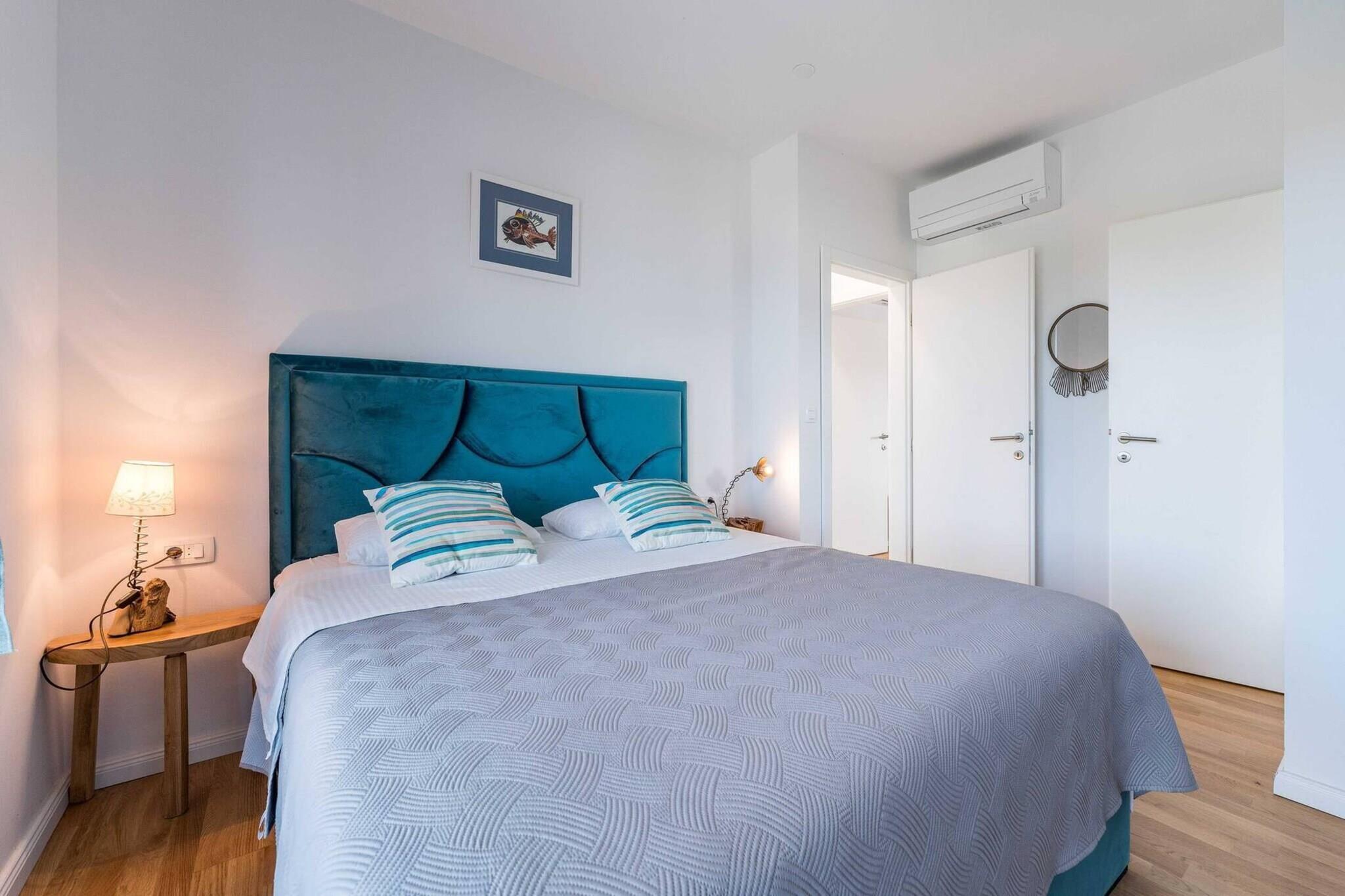 Denne fantastiske villa ved havet ligger lige ved kanten af det glitrende Adriaterhav og tilbyder en forreste række til den dalmatiske kysts skønhed. Kun få skridt fra de blide bølger inviterer den dig til at vågne op til lyden af havet og afslutte hver dag med solnedgange, der maler horisonten i guld og rosa. Dette elegante fristed er designet til familier eller grupper på op til otte personer og kombinerer moderne komfort med det afslappede rytme i ø-livet. Villaen er fordelt på to etager, hvor lyse, luftige interiører møder panoramaudsigt over havet. I stueetagen flyder den åbne stue og spisestue problemfrit over i et fuldt udstyret køkken, hvilket skaber et varmt, socialt rum til samvær. Ovenpå sikrer fire stilfulde soveværelser med eget badeværelse privatliv og komfort, mens en altan med havudsigt tilbyder en fredfyldt oase. Alle værelser er omhyggeligt indrettede, har aircondition og er udstyret med tv for din bekvemmelighed. Udenfor går livet i et langsommere tempo. En opvarmet infinity-pool synes at flyde ud i havet, omgivet af liggestole, der er perfekte til dovne eftermiddage. Nyd måltiderne under den overdækkede terrasse, tilberedt i dit udekøkken med stenpejs, eller slap af i saunaen efter en svømmetur. Med et fitnesscenter, cykler og endda et paddleboard til rådighed er der masser af muligheder for at udforske og slappe af. Øen Pašman er en sand skjult perle, der er let tilgængelig med færge, men alligevel langt fra fastlandets travlhed. En sandstrand og legeplads ligger lige foran din villa, en café og et marked ligger i nærheden, og lokale restauranter venter inden for gåafstand. Her føles hvert øjeblik ubesværet – sol, hav og ro i perfekt harmoni.