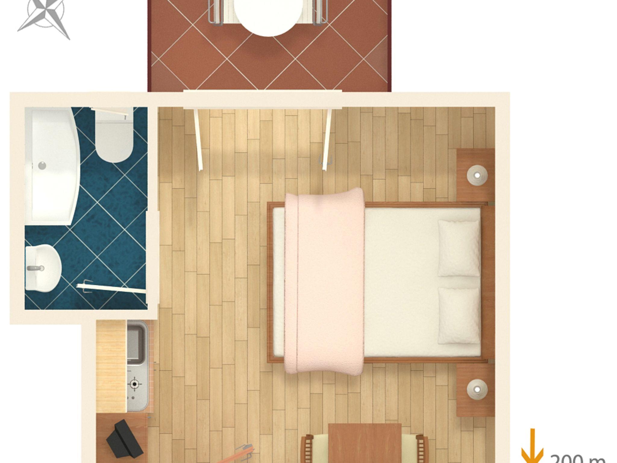 Studio bietet Platz für 2 Gäste. Die Betten sind in Schlafzimmern, die es 1 gibt, innerhalb einer Gesamtfläche von 14m2, angeordnet. Die Gäste haben einen eigenen Balkon zur Verfügung, auf der sie in warmen Sommernächten genießen können. Es ist erlaubt, Speisen auf dem Gemeinschafts-Grill vorzubereiten. IM PREIS INBEGRIFFEN: Kurtaxe, Endreinigung, Klimatisierung, Parkplatz, Internet, Bügeleisen, Bügelbrett, Föhn. VERBINDLICHE ZUSÄTZLICHE KOSTEN: Aufzahlung für Kurzaufenthalte (prozentualer Zuschlag pro Nächtigungsanzahl: 30% - 1, 20% - 2, 10% - 3). Die Verfügbarkeit zusätzlicher Dienstleistungen in Ihrem reservierten Termin und die Preise derselben (falls nicht aufgeführt) müssen im Voraus überprüft werden. Zusätzliche Dienstleistungen die in der Zahlungsaufforderung nicht aufgeführt sind werden direkt beim Vermieter bezahlt, angenommen der Gast nutzt auch diese. Ermäßigung auf den Grundpreis: Gratistag 28=25 (bei einem Aufenthalt von 28 oder mehr Tagen erhalten Sie 3 kostenlose Tage für den Aufenthalt bis 31.12.26).