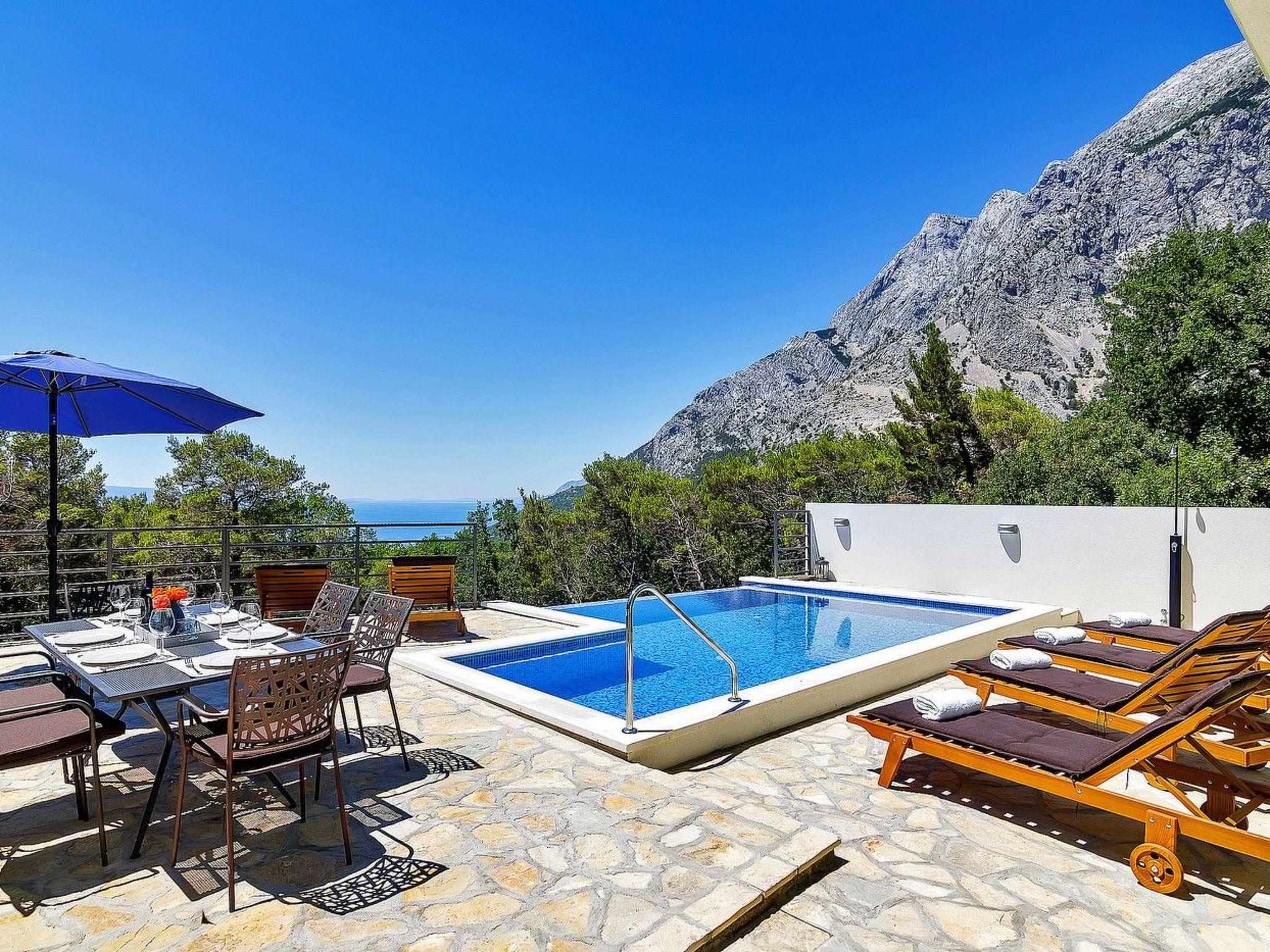 Above the coast and the town of Baska Voda on the Makarska Riviera. In the village of Bast, surrounded by pine forest. Baska Voda and the beach are only 3 km away by motorway