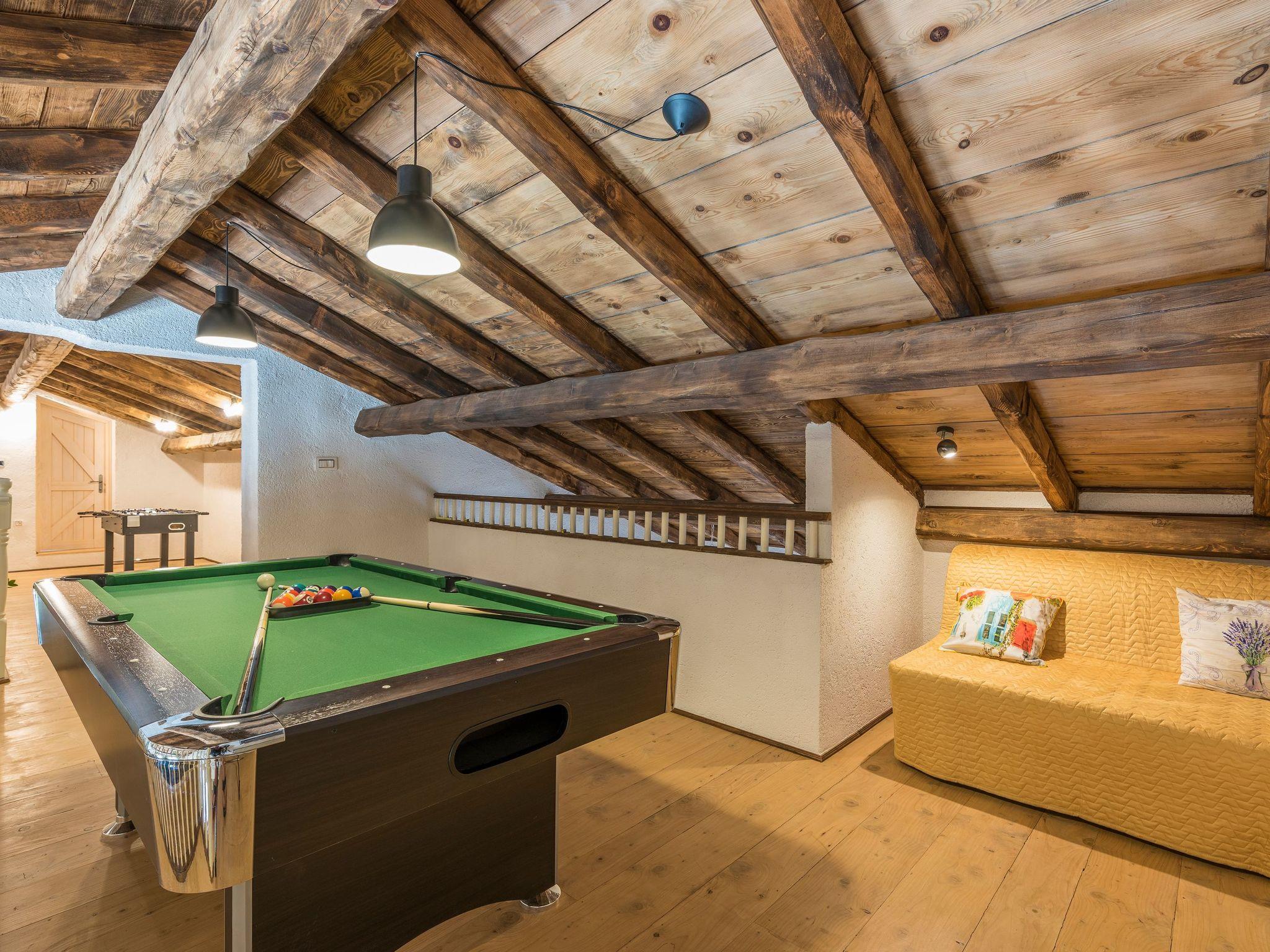 It is suitable for large groups of guests (up to 14 people), or 2 - 3 families together and consists of 3 levels. Basement (gym, traditional fire place, winery, sauna), ground level (bedroms, bathrooms, kitchen, living room) and 1st floor (galery with games and 2 small bedrooms-bathroom) + studio apartment. Outside is a big terace with pool and jacuzzi surrounded by a traditional garden.