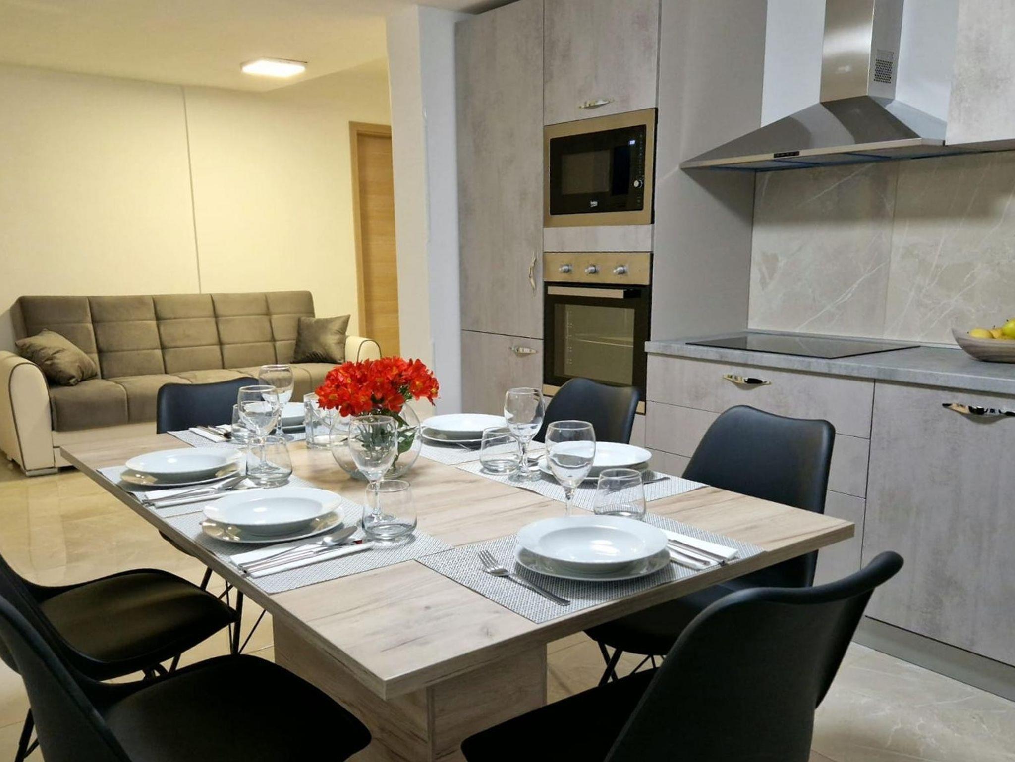 Ferienwohnung bietet Platz für 4 Gäste. Die Betten sind in Schlafzimmern, die es 2 gibt, innerhalb einer Gesamtfläche von 57m2, angeordnet. Die Gäste haben eine eigene Terrasse zur Verfügung, auf der sie in warmen Sommernächten genießen können. Es ist erlaubt, Speisen auf dem Gemeinschafts-Grill vorzubereiten. Unterkunftseinheit hat Räume, die von dem Rest der Einheit abgetrennt werden. IM PREIS INBEGRIFFEN: Kurtaxe, Endreinigung, Klimatisierung, Parkplatz, Internet, Bügeleisen, Bügelbrett, Föhn. Die Verfügbarkeit zusätzlicher Dienstleistungen in Ihrem reservierten Termin und die Preise derselben (falls nicht aufgeführt) müssen im Voraus überprüft werden. Zusätzliche Dienstleistungen die in der Zahlungsaufforderung nicht aufgeführt sind werden direkt beim Vermieter bezahlt, angenommen der Gast nutzt auch diese.