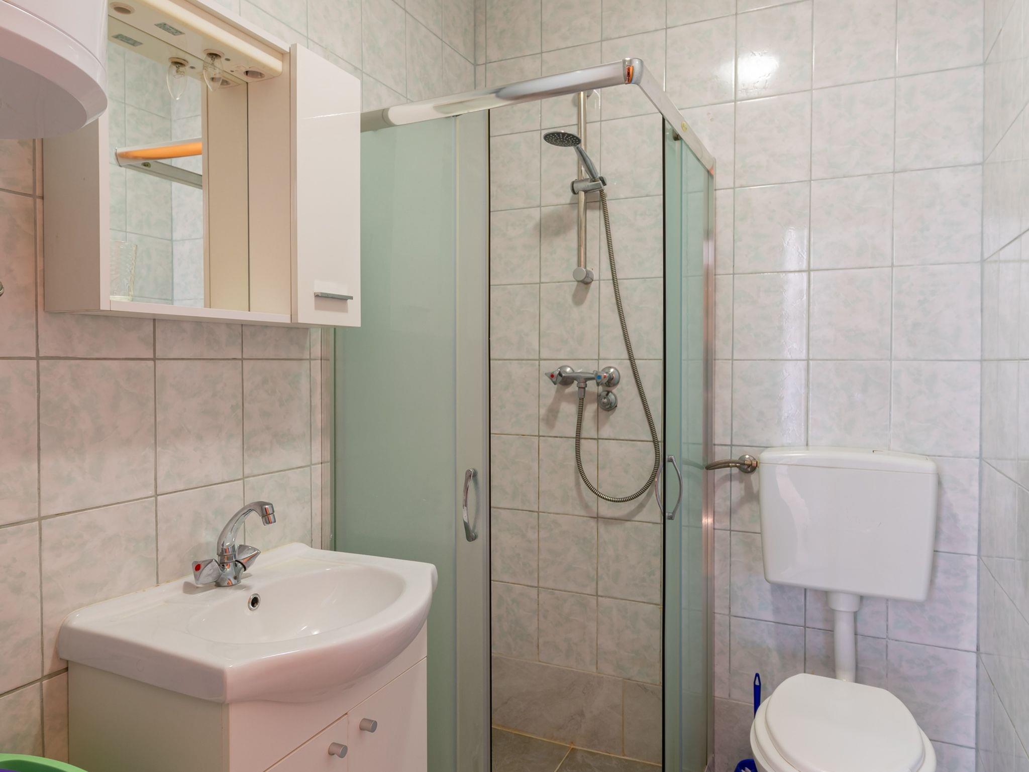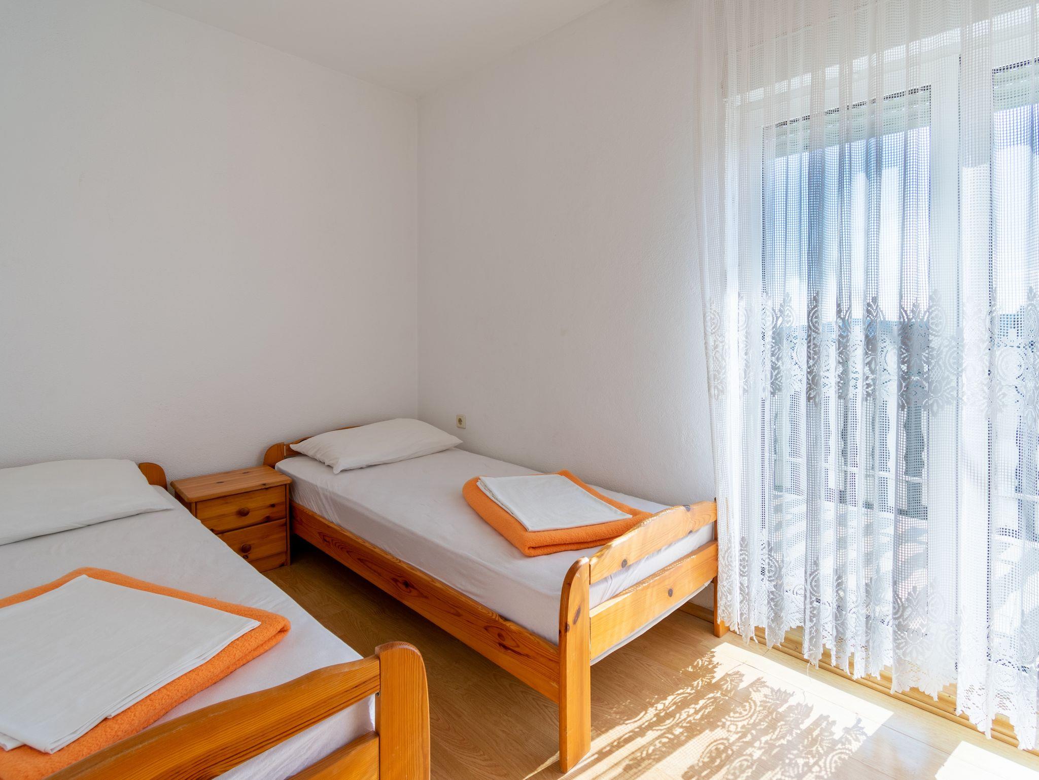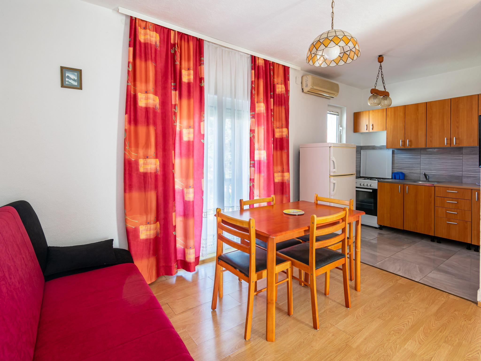Ferienwohnung bietet Platz für 5 Gäste. Die Betten sind in Schlafzimmern, die es 2 gibt, und in Esszimmer, innerhalb einer Gesamtfläche von 38m2, angeordnet. Die Gäste haben eine eigene Terrasse zur Verfügung, auf der sie in warmen Sommernächten genießen können. Das Apartment bietet Meerblick. Es ist erlaubt, Speisen auf dem Gemeinschafts-Grill vorzubereiten. IM PREIS INBEGRIFFEN: Kurtaxe, Endreinigung, Parkplatz, Internet, Kinderbett, Zusatzbett, Bügeleisen, Bügelbrett, Föhn, tragbarer Grill. VERBINDLICHE ZUSÄTZLICHE KOSTEN: Aufzahlung für Kurzaufenthalte (prozentualer Zuschlag pro Nächtigungsanzahl: 30% - 1, 20% - 2, 10% - 3). UNVERBINDLICHE ZUSÄTZLICHE KOSTEN: Klimatisierung (5,00 € pro Nacht). Die Verfügbarkeit zusätzlicher Dienstleistungen in Ihrem reservierten Termin und die Preise derselben (falls nicht aufgeführt) müssen im Voraus überprüft werden. Zusätzliche Dienstleistungen die in der Zahlungsaufforderung nicht aufgeführt sind werden direkt beim Vermieter bezahlt, angenommen der Gast nutzt auch diese. Ermäßigung auf den Grundpreis: Gratistag 21=19 (bei einem Aufenthalt von 21 Tagen oder mehr erhalten Sie 2 Gratistage für den Aufenthalt bis 31.12.26).