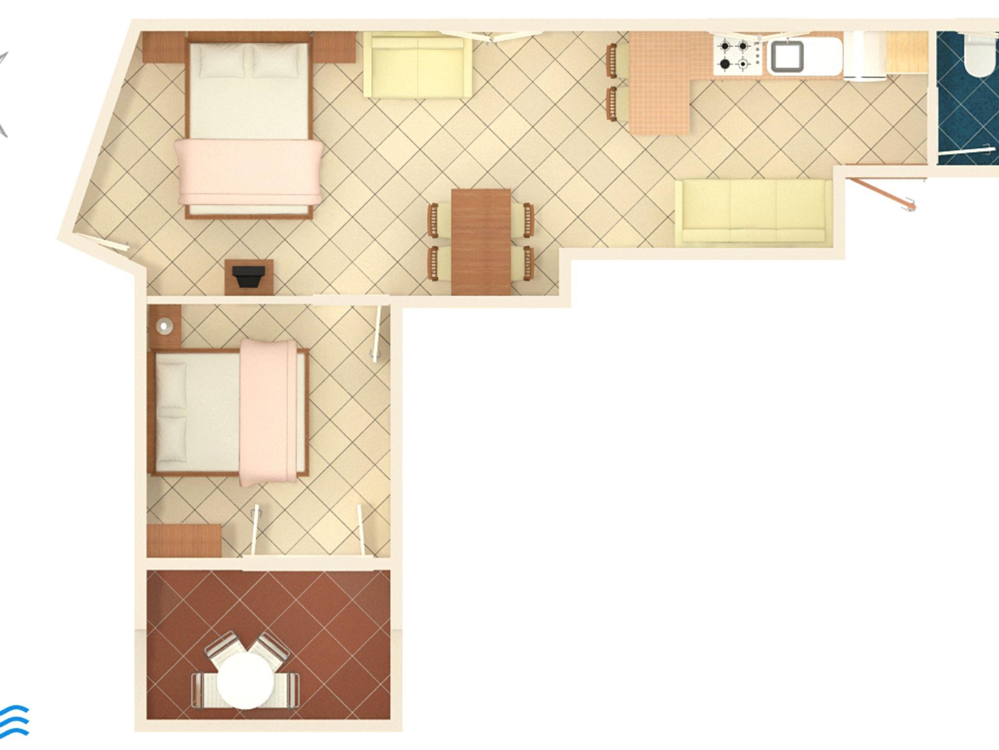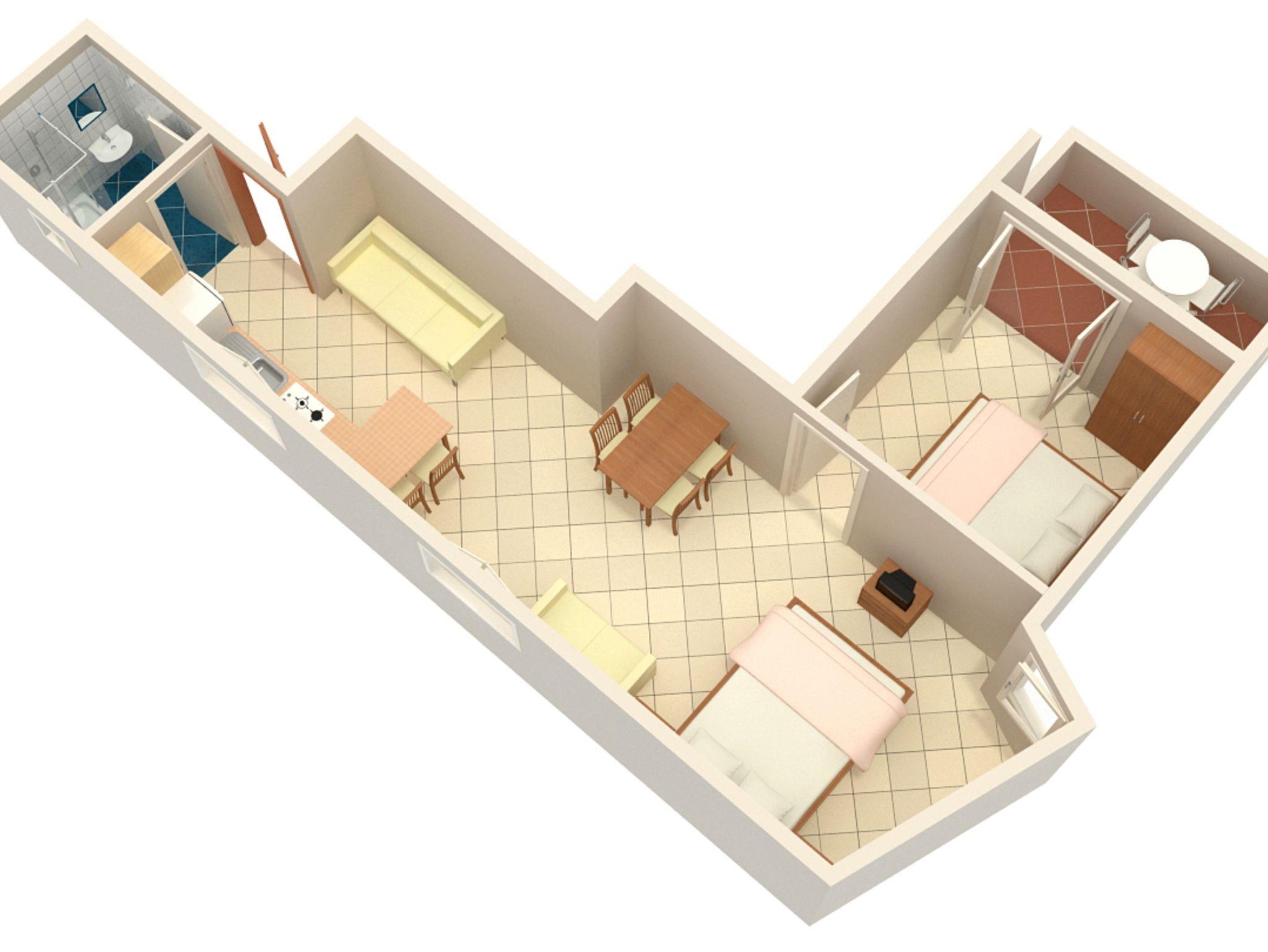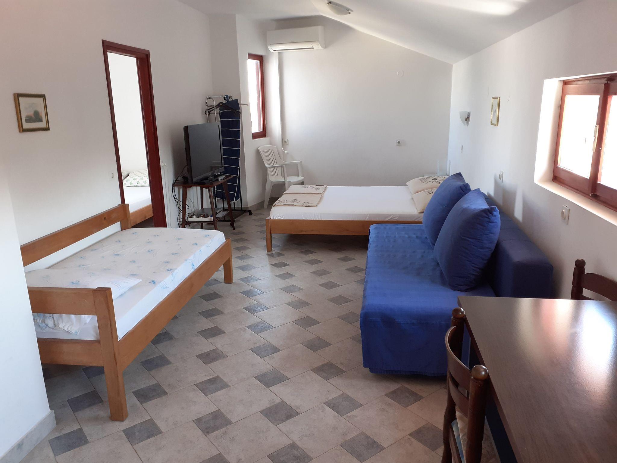 Studio bietet Platz für 5 Gäste. Die Betten sind in Schlafzimmern, die es 1 gibt, und in Wohnzimmer, innerhalb einer Gesamtfläche von 38m2, angeordnet. Die Gäste haben eine eigene Terrasse zur Verfügung, auf der sie in warmen Sommernächten genießen können. Das Studio-Apartment bietet Meerblick. Es ist erlaubt, Speisen auf dem Gemeinschafts-Grill vorzubereiten. IM PREIS INBEGRIFFEN: Kurtaxe, Endreinigung, Internet, Wäschewaschen, tragbarer Grill. VERBINDLICHE ZUSÄTZLICHE KOSTEN: Aufzahlung für Kurzaufenthalte (prozentualer Zuschlag pro Nächtigungsanzahl: 30% - 1, 20% - 2, 10% - 3). UNVERBINDLICHE ZUSÄTZLICHE KOSTEN: Klimatisierung (5,00 € pro Nacht). Die Verfügbarkeit zusätzlicher Dienstleistungen in Ihrem reservierten Termin und die Preise derselben (falls nicht aufgeführt) müssen im Voraus überprüft werden. Zusätzliche Dienstleistungen die in der Zahlungsaufforderung nicht aufgeführt sind werden direkt beim Vermieter bezahlt, angenommen der Gast nutzt auch diese. Ermäßigung auf den Grundpreis: Gratistag 21=19 (bei einem Aufenthalt von 21 Tagen oder mehr erhalten Sie 2 Gratistage für den Aufenthalt bis 31.12.26).