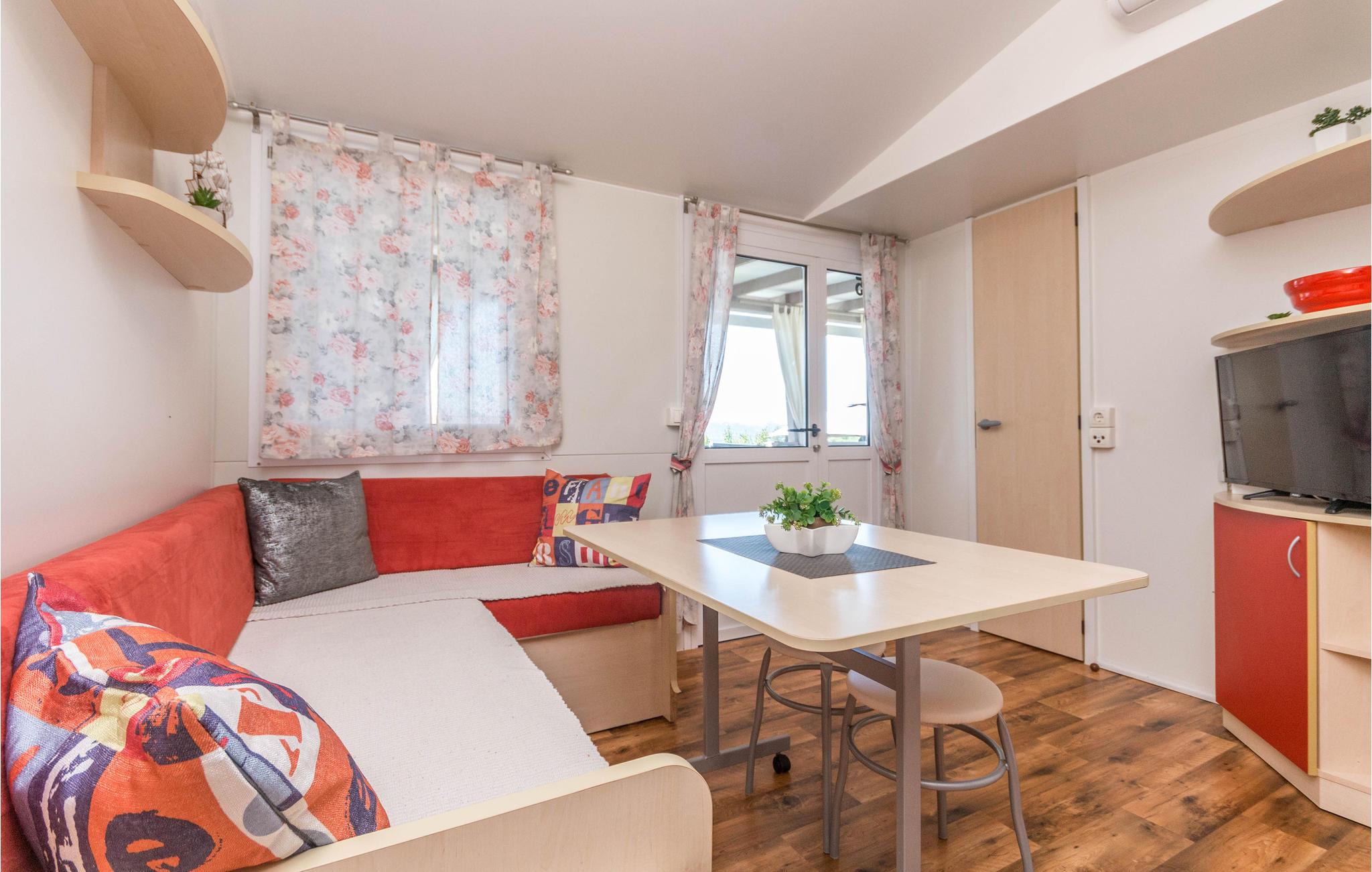 Denne skønne ferielejlighed ligger på en skøn grund med flere ferielejligheder og mobilhomes. Sammen med familien kan I finde jer godt tilpas her, og I vil finde alt, hvad I behøver for at slappe af fra hverdagen. Find jer godt til rette i det smukke mobilehome og nyd dagens måltider på jeres overdækkede og store terrasse. Udforsk grunden, hvorfra I også kan se havet. Der er en legeplads for børn og en fælles pool og spabad, hvor hele familien kan slappe af. Intet står i vejen for fælles grillaftener, og man kan også komme i snak med de øvrige gæster på grunden.