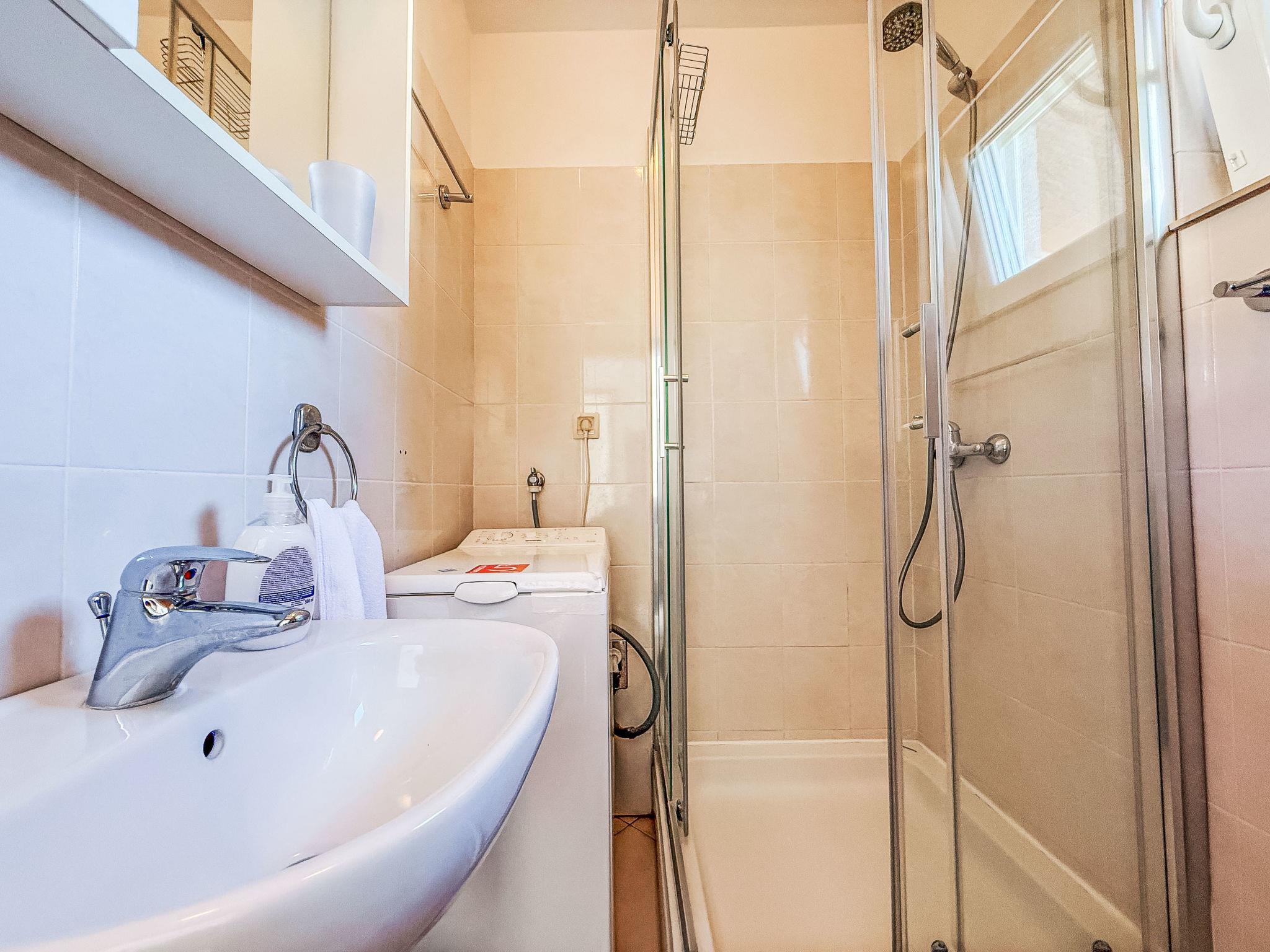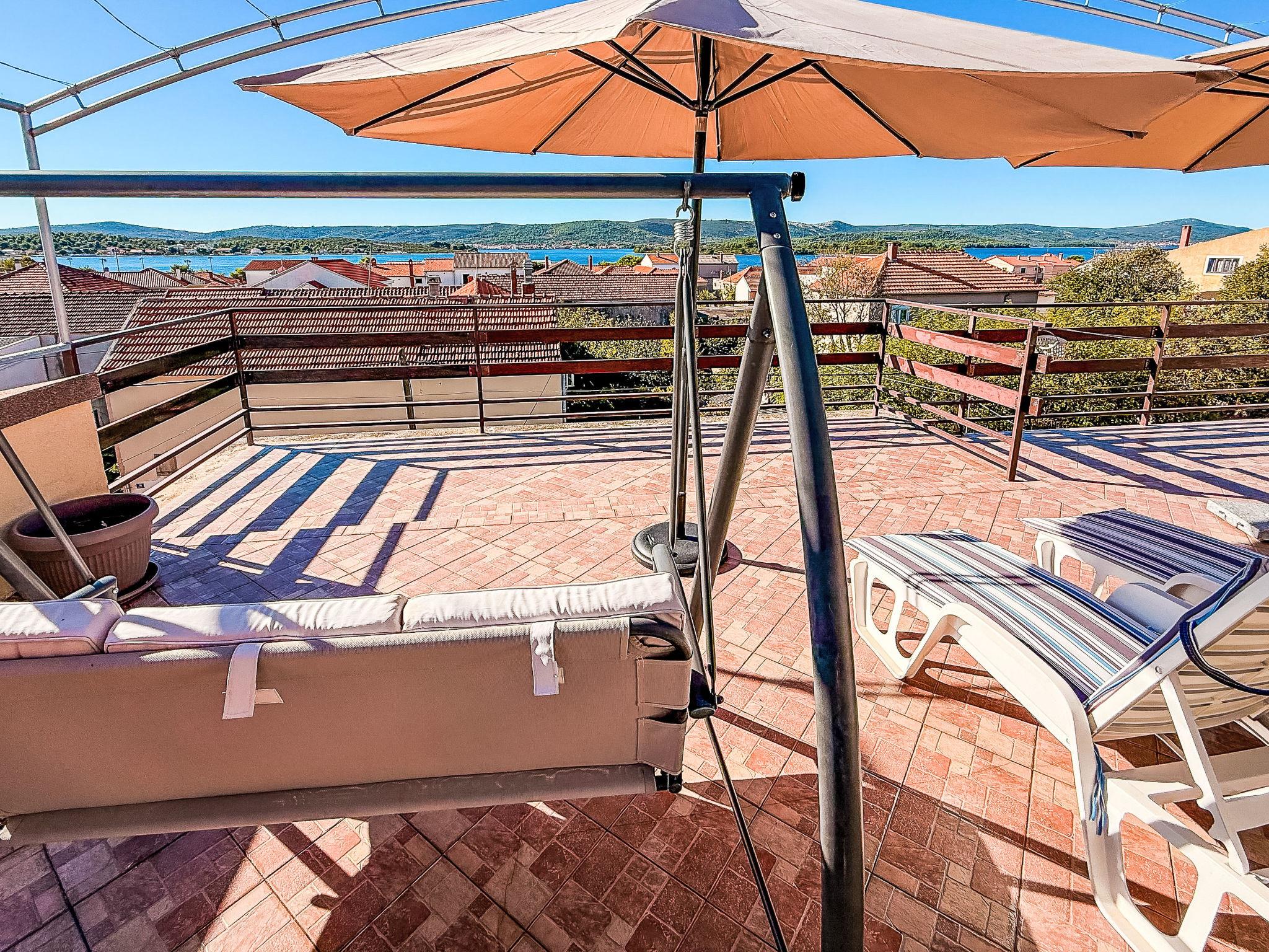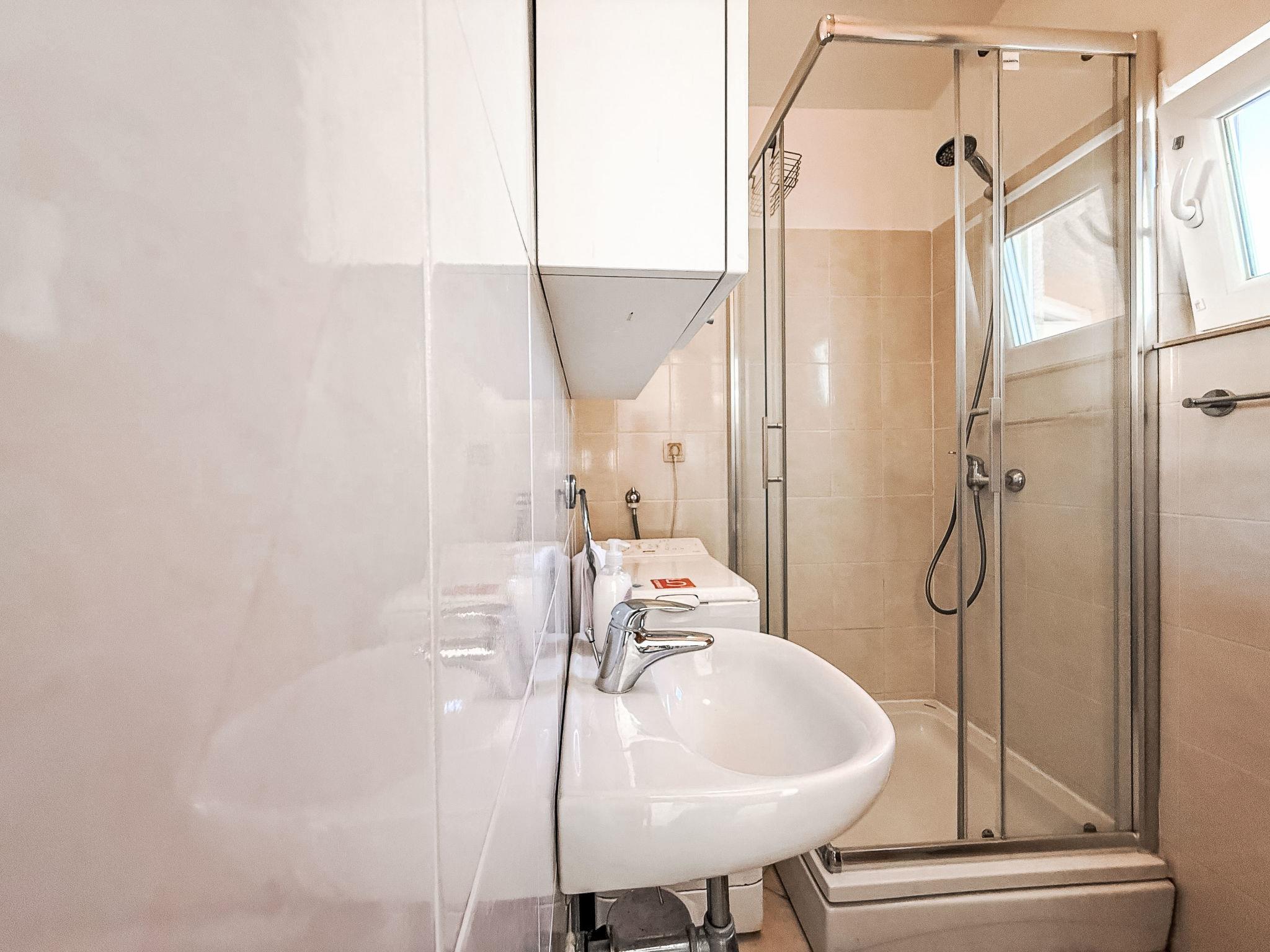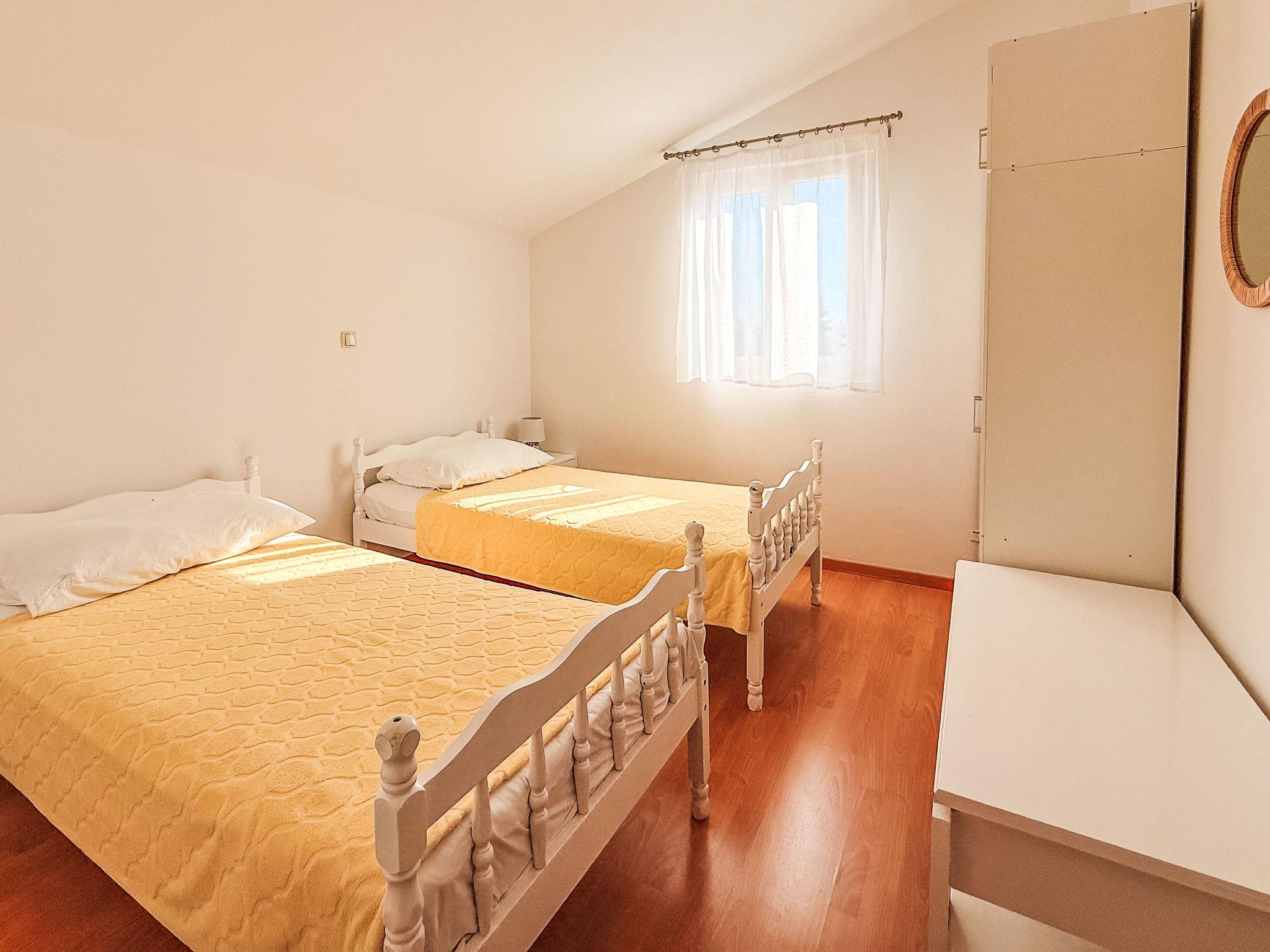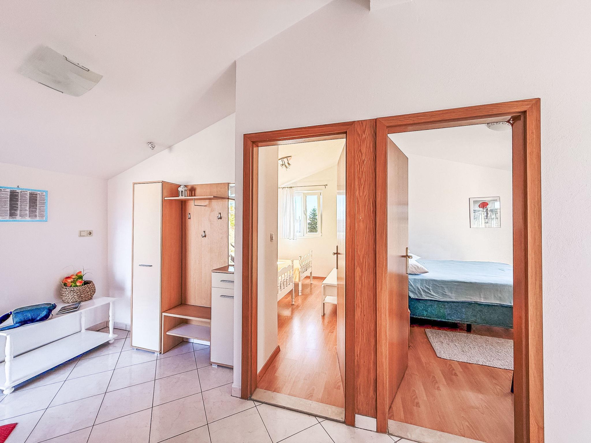 "Ana", 3-room apartment 55 m2 on 2nd floor. Living/dining room with 1 sofabed, satellite TV and air conditioning. Exit to the terrace. 1 room with 2 beds (90 cm, length 200 cm). 1 room with 1 double bed (2 x 80 cm, length 200 cm). Exit to the terrace. With sloping ceilings, open kitchen (oven, 4 ceramic glass hob hotplates, toaster, kettle, microwave, freezer, electric coffee machine) with dining table. Shower/WC. No heating option. Terrace 50 m2 partly roofed. Terrace furniture, deck chairs. View of the sea. Facilities: washing machine. Internet (WiFi, free). Parking (1 car) at the house. Please note: non-smokers only.