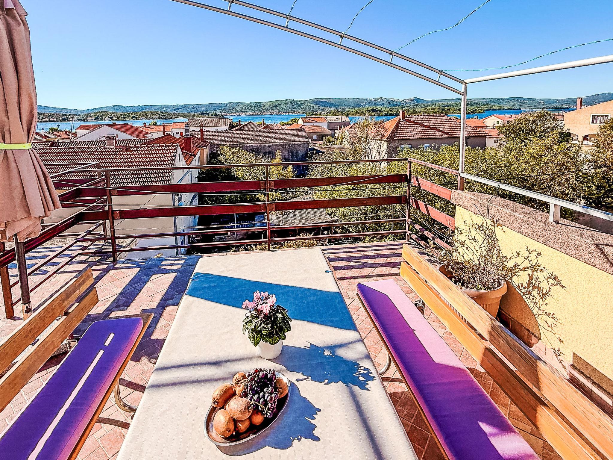 Turanj 1 km from Sv. Filip i Jakov: 3-family house "Ana". 100 m from the centre of Turanj, 5 km from the centre of Biograd, 200 m from the sea, 200 m from the beach. For shared use: property 400 m2 (fenced), garden with plants. In the house: internet access. Parking on the premises. Shop 150 m, restaurant 200 m, bus stop 120 m, pebble beach 200 m.