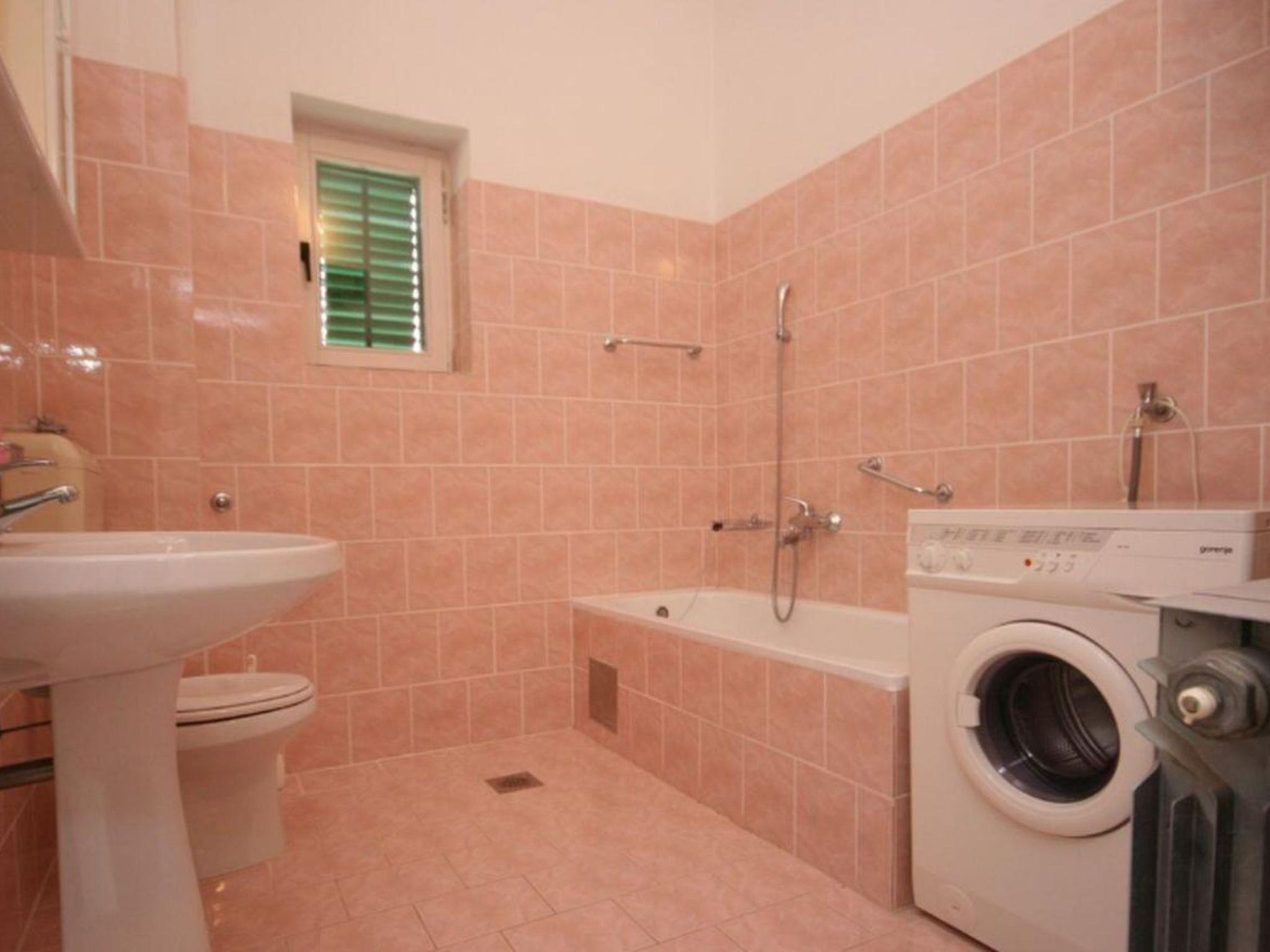 Step outside to discover a shared garden, an oasis of tranquility for communal use where you can immerse yourself in the laid-back Dalmatian lifestyle. The apartment benefits from both a balcony and a terrace, offering versatile outdoor spaces for relaxation or dining al fresco. These spots are ideal for unwinding after a day of exploration or simply enjoying the company of your travel companions in the fresh air.