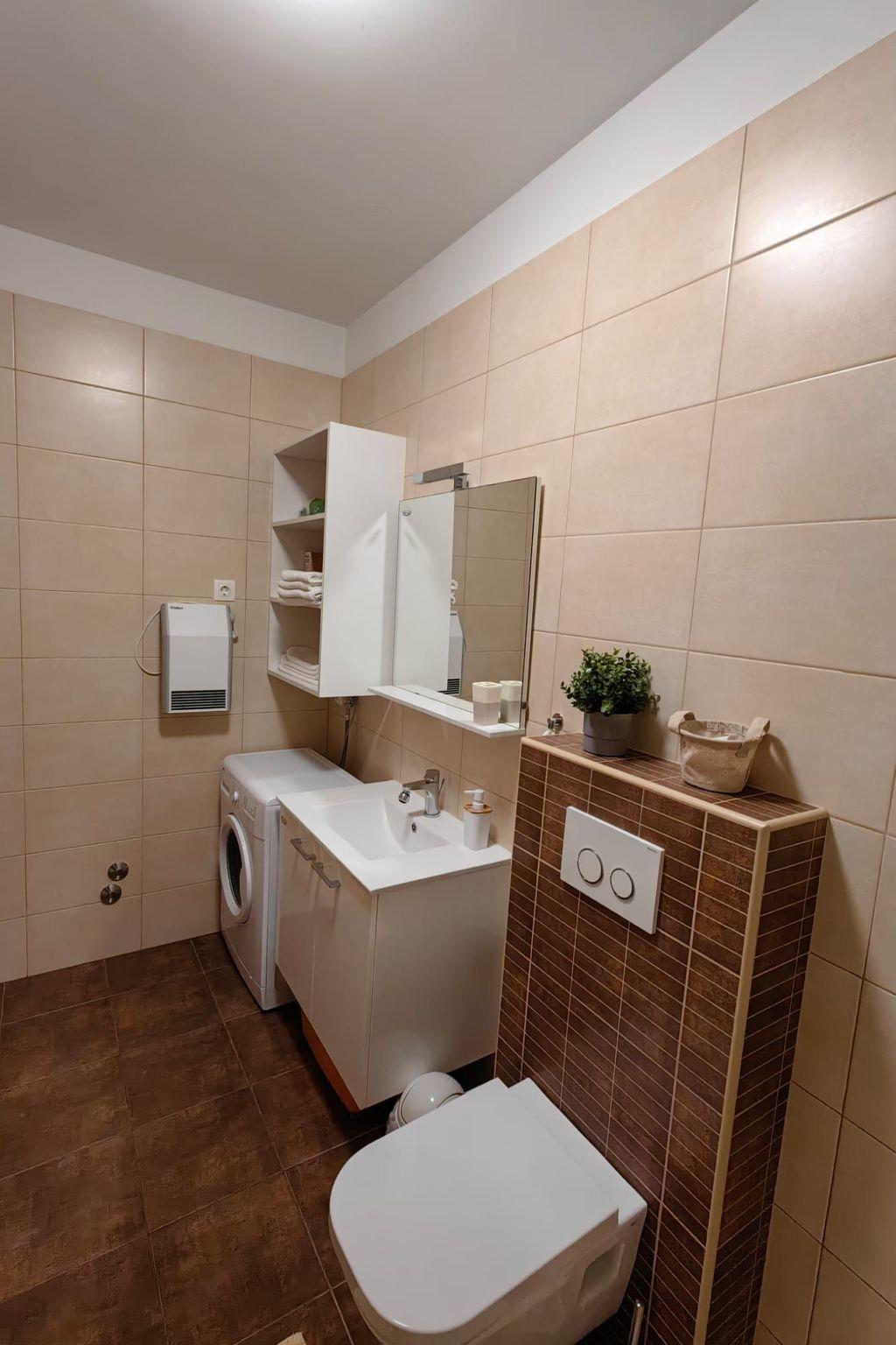 There is only one apartment for rent, on the ground floor, (50m2) for up to 4 persons. Because of that you will be the only guests and enjoy like you're in your own home. The apartment has one bedroom with a double bed. In the living room is a sofa bed for two persons (150 cm wide). Both rooms have air conditioner. There is a big shower in the bathroom, washing machine and hairdryer. Kitchen is fully equipped with dishes, cutlery, oven, cooking stove, kettle, and big refrigerator with freezer.