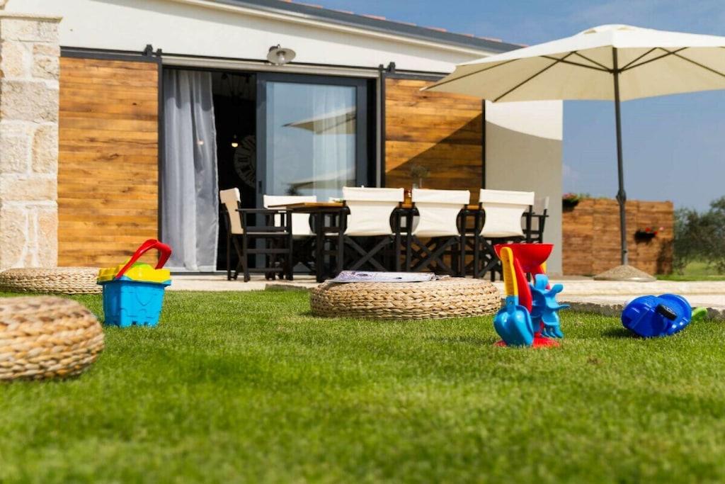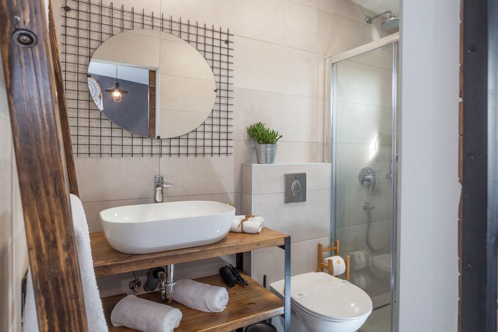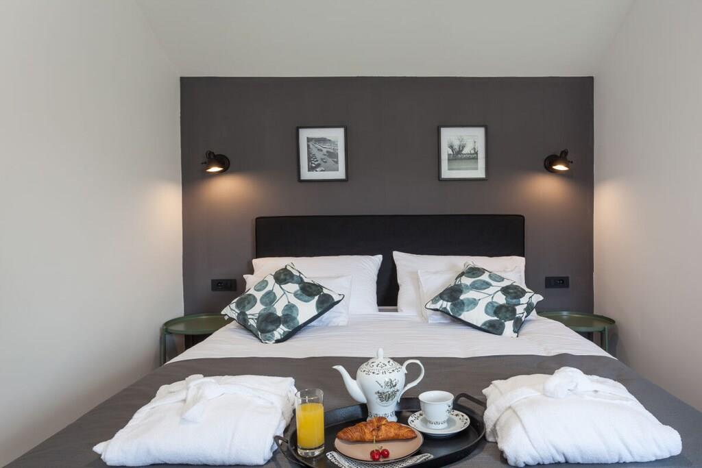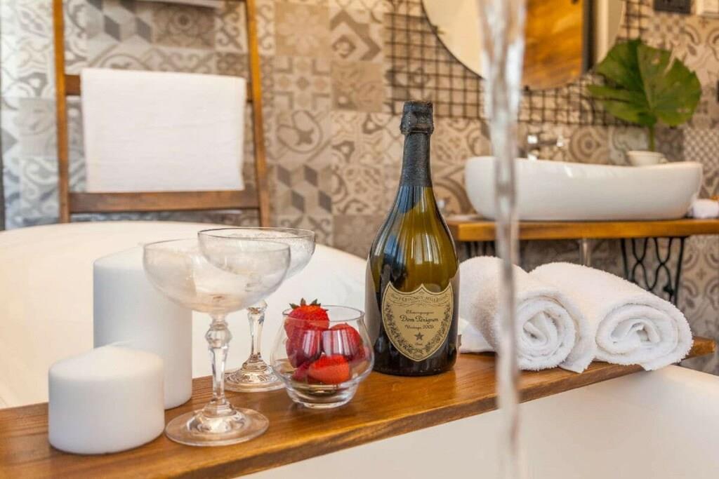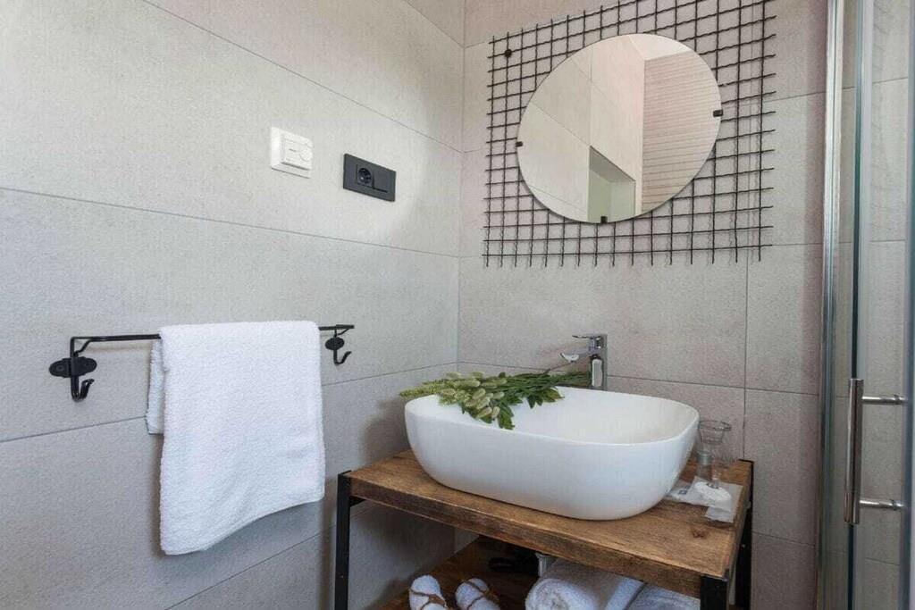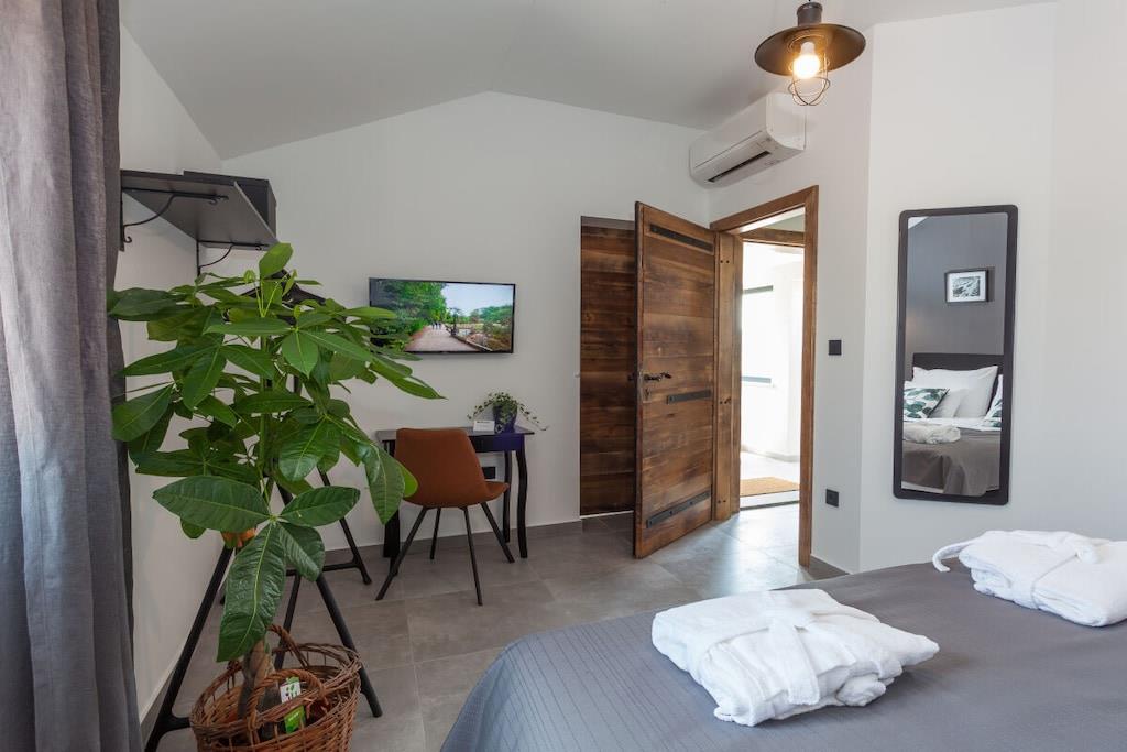 Jedes der vier Schlafzimmer, wobei drei Schlafzimmer mit einem Doppelbett und eines mit zwei organisierbaren Einzelbetten ausgestattet sind, verfügt über ein eigenes Badezimmer, Klimaanlage und Fernseher. Außerdem steht noch eine Gästetoilette zur Verfügung, besonders praktisch während des Sonnenbads. Die Küche ist modern und komplett ausgestattet, ein Innenkamin steht ebenfalls zur Verfügung.