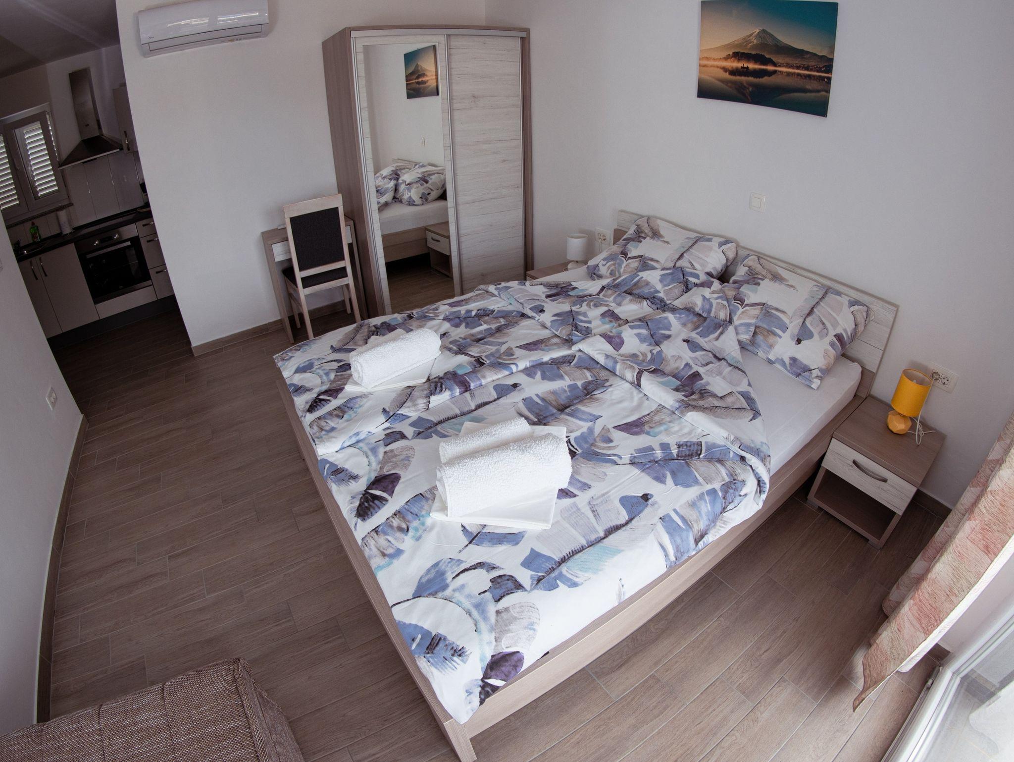 Studio bietet Platz für 3 Gäste. Die Betten sind in Schlafzimmern, die es 1 gibt, innerhalb einer Gesamtfläche von 26m2, angeordnet. Die Gäste haben einen eigenen Balkon zur Verfügung, auf der sie in warmen Sommernächten genießen können. Während ihres Aufenthalts können Gäste das gemeinsam zur Nutzung stehende Schwimmbad benutzen. IM PREIS INBEGRIFFEN: Kurtaxe, Endreinigung, Klimatisierung, Pool, Parkplatz, Internet. Die Verfügbarkeit zusätzlicher Dienstleistungen in Ihrem reservierten Termin und die Preise derselben (falls nicht aufgeführt) müssen im Voraus überprüft werden. Zusätzliche Dienstleistungen die in der Zahlungsaufforderung nicht aufgeführt sind werden direkt beim Vermieter bezahlt, angenommen der Gast nutzt auch diese. Ermäßigung auf den Grundpreis: Gratistag 14=13 (bei einem Aufenthalt von 14 Tagen oder mehr erhalten Sie einen Gratistag für den Aufenthalt bis 31.12.26).