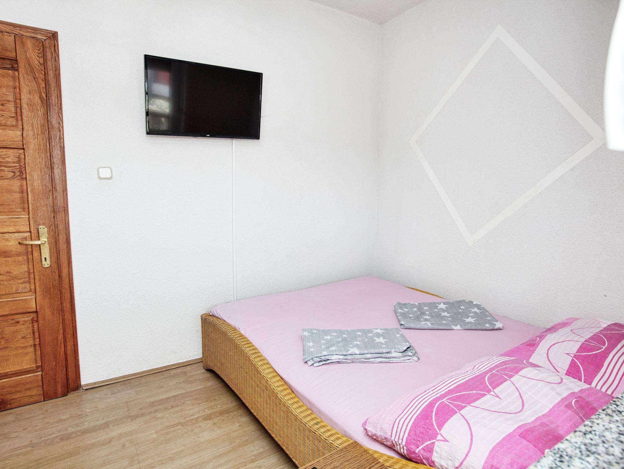 Zimmer bietet Platz für 4 Gäste. Die Betten sind in Schlafzimmern, die es 1 gibt, innerhalb einer Gesamtfläche von 18m2, angeordnet. Es ist erlaubt, Speisen auf dem Gemeinschafts-Grill vorzubereiten. In der Unterkunftseinheit besteht die Möglichkeit des Mitbringens von Haustieren gegen Aufpreis. Die reservierte Unterkunftseinheit ist ein Zimmer mit eigenem Badezimmer ohne die Möglichkeit der Nutzung einer Küche. Die reservierte Unterkunftseinheit verfügt über einen gemeinsamen Balkon. Unterkunftseinheit hat Räume, die von dem Rest der Einheit abgetrennt werden. IM PREIS INBEGRIFFEN: Kurtaxe, Endreinigung, Klimatisierung, Parkplatz, Internet. VERBINDLICHE ZUSÄTZLICHE KOSTEN: Aufzahlung für Kurzaufenthalte (prozentualer Zuschlag pro Nächtigungsanzahl: 30% - 1, 20% - 2, 10% - 3). UNVERBINDLICHE ZUSÄTZLICHE KOSTEN: Halbpension (15,00 €, 50% Nachlass für Kinder zwischen 4 und 12 Jahren, Kinder bis 4 Jahre sind frei.), Wäschewaschen (5,00 € Waschen), Haustiere (10,00 € pro Nacht), Fahrrad (10,00 € täglich (pro Stück)). Die Verfügbarkeit zusätzlicher Dienstleistungen in Ihrem reservierten Termin und die Preise derselben (falls nicht aufgeführt) müssen im Voraus überprüft werden. Zusätzliche Dienstleistungen die in der Zahlungsaufforderung nicht aufgeführt sind werden direkt beim Vermieter bezahlt, angenommen der Gast nutzt auch diese. Ermäßigung auf den Grundpreis: Gratistag 14=13 (bei einem Aufenthalt von 14 Tagen oder mehr erhalten Sie einen Gratistag für den Aufenthalt bis 31.12.26).
