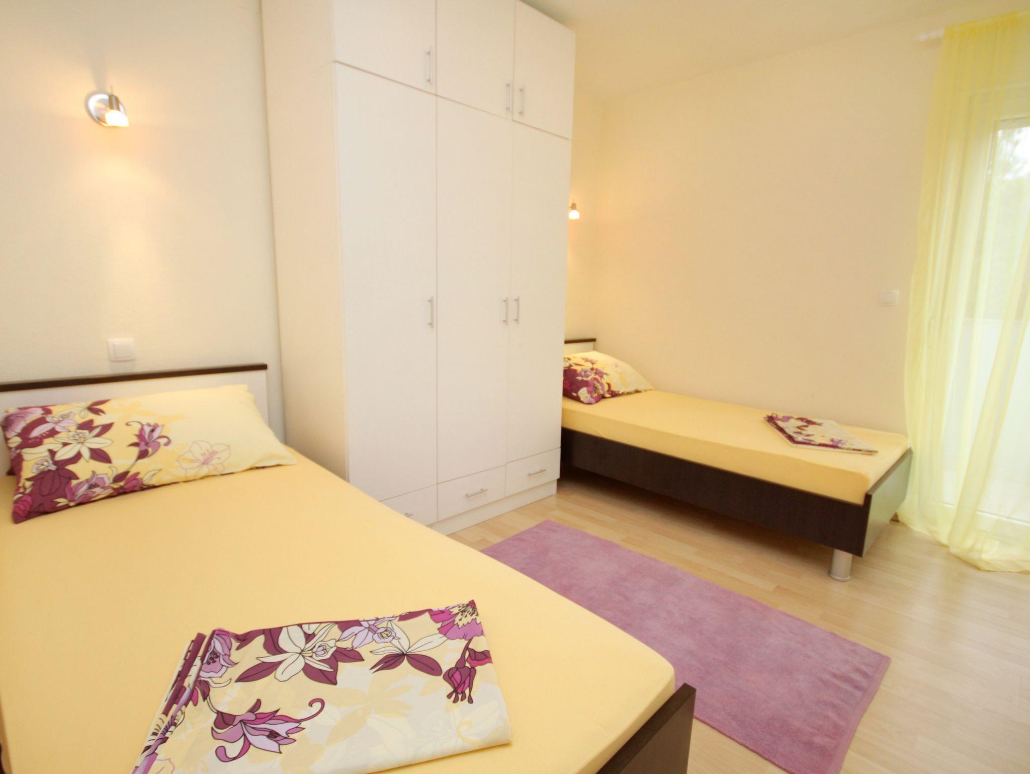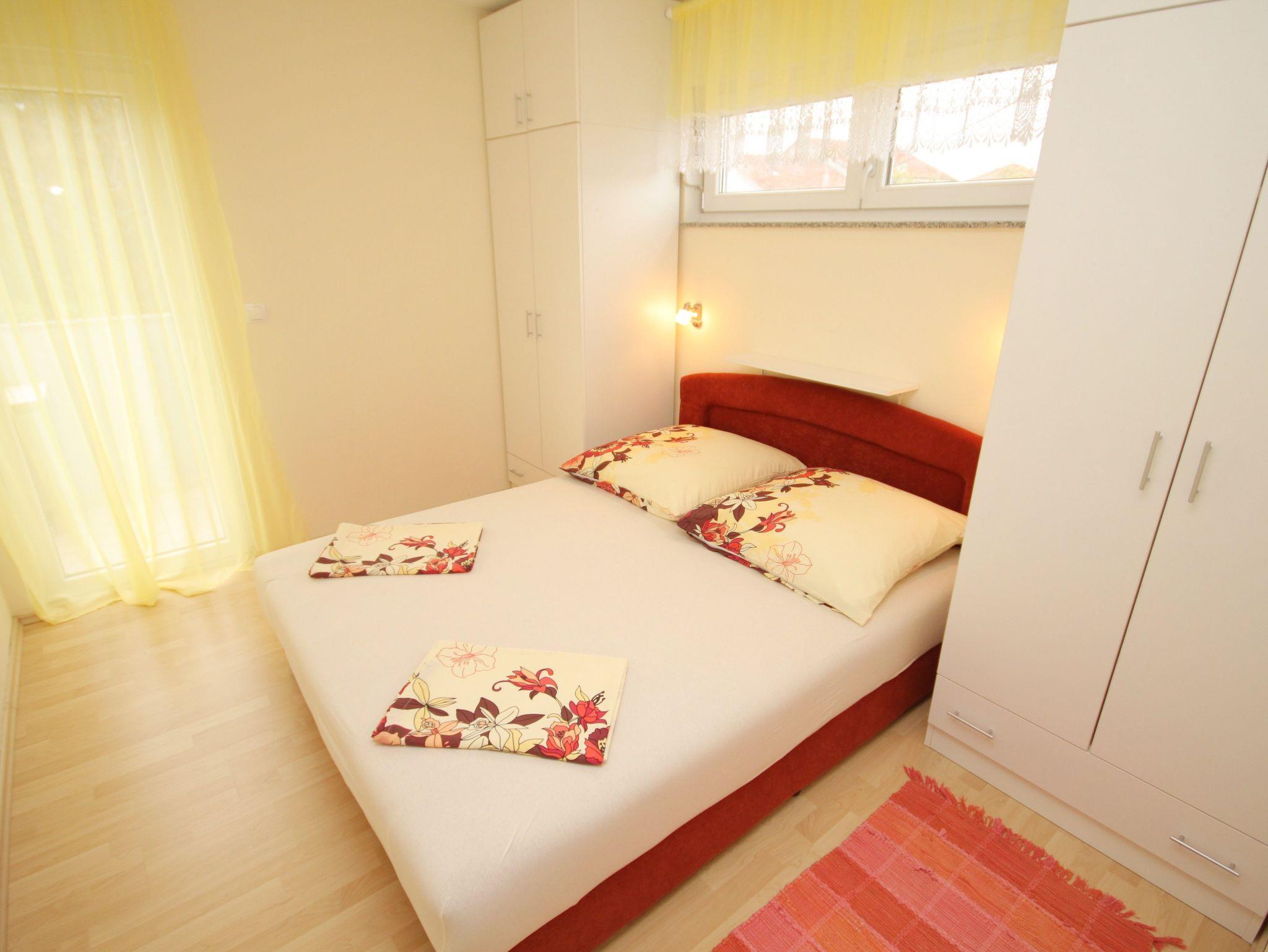 Ferienwohnung bietet Platz für 4 Gäste. Die Betten sind in Schlafzimmern, die es 2 gibt, innerhalb einer Gesamtfläche von 64m2, angeordnet. Die Gäste haben einen eigenen Balkon zur Verfügung, auf der sie in warmen Sommernächten genießen können. Das Apartment bietet Meerblick. Es ist erlaubt, Speisen auf dem Gemeinschafts-Grill vorzubereiten. IM PREIS INBEGRIFFEN: Kurtaxe, Endreinigung, Klimatisierung, Parkplatz, Internet, Wäschewaschen, Kinderbett, Bügeleisen, Bügelbrett, Föhn. VERBINDLICHE ZUSÄTZLICHE KOSTEN: Aufzahlung für Kurzaufenthalte (prozentualer Zuschlag pro Nächtigungsanzahl: 30% - 1, 20% - 2, 10% - 3). Die Verfügbarkeit zusätzlicher Dienstleistungen in Ihrem reservierten Termin und die Preise derselben (falls nicht aufgeführt) müssen im Voraus überprüft werden. Zusätzliche Dienstleistungen die in der Zahlungsaufforderung nicht aufgeführt sind werden direkt beim Vermieter bezahlt, angenommen der Gast nutzt auch diese. Ermäßigung auf den Grundpreis: Gratistag 14=13 (bei einem Aufenthalt von 14 Tagen oder mehr erhalten Sie einen Gratistag für den Aufenthalt bis 31.12.26).