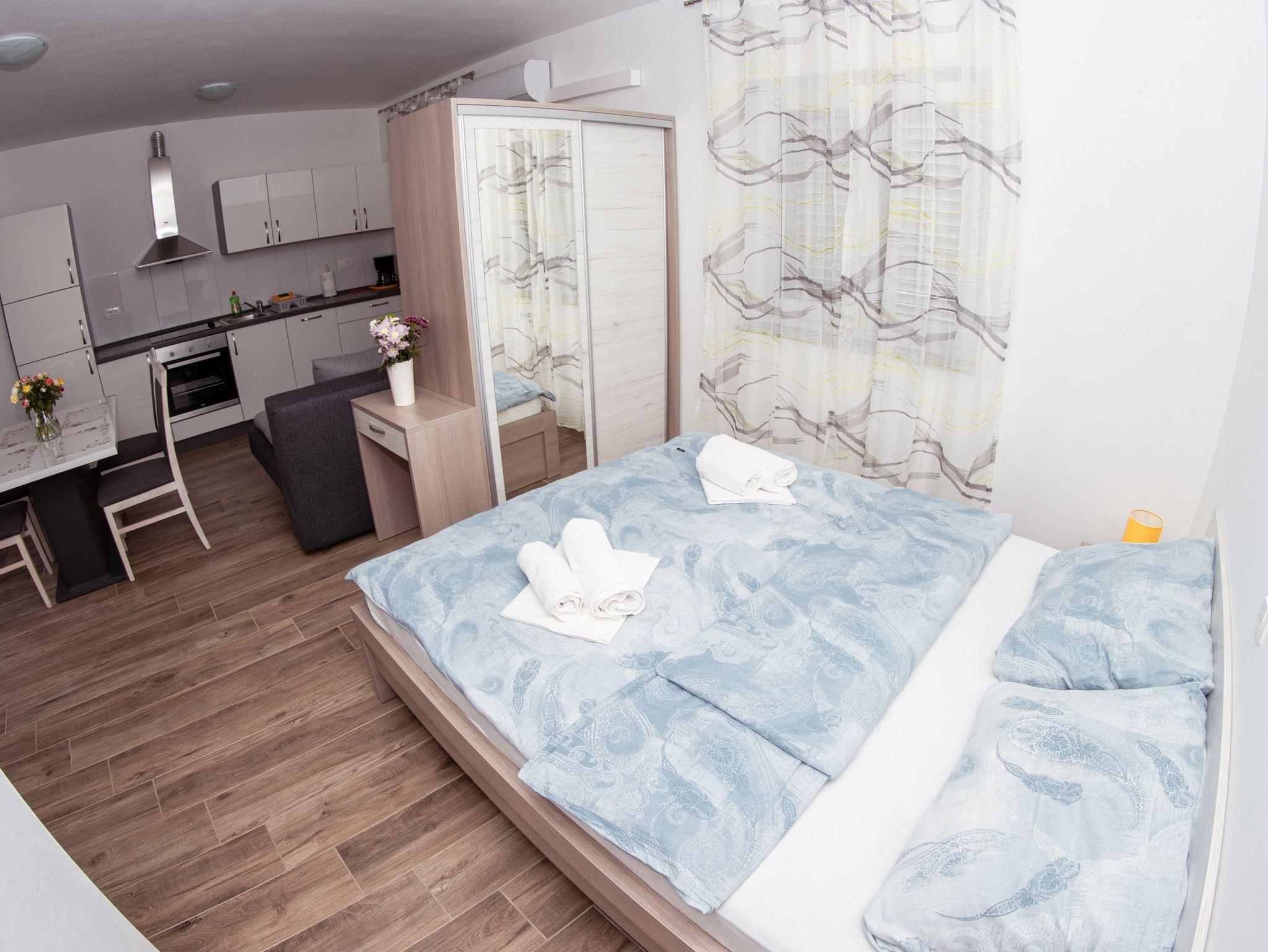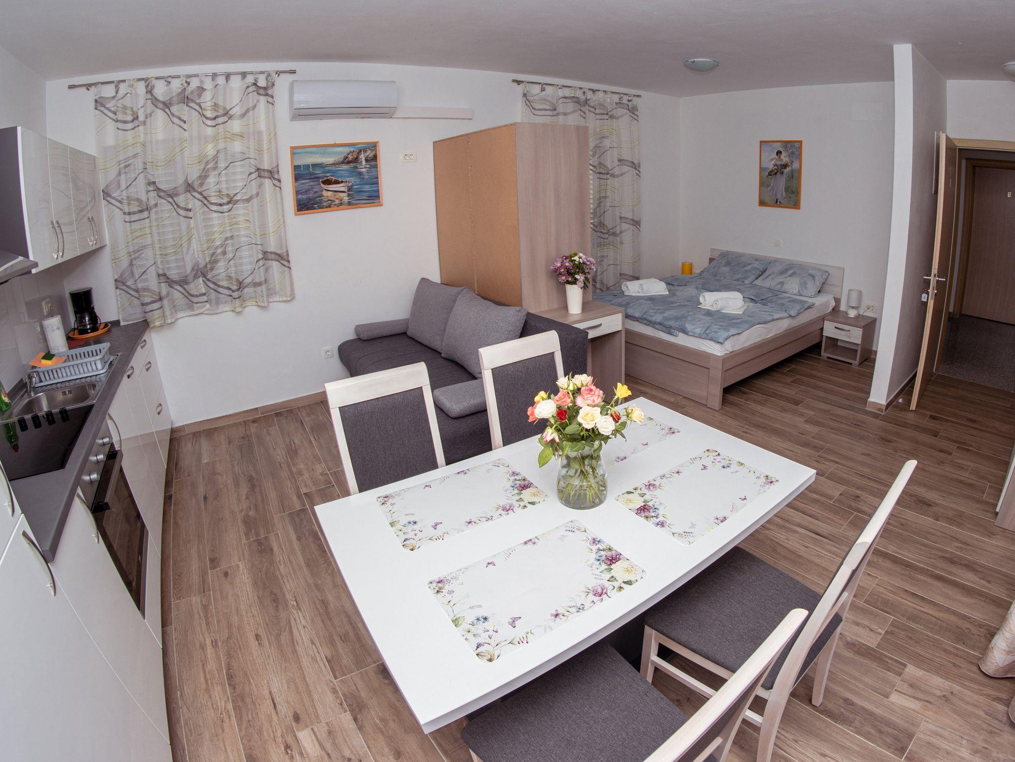 Studio bietet Platz für 4 Gäste. Die Betten sind in Schlafzimmern, die es 1 gibt, und in Wohnzimmer, innerhalb einer Gesamtfläche von 28m2, angeordnet. Die Gäste haben einen eigenen Balkon zur Verfügung, auf der sie in warmen Sommernächten genießen können. Während ihres Aufenthalts können Gäste das gemeinsam zur Nutzung stehende Schwimmbad benutzen. IM PREIS INBEGRIFFEN: Kurtaxe, Endreinigung, Klimatisierung, Pool, Parkplatz, Internet. Die Verfügbarkeit zusätzlicher Dienstleistungen in Ihrem reservierten Termin und die Preise derselben (falls nicht aufgeführt) müssen im Voraus überprüft werden. Zusätzliche Dienstleistungen die in der Zahlungsaufforderung nicht aufgeführt sind werden direkt beim Vermieter bezahlt, angenommen der Gast nutzt auch diese. Ermäßigung auf den Grundpreis: Gratistag 14=13 (bei einem Aufenthalt von 14 Tagen oder mehr erhalten Sie einen Gratistag für den Aufenthalt bis 31.12.26).