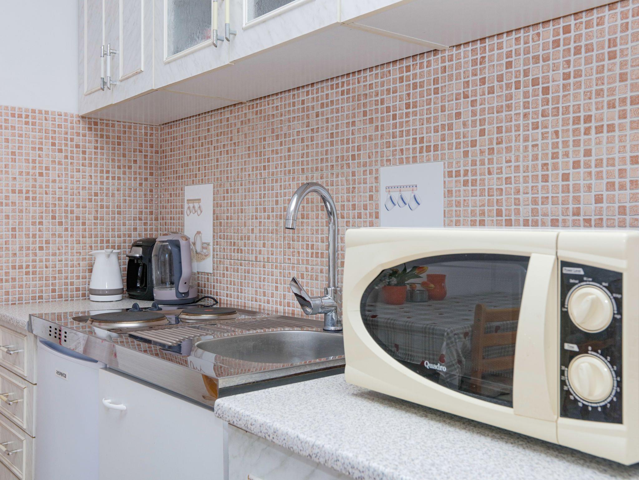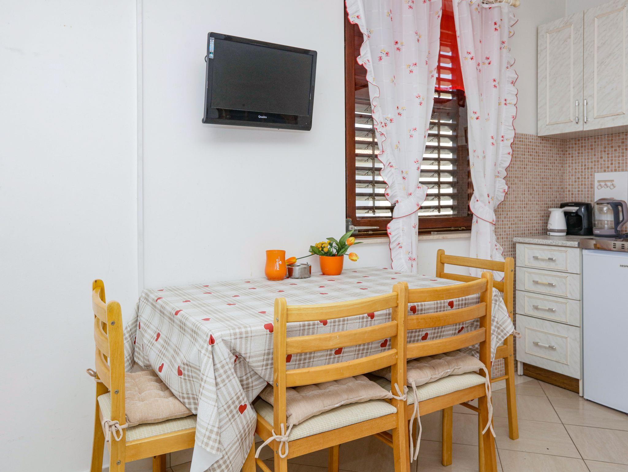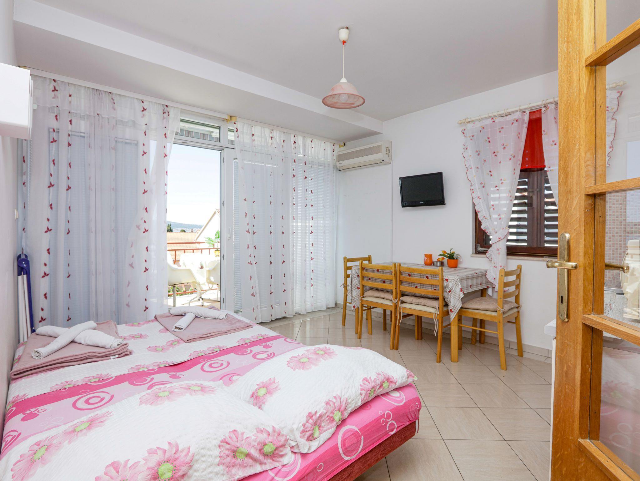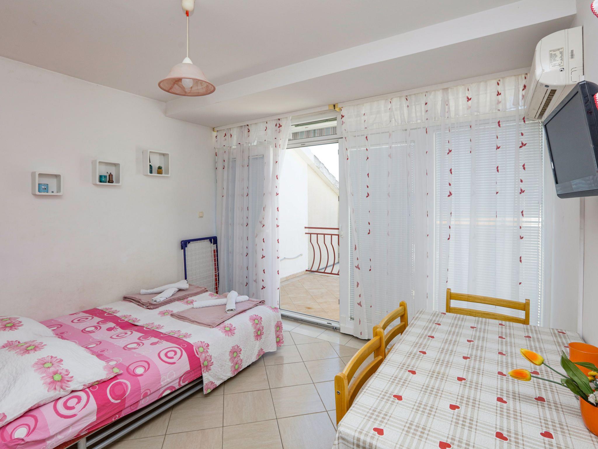 Ferienwohnung bietet Platz für 4 Gäste. Die Betten sind in Schlafzimmern, die es 1 gibt, und in Wohnzimmer, innerhalb einer Gesamtfläche von 35m2, angeordnet. Die Gäste haben eine eigene Terrasse zur Verfügung, auf der sie in warmen Sommernächten genießen können. Das Apartment bietet Meerblick. Es ist erlaubt, Speisen auf dem Gemeinschafts-Grill vorzubereiten. IM PREIS INBEGRIFFEN: Kurtaxe, Endreinigung, Klimatisierung, Parkplatz, Internet, Kinderbett, Bügeleisen, Bügelbrett, Föhn. VERBINDLICHE ZUSÄTZLICHE KOSTEN: Aufzahlung für Kurzaufenthalte (prozentualer Zuschlag pro Nächtigungsanzahl: 30% - 1, 20% - 2, 10% - 3). UNVERBINDLICHE ZUSÄTZLICHE KOSTEN: Zusatzbett (5,00 € pro Nacht). Die Verfügbarkeit zusätzlicher Dienstleistungen in Ihrem reservierten Termin und die Preise derselben (falls nicht aufgeführt) müssen im Voraus überprüft werden. Zusätzliche Dienstleistungen die in der Zahlungsaufforderung nicht aufgeführt sind werden direkt beim Vermieter bezahlt, angenommen der Gast nutzt auch diese.