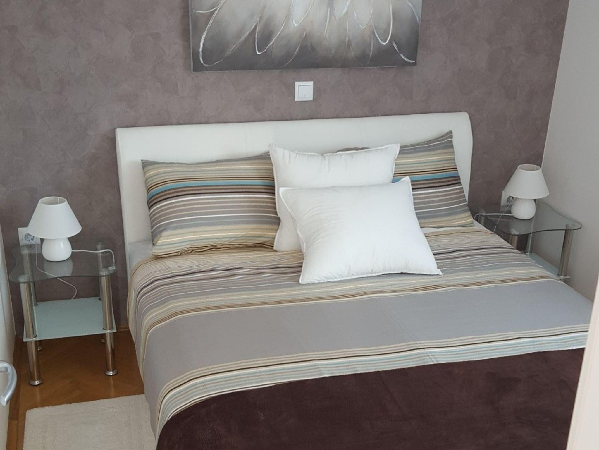 Ferienwohnung bietet Platz für 4 Gäste. Die Betten sind in Schlafzimmern, die es 1 gibt, und in Wohnzimmer, innerhalb einer Gesamtfläche von 52m2, angeordnet. Die Gäste haben einen eigenen Balkon zur Verfügung, auf der sie in warmen Sommernächten genießen können. Das Apartment bietet Meerblick. Es ist erlaubt, Speisen auf dem Gemeinschafts-Grill vorzubereiten. In der gebuchten Unterkunftseinheit zahlt man am Ort ein Depositum ( der Preis ist an der Internetseite angeführt ). IM PREIS INBEGRIFFEN: Kurtaxe, Endreinigung, Klimatisierung, Zentralheizung, Parkplatz, Internet, Bügeleisen, Bügelbrett, Föhn, tragbarer Grill. VERBINDLICHE ZUSÄTZLICHE KOSTEN: Kaution (200,00 € Einmalzahlung). Die Verfügbarkeit zusätzlicher Dienstleistungen in Ihrem reservierten Termin und die Preise derselben (falls nicht aufgeführt) müssen im Voraus überprüft werden. Zusätzliche Dienstleistungen die in der Zahlungsaufforderung nicht aufgeführt sind werden direkt beim Vermieter bezahlt, angenommen der Gast nutzt auch diese. Ermäßigung auf den Grundpreis: Gratistag 14=13 (bei einem Aufenthalt von 14 Tagen oder mehr erhalten Sie einen Gratistag für den Aufenthalt bis 31.12.26).