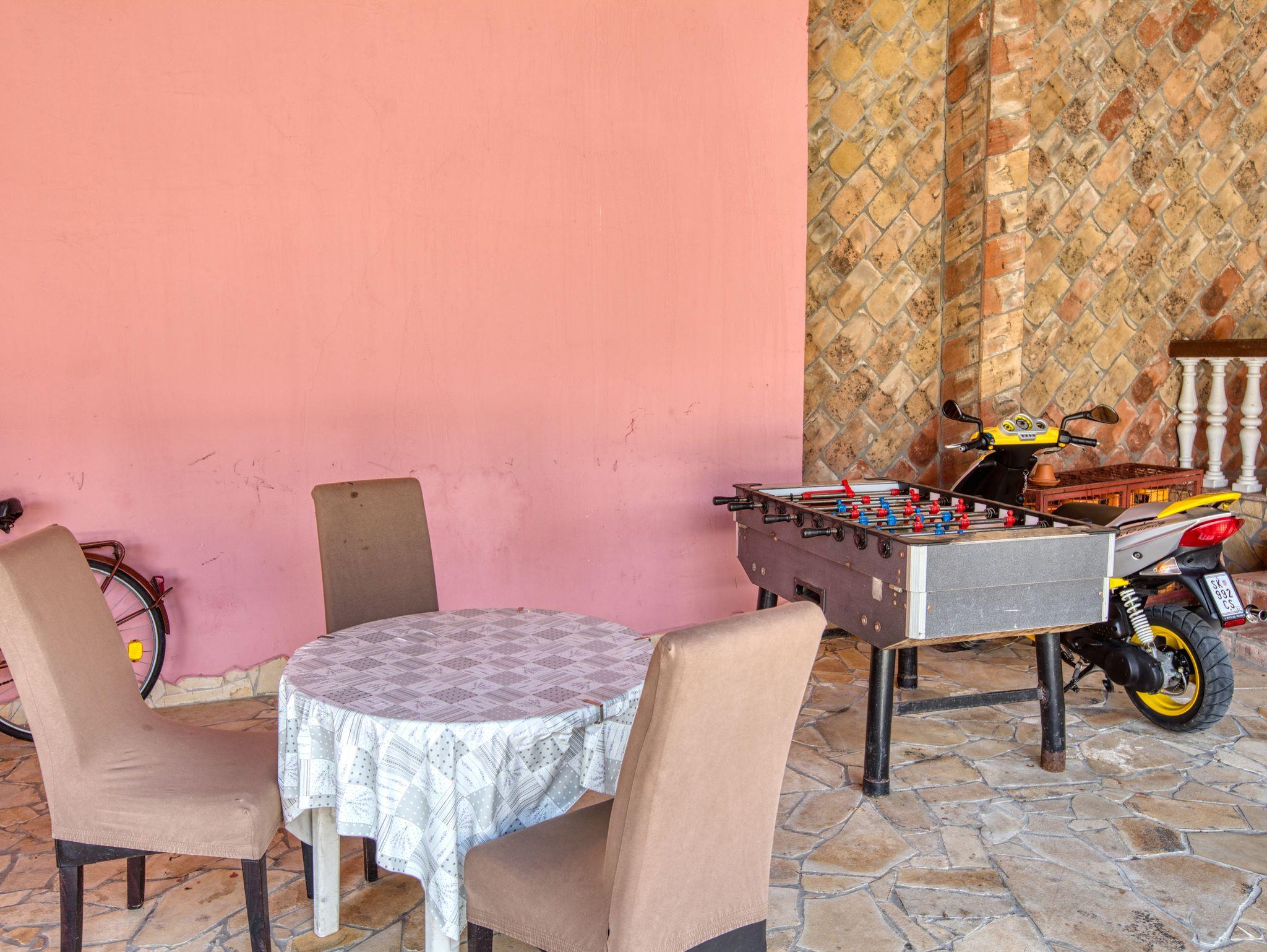 Hof (300m2, Sitzbereich), Parkplatz (Anzahl der Parkplätze: 10, Entfernung vom Objekt: im Hof), Grill: gemeinsam, Halbpension, WiFi Internet, Wäschewaschen, Fahrrad (Anzahl: 10)