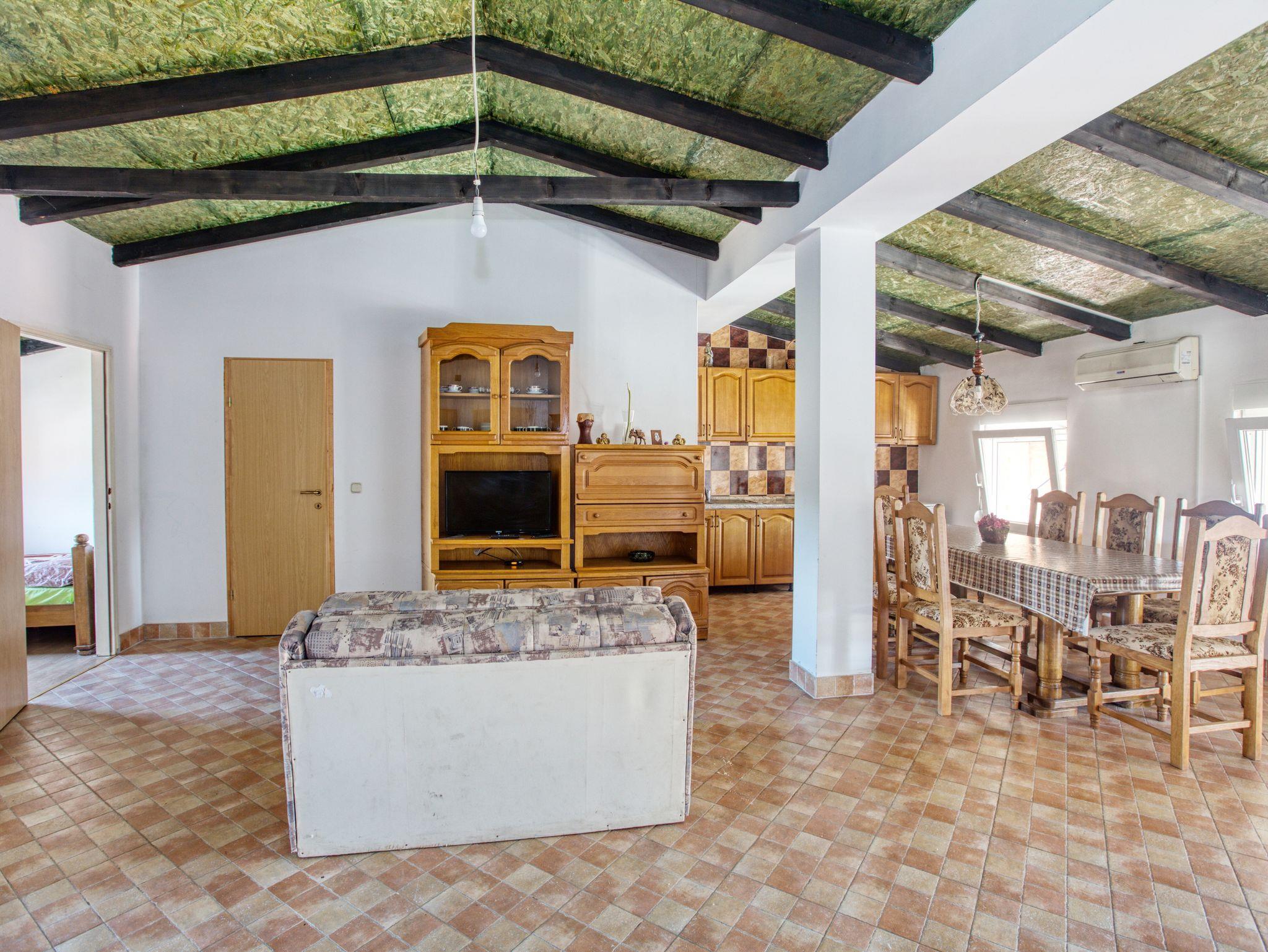 Ferienwohnung bietet Platz für 8 Gäste. Die Betten sind in Schlafzimmern, die es 3 gibt, und in Wohnzimmer, innerhalb einer Gesamtfläche von 65m2, angeordnet. Die Gäste haben einen eigenen Balkon zur Verfügung, auf der sie in warmen Sommernächten genießen können. Es ist erlaubt, Speisen auf dem Gemeinschafts-Grill vorzubereiten. In der Unterkunftseinheit besteht die Möglichkeit des Mitbringens von Haustieren gegen Aufpreis. IM PREIS INBEGRIFFEN: Kurtaxe, Endreinigung, Klimatisierung, Parkplatz, Internet. VERBINDLICHE ZUSÄTZLICHE KOSTEN: Aufzahlung für Kurzaufenthalte (prozentualer Zuschlag pro Nächtigungsanzahl: 30% - 1, 20% - 2, 10% - 3). UNVERBINDLICHE ZUSÄTZLICHE KOSTEN: Halbpension (15,00 €, 50% Nachlass für Kinder zwischen 4 und 12 Jahren, Kinder bis 4 Jahre sind frei.), Wäschewaschen (5,00 € Waschen), Haustiere (10,00 € pro Nacht), Fahrrad (10,00 € täglich (pro Stück)). Die Verfügbarkeit zusätzlicher Dienstleistungen in Ihrem reservierten Termin und die Preise derselben (falls nicht aufgeführt) müssen im Voraus überprüft werden. Zusätzliche Dienstleistungen die in der Zahlungsaufforderung nicht aufgeführt sind werden direkt beim Vermieter bezahlt, angenommen der Gast nutzt auch diese. Ermäßigung auf den Grundpreis: Gratistag 14=13 (bei einem Aufenthalt von 14 Tagen oder mehr erhalten Sie einen Gratistag für den Aufenthalt bis 31.12.26).