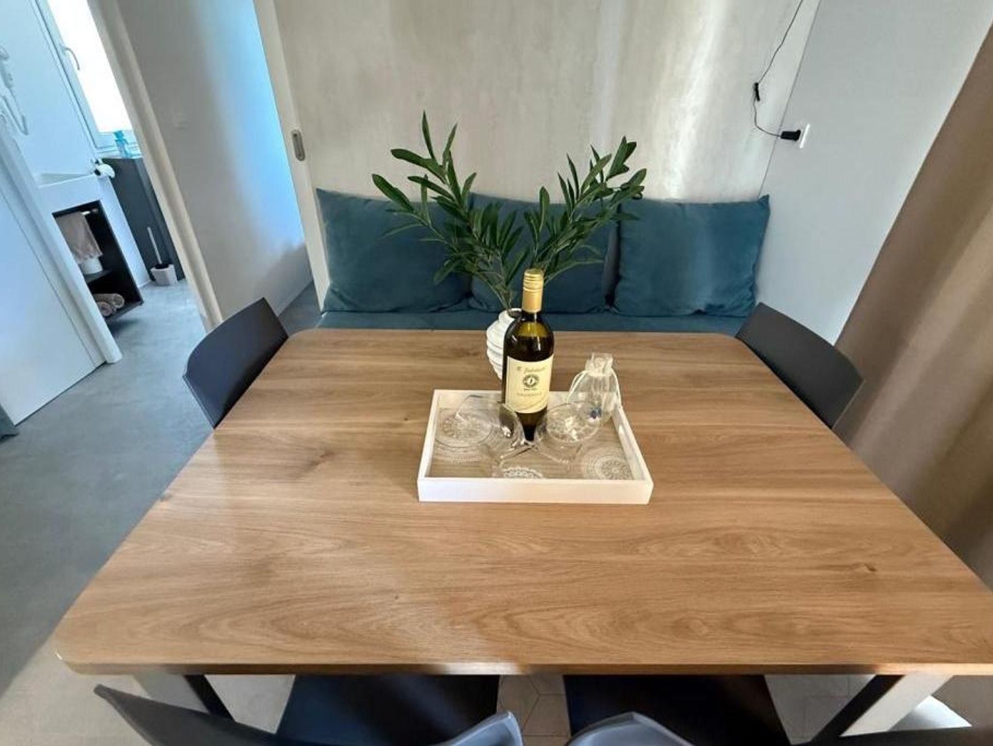 Ferienwohnung bietet Platz für 6 Gäste. Die Betten sind in Schlafzimmern, die es 2 gibt, und in Wohnzimmer, innerhalb einer Gesamtfläche von 34m2, angeordnet. Die Gäste haben eine eigene Terrasse zur Verfügung, auf der sie in warmen Sommernächten genießen können. Das Apartment bietet Meerblick. Für vollen Genuss und Entspannung gibt es einen privaten Grill für Gäste dieser Unterkunft. IM PREIS INBEGRIFFEN: Kurtaxe, Endreinigung, Klimatisierung, Parkplatz, Internet, Fahrrad, Bügeleisen, Bügelbrett, Föhn, Liegestühle. Die Verfügbarkeit zusätzlicher Dienstleistungen in Ihrem reservierten Termin und die Preise derselben (falls nicht aufgeführt) müssen im Voraus überprüft werden. Zusätzliche Dienstleistungen die in der Zahlungsaufforderung nicht aufgeführt sind werden direkt beim Vermieter bezahlt, angenommen der Gast nutzt auch diese. Ermäßigung auf den Grundpreis: Gratistag 14=13 (bei einem Aufenthalt von 14 Tagen oder mehr erhalten Sie einen Gratistag für den Aufenthalt bis 31.12.26).