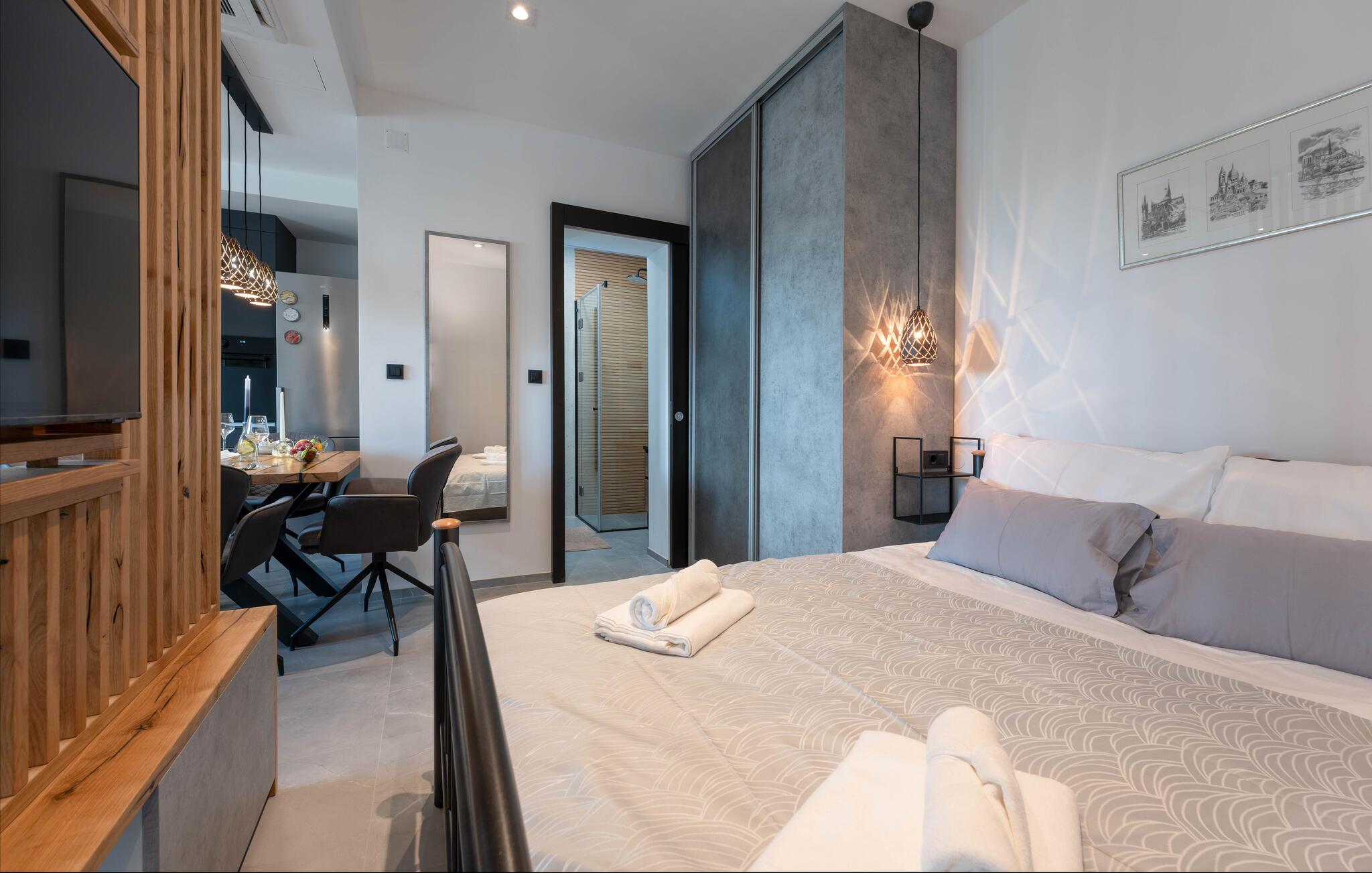 Gå en tur til stranden og tag en forfriskende dukkert i havet. For friluftsmennesker giver jer den nærliggende Vrana-sø et paradis for fuglekiggeri og vandreture. Kornati Nationalpark, kun en kort bådtur væk, lokker også med betagende øer og en uberørt undervandsverden - ideel til en uforglemmelig dagstur.