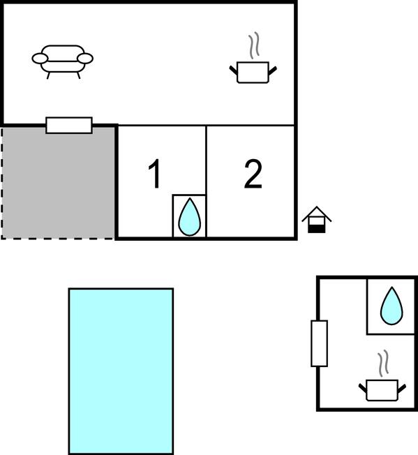 Opholdsstue/køkken 23m2 - 2 Sovepladser. (Sofa, madras eller lignende).