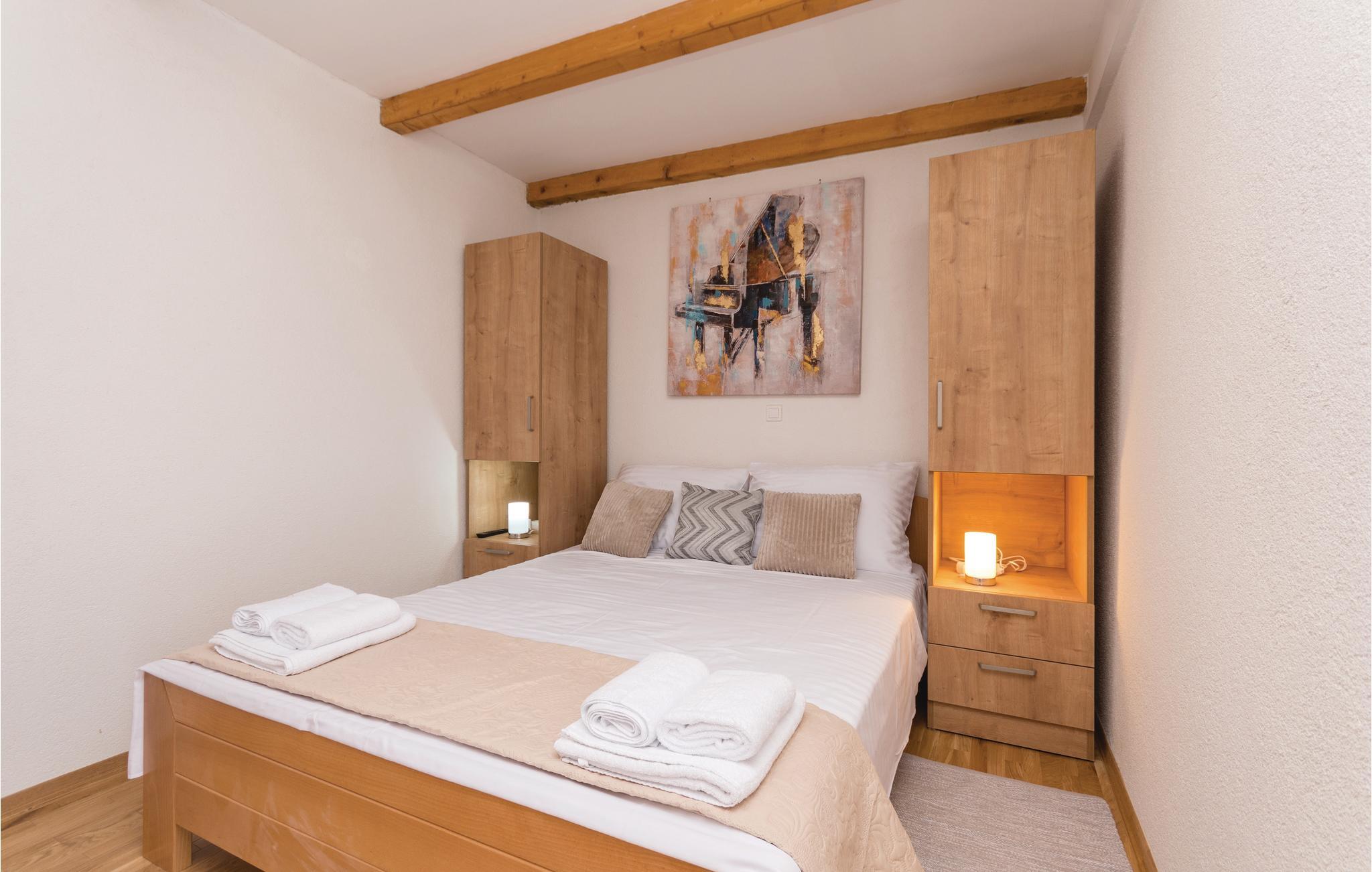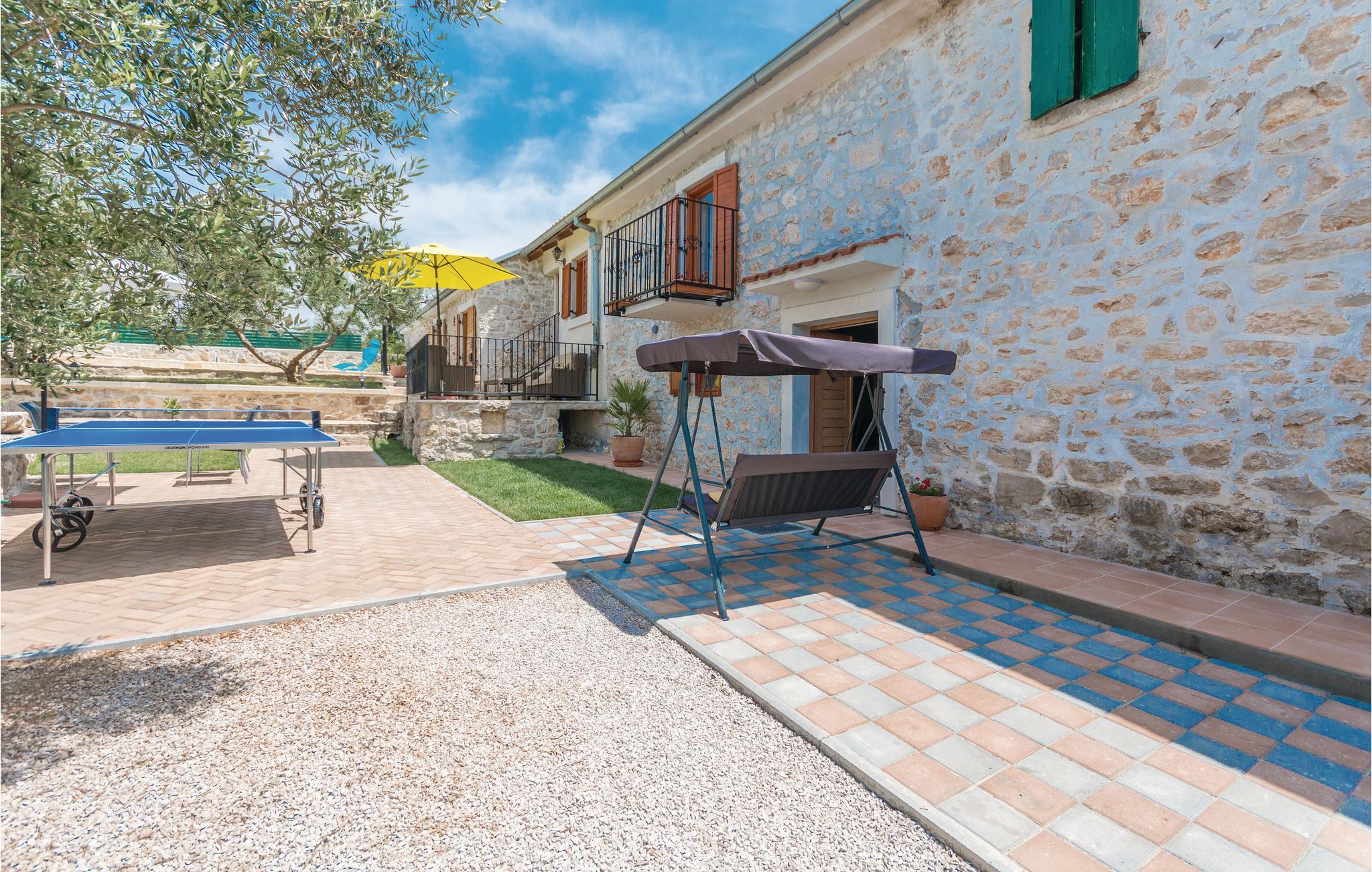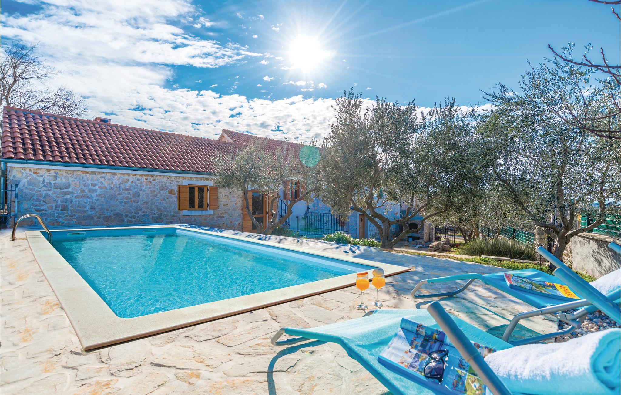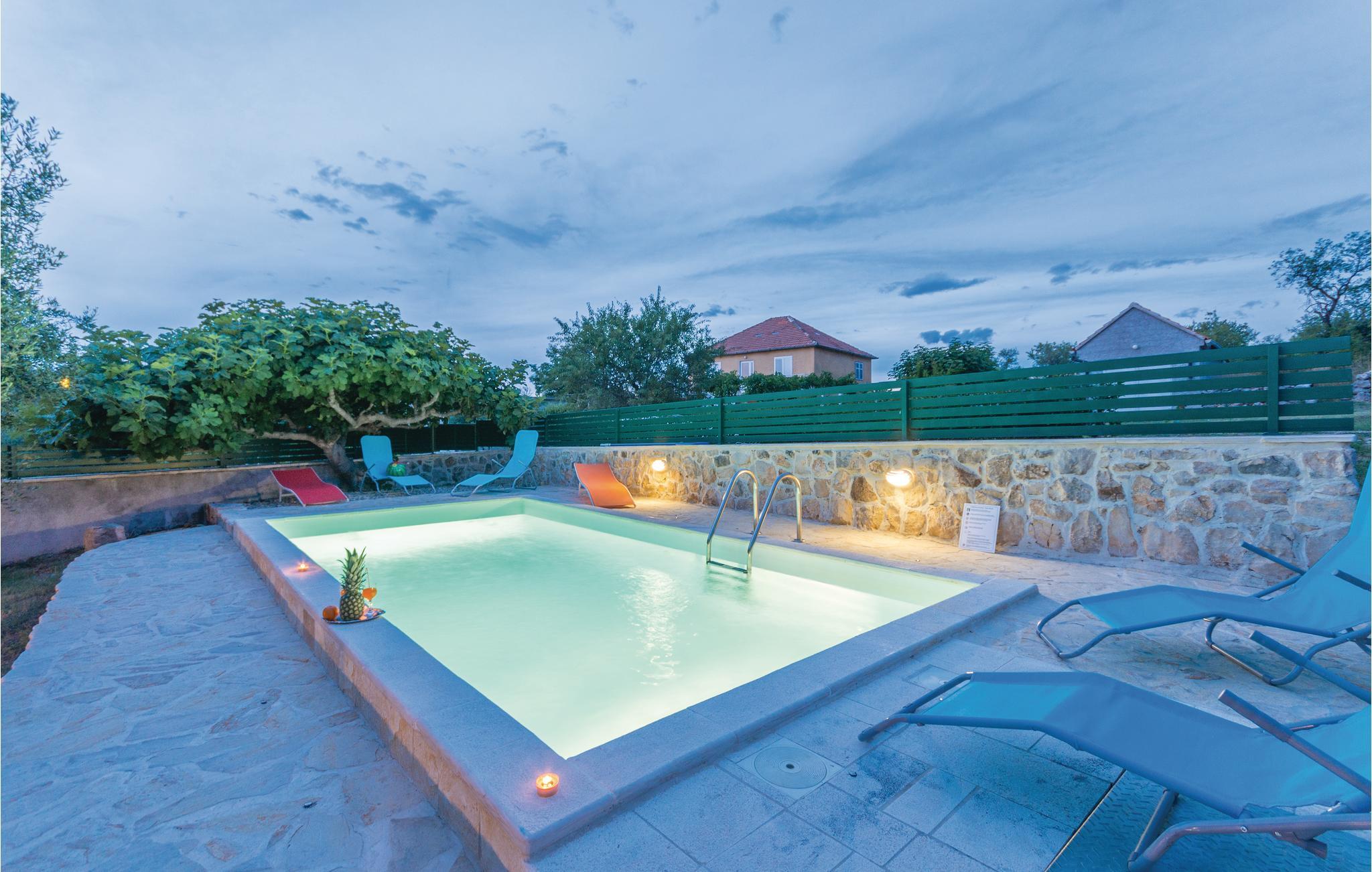 Dette skønne feriehus med pool og udsigt over den frodige have, indbyder til afslappet ferie. Stuen er smagfuldt indrettet og i haven kan I tilbringe dejlige timer i fællesskab på de lange afslappede feriedage og lave maden sammen, på grillen, høre musik og nyde et godt glas af den lokale vin. I nærheden af søen Vransko med sit fuglebeskyttelsesområde og fremragende cykelstier, samt udsigtspunktet Kamenjak, hvor I kan nyde synet af hele Kornati-øhavet. Byen Biograd ligger også lige i nærheden, ved siden af de to store byer Zadar und Šibenik, begge rige på kultur og historiske seværdigheder. Et soveværelse er et gennemgangsværelse og har en udtrækssovesofa.