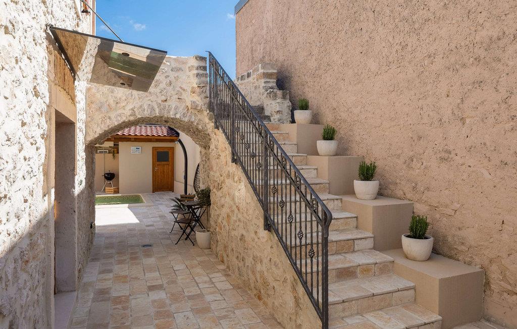 Den smukke Villa Kameni Dvori kombinerer rustik charme med moderne luksus og byder jer velkommen til den maleriske kystby Sveti Filip i Jakov, ikke langt fra Zadars centrum. Skab kulinariske lækkerier i det åbne køkken, nyd harmoniske måltider i den komfortable opholdsstue, og hav det sjovt med at spille PlayStation eller mindes svundne tider i den hyggelige stue.