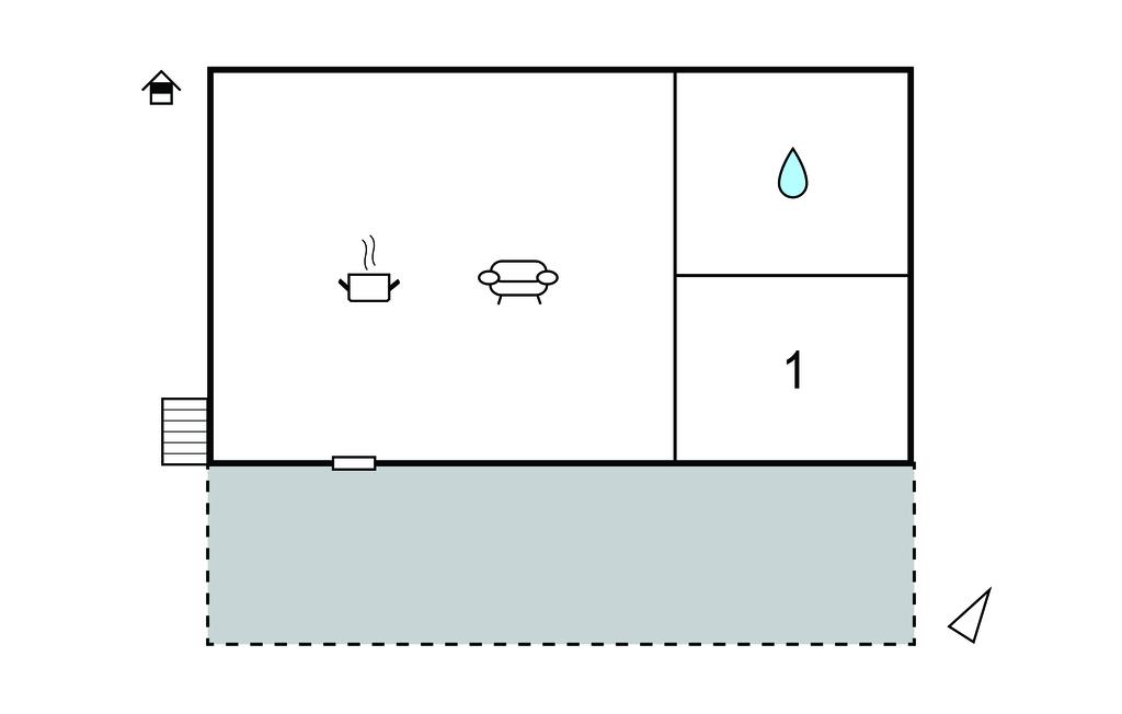 Komb. spisestue/køkken 25m2 - 2 Sovepladser. (Sofa, madras eller lignende).