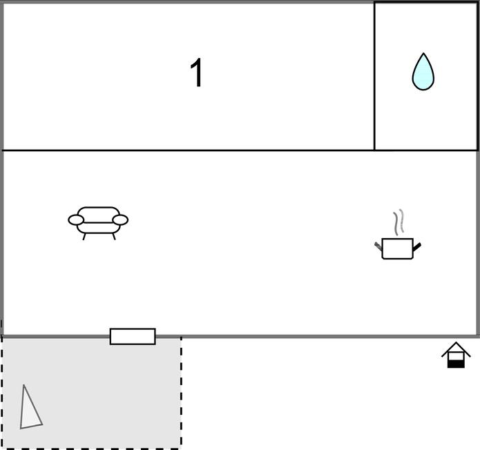 Opholdsstue/køkken 20m2 - 2 Sovepladser. (Sofa, madras eller lignende).