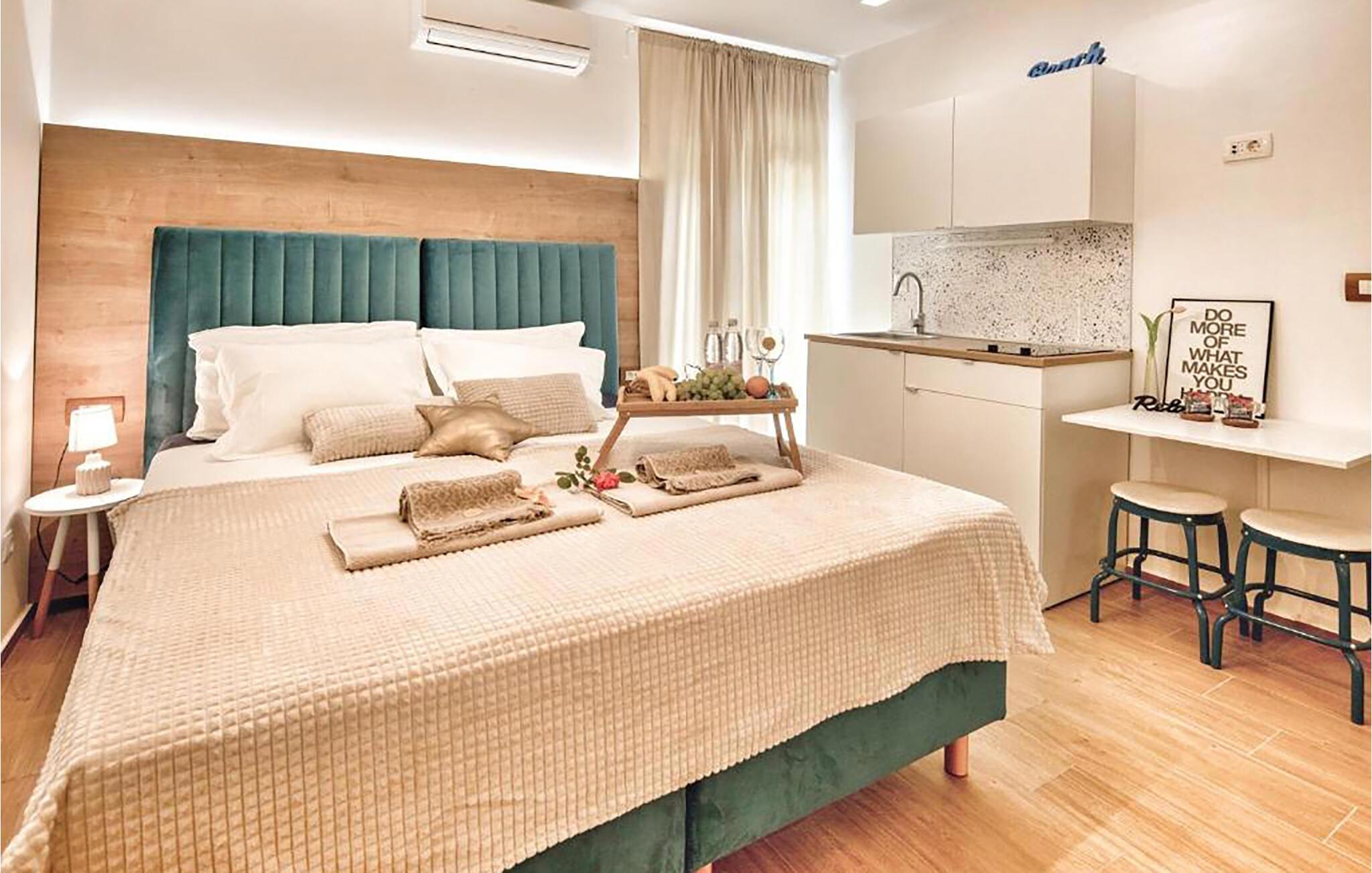 Nyd en solrig ferie for to i denne charmerende ferielejlighed. Kun en kort gåtur fra stranden kan I slappe af i denne smagfuldt møblerede lejlighed. Forkæl hinanden med jeres yndlingsretter, saml jer omkring det indbydende spisebord, og stream en spændende serie efter en lang dag. Server jeres morgenmad på terrassen, og slentr derefter til stranden for en forfriskende dukkert i det krystalklare vand. På vej tilbage kan I finde en hyggelig restaurant og snakke over et glas vin i den lune sommerluft om aftenen. Gå en tur gennem Biograds historiske gamle gader, og tag en bådtur til øerne Pašman og Kornati. Cykl langs kysten eller gennem naturparadiset Vrana-søen, observer sjældne fuglearter, og slap af med en picnic i uspoleret natur. Prøv regionale specialiteter på autentiske restauranter, besøg lokale markeder, og deltag i en vinsmagning på de omkringliggende vinmarker.