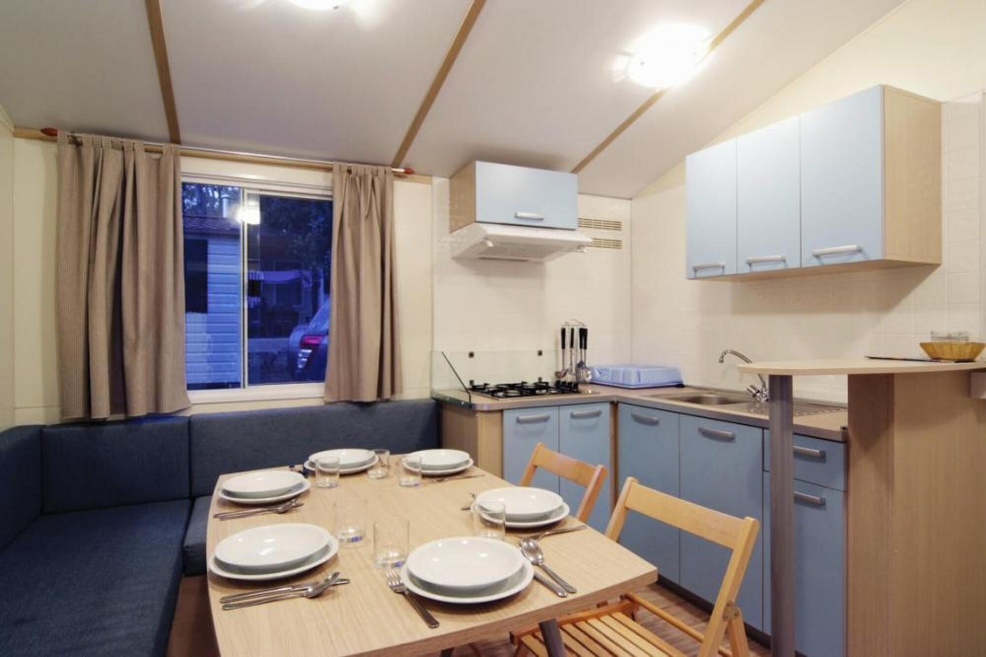 Caravanpark Soline med sine 150 mobilehomes byder dig velkommen direkte til den let skrånende sand- og stenstrand. Alt efter beliggenhed ligger disse mellem 40 m og 400 m fra stranden og i skyggen af en tæt fyrreskov. Du kan parkere din bil lige ved siden af dit mobilhome og afslutte dagen på den overdækkede terrasse. Biograd na Moru, den hvide by ved havet, ligger mellem Zadar og Vodice på den dalmatiske kyst. De to store lystbådehavne er populære blandt mange båd- og yachtejere, der starter deres ture til Kornati-øens labyrint herfra. Fantastiske strande og bugter venter på badende. Især den let skrånende stenstrand Drazice og den tilstødende sandstrand Soline er meget populære blandt børnefamilier. Höjdpunkter ingår: Användningsbaserade energikostnader, sängkläder, handdukar, WiFi. Aktiviteter i nærheden: Restaurant Park Soline ligger på campingpladsen. I skyggen af fyrreskoven kan du vælge mellem en række middelhavsspecialiteter på den rummelige terrasse med udsigt over havet. Til underholdning for unge og gamle arrangeres der dagligt underholdende og sportslige aktiviteter af de professionelle animatorer. De hjælper dig også gerne med at planlægge vandreture eller udflugter til attraktive nationalparker som Krka, Kornati eller Paklenica eller til de historiske byer Zadar og Sibenik. Du kan nå centrum af Biograd med en afslappet gåtur langs stranden gennem den nyudviklede vandresti: Ikke egnet til personer med nedsat mobilitet.