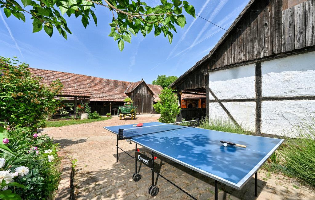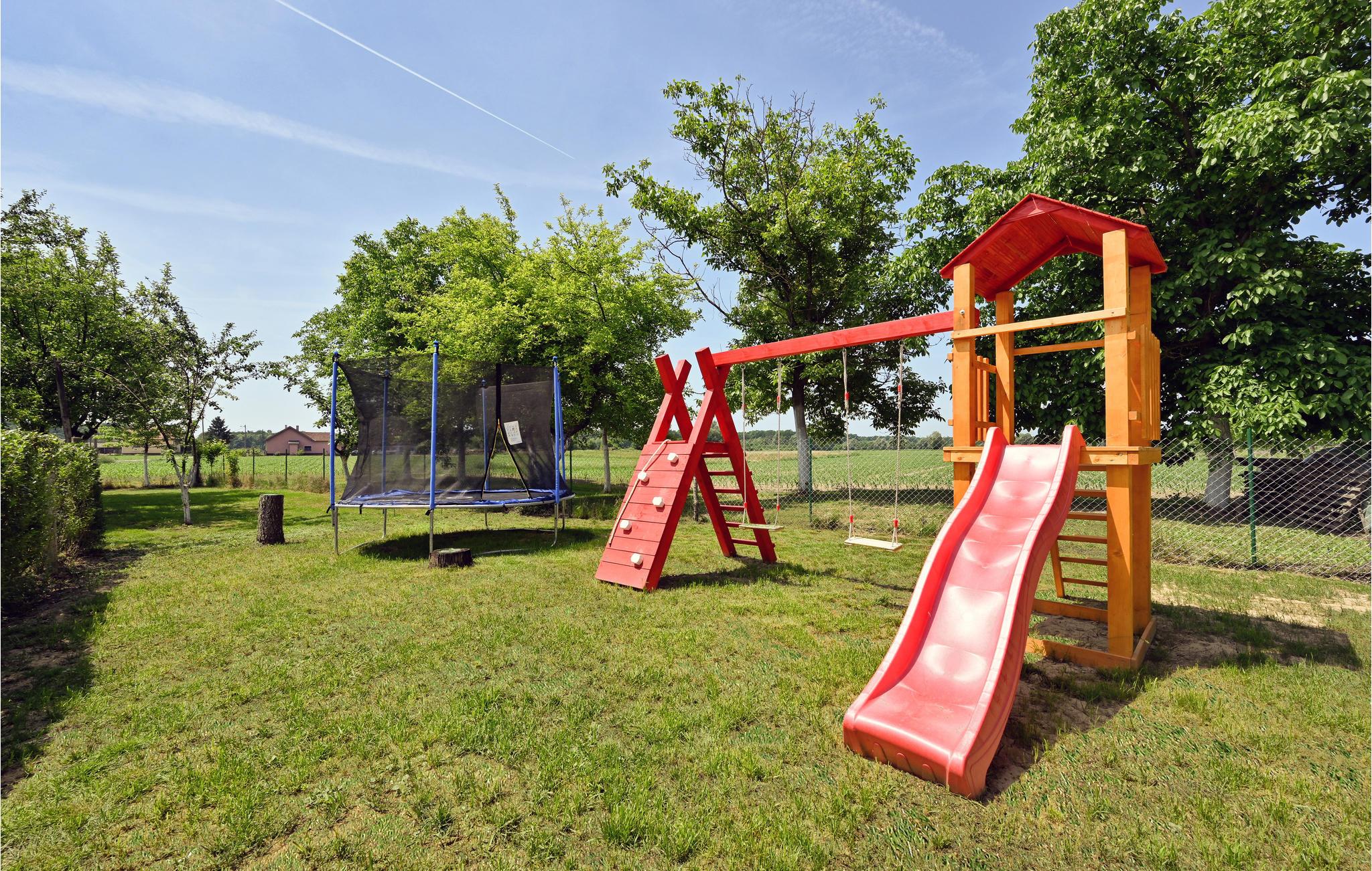 I har adgang til flere åbne terrasser og en privat pool, hvor I til enhver tid kan tage en dukkert. Derudover er der også liggestole til rådighed, hvor I kan solbade og komme helt ned i gear. Murstensgrillen lægger op til madlavning i det fri på varme sommeraftener. Børnene vil elske den store græsplæne, hvor de blandt andet kan spille fodbold eller badminton, gynge eller lege på rutsjebanen.