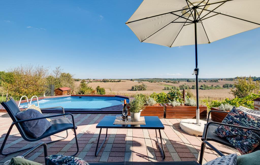 Slap af i dette komfortable og skønne hus med jacuzzi, pool og udsigt over landskabet. Dette unikke feriehus kombinerer moderne komfort med rustik charme. Et rummeligt værelse til hele familien eller venner venter jer på tre etager, ideelt til fælles oplevelser. De stilfulde møbler, kombineret med traditionelt træ og varme accenter, skaber en hyggelig atmosfære for jer. Nyd spabadet eller poolen med en betagende panoramaudsigt over den omkringliggende natur. En stor udendørs grill lægger op til hyggelige aftener. Se børnene rende rundt og lege i den store have og nyd den vellykkede familietid i dette smukke hus. Kapela er det perfekte udgangspunkt for at opleve det maleriske landskab omkring Bjelovar. De rolige omgivelser lover jer adskillige vandre- og cykelstier gennem idylliske skove og bølgende bakker. Friluftsmennesker vil få noget for pengene her. Tag på udflugter til historiske steder eller besøg regionens charmerende landsbyer. I nærheden finder I også små restauranter, der serverer lokale specialiteter. For de mere eventyrlystne er der fiskeri, ridning og udforskning af den uberørte natur.