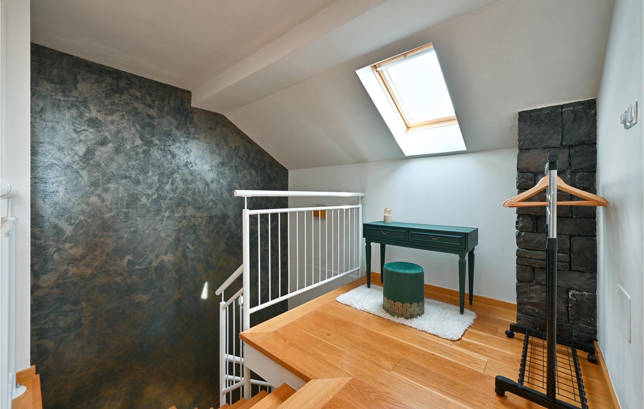På ferie i dette feriehus vil I ikke mangle hverken underholdning eller den nødvendige komfort til en afslappende pause. Med sin smagfulde og moderne indretning, karakteristiske trægulve og lyse lokaler inviterer den til at slappe af her i stilfulde omgivelser. på grund af fitnessrummet kan I holde jer i form selv på ferien. Efter en lang cykeltur kan I varme op i saunaen eller nyde en afslappende dukkert i spabadet. Om aftenen kan I hygge jer sammen ved pejsen, som skaber en hyggelig atmosfære med sin bløde knitren og hyggelige varme.