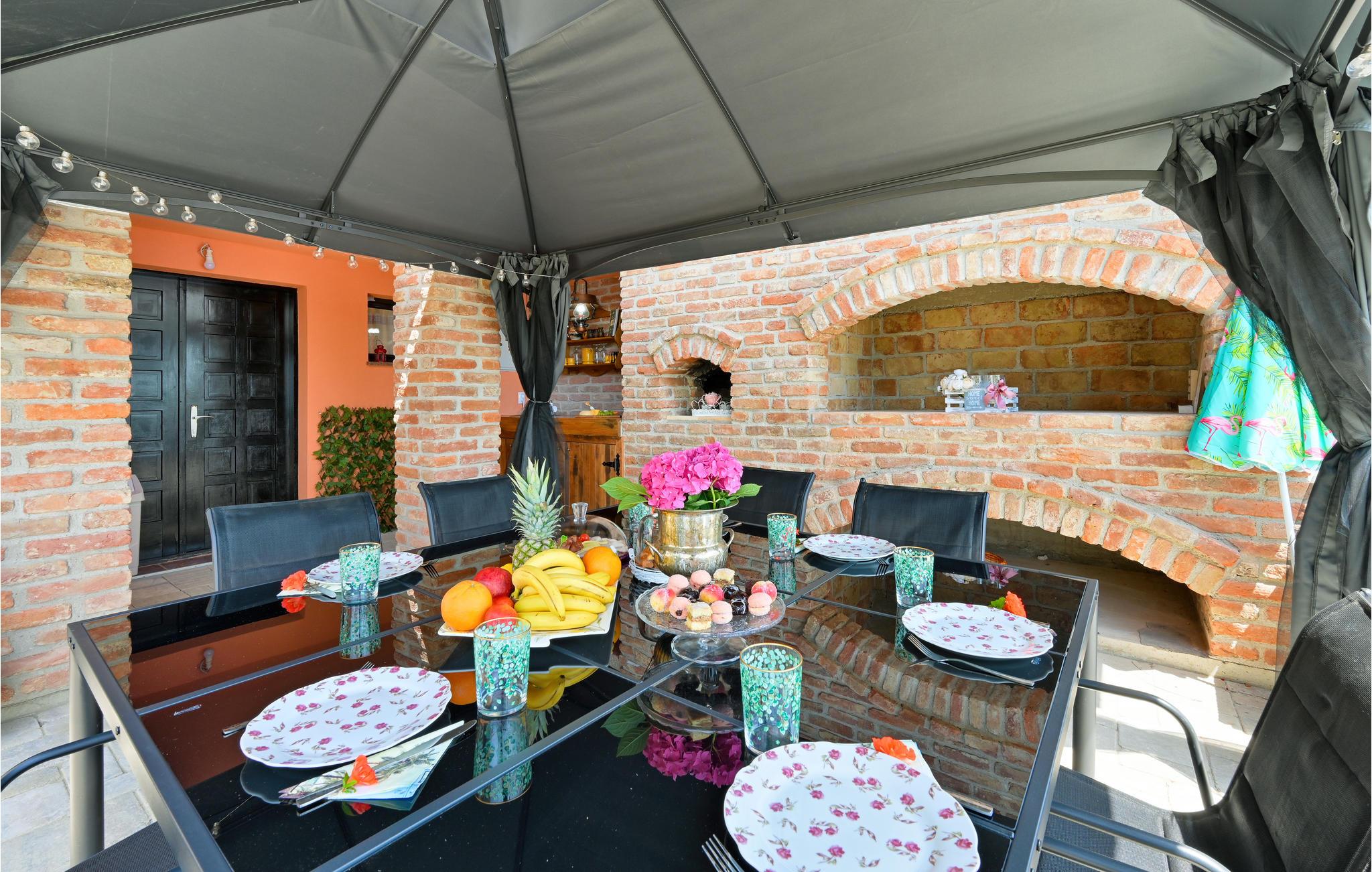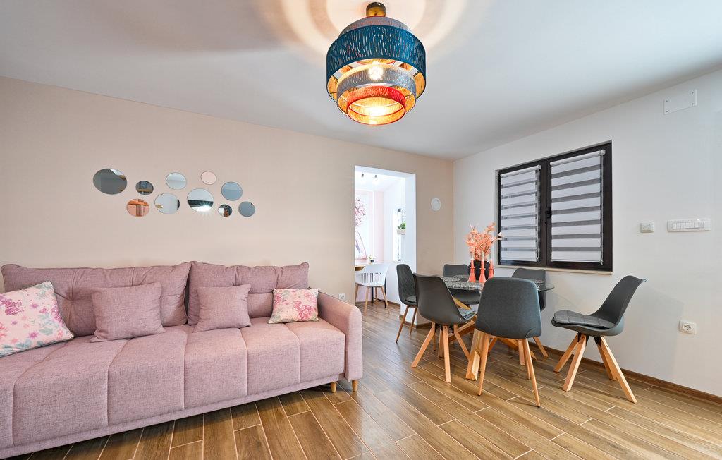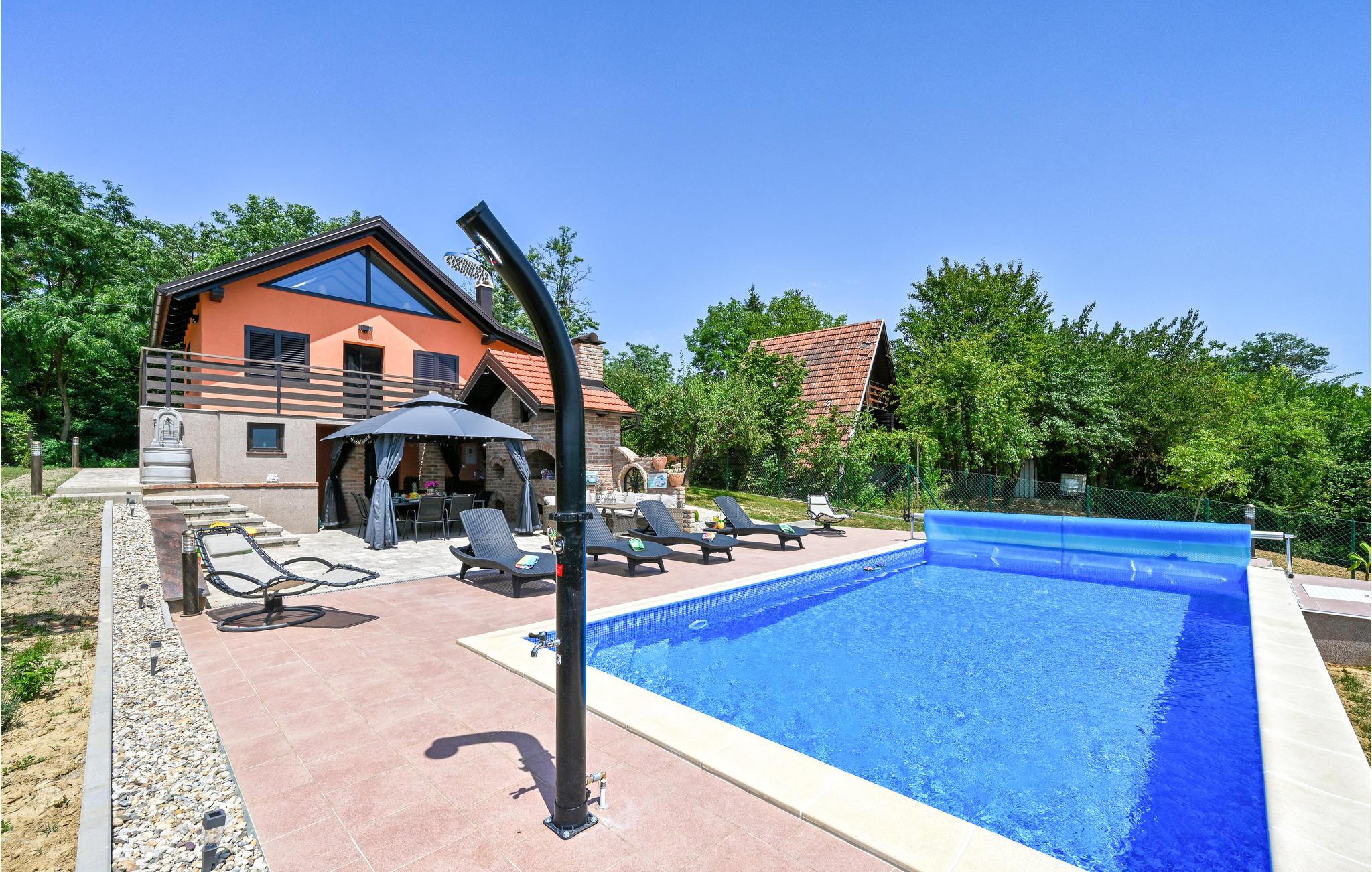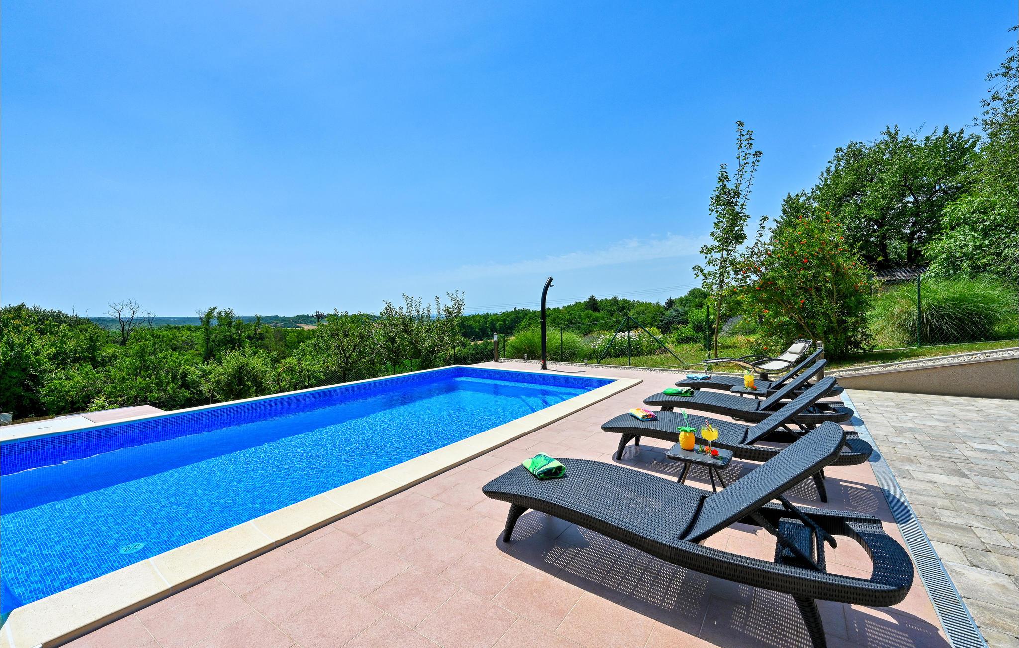 Dette moderne og stilfulde hus byder på al den komfort, I kan ønske jer til en afslappende ferie sammen med familien. Moderne og rustikke elementer veksler mellem hinanden. Opdelingen af ??værelserne over tre etager giver jeres familie plads og mulighed for at trække sig tilbage og nyde en alenestund. Ud over den fremragende udsigt til det omkringliggende landskab på øverste etage, har I en altan nedenunder, som lægger op til at snuppe en kop kaffe og en bog og nyde lidt fred og ro. Den rummelige, overdækkede terrasse med stor muret grill og udekøkken giver jer de perfekte rammer til at tilbringe jeres varme sommeraftener her. I bør bestemt overveje en dukkert i poolen under den kroatiske stjernehimmel!