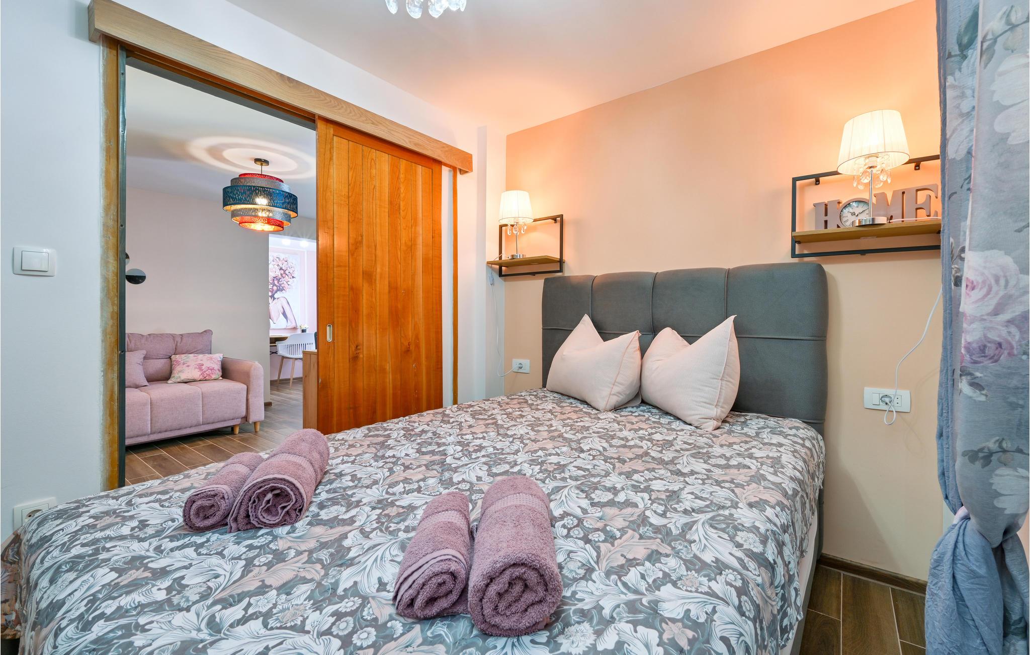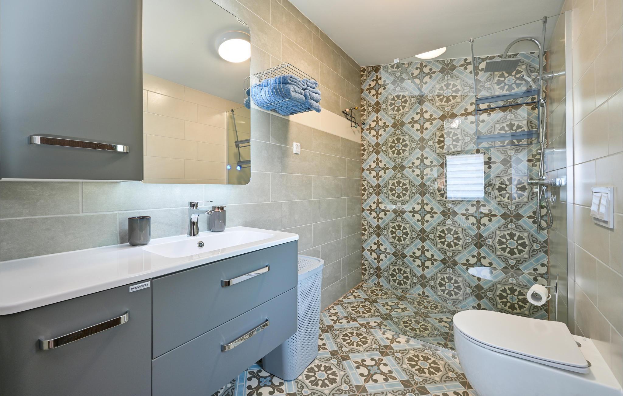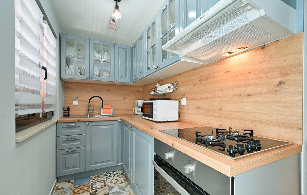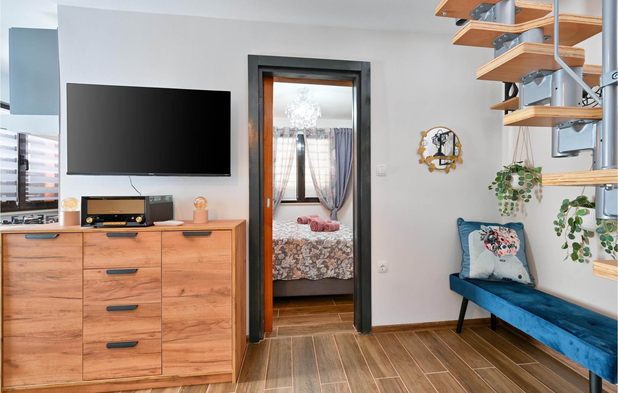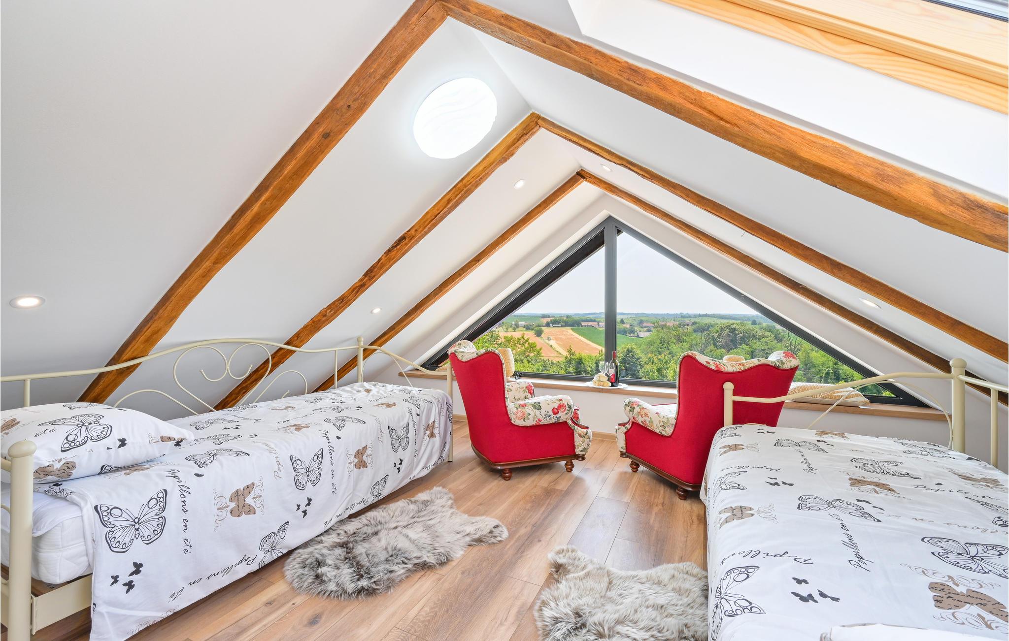 Dette moderne og stilfulde hus byder på al den komfort, I kan ønske jer til en afslappende ferie sammen med familien. Moderne og rustikke elementer veksler mellem hinanden. Opdelingen af ??værelserne over tre etager giver jeres familie plads og mulighed for at trække sig tilbage og nyde en alenestund. Ud over den fremragende udsigt til det omkringliggende landskab på øverste etage, har I en altan nedenunder, som lægger op til at snuppe en kop kaffe og en bog og nyde lidt fred og ro. Den rummelige, overdækkede terrasse med stor muret grill og udekøkken giver jer de perfekte rammer til at tilbringe jeres varme sommeraftener her. I bør bestemt overveje en dukkert i poolen under den kroatiske stjernehimmel!
