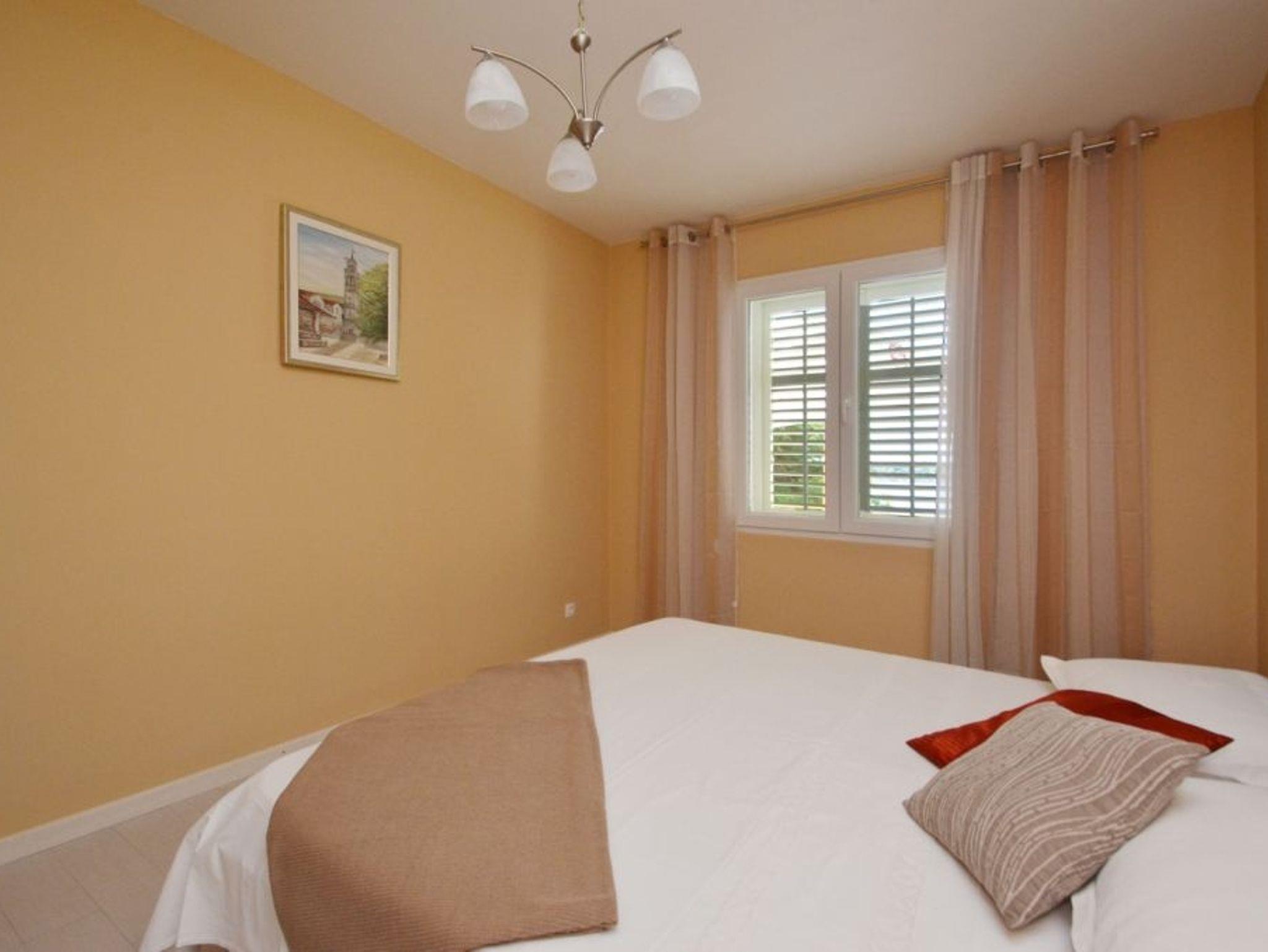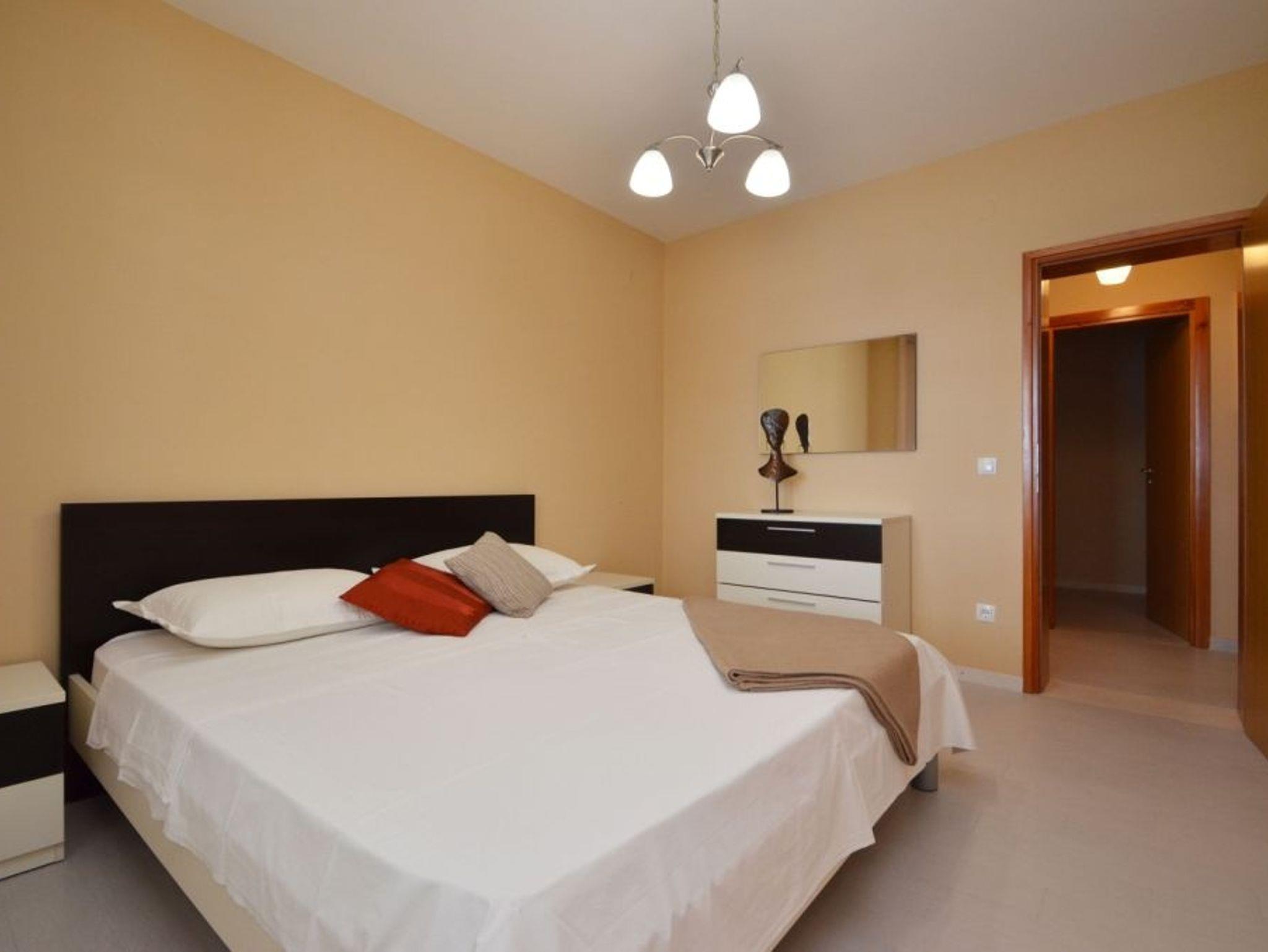 Ferienwohnung bietet Platz für 5 Gäste. Die Betten sind in Schlafzimmern, die es 3 gibt, innerhalb einer Gesamtfläche von 53m2, angeordnet. Die Gäste haben eine eigene Terrasse zur Verfügung, auf der sie in warmen Sommernächten genießen können. Das Apartment bietet Meerblick. Es ist erlaubt, Speisen auf dem Gemeinschafts-Grill vorzubereiten. IM PREIS INBEGRIFFEN: Kurtaxe, Endreinigung, Klimatisierung, Parkplatz, Internet, Bootsanlegeplatz, Kinderbett, Bügeleisen, Bügelbrett, Föhn. Die Verfügbarkeit zusätzlicher Dienstleistungen in Ihrem reservierten Termin und die Preise derselben (falls nicht aufgeführt) müssen im Voraus überprüft werden. Zusätzliche Dienstleistungen die in der Zahlungsaufforderung nicht aufgeführt sind werden direkt beim Vermieter bezahlt, angenommen der Gast nutzt auch diese.
