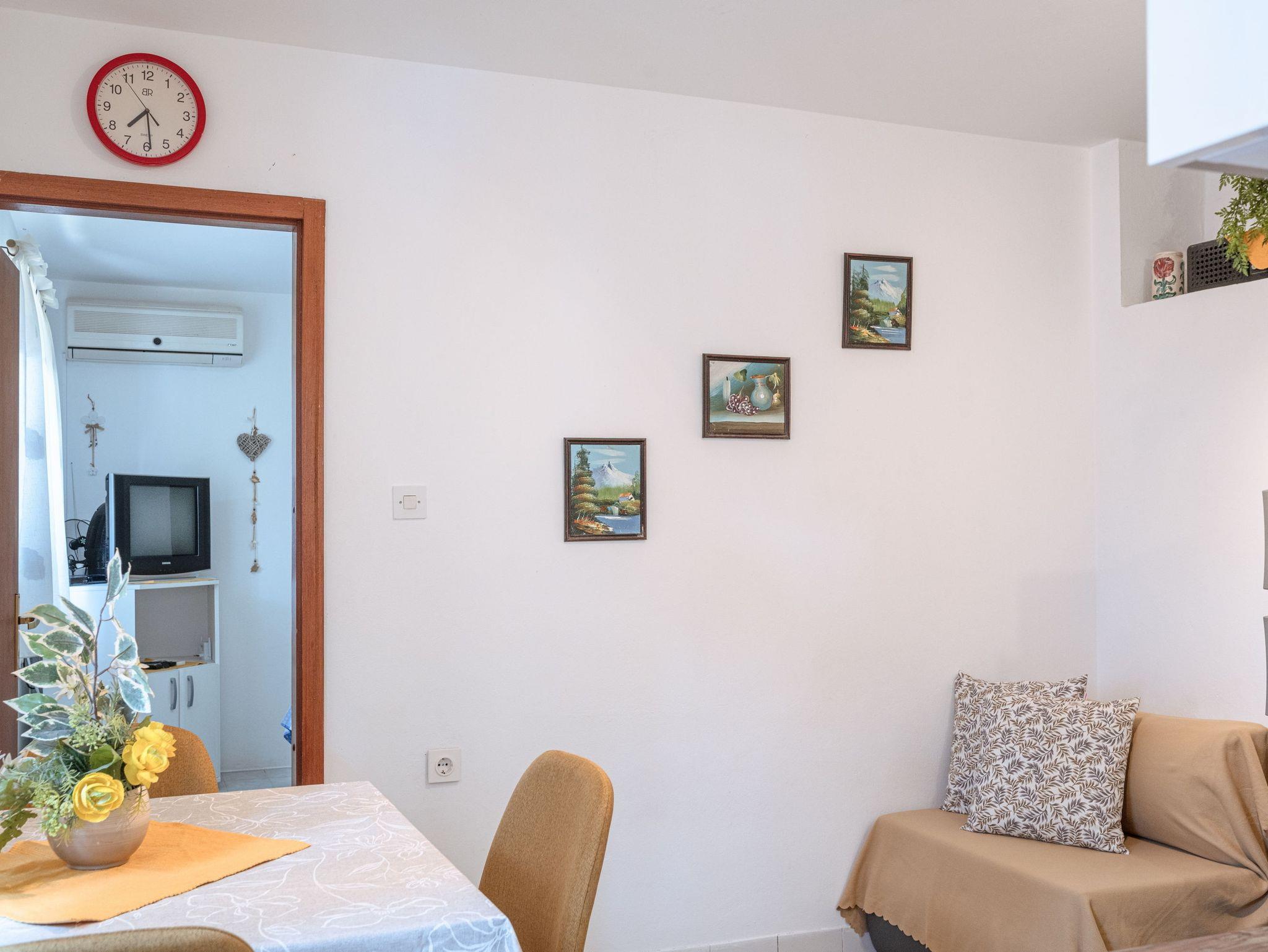 Ferienwohnung bietet Platz für 3 Gäste. Die Betten sind in Schlafzimmern, die es 1 gibt, und in Esszimmer, innerhalb einer Gesamtfläche von 33m2, angeordnet. Die Gäste haben eine eigene Terrasse zur Verfügung, auf der sie in warmen Sommernächten genießen können. Das Apartment bietet Meerblick. Für vollen Genuss und Entspannung gibt es einen privaten Grill für Gäste dieser Unterkunft. In der Unterkunftseinheit besteht die Möglichkeit des Mitbringens von Haustieren gegen Aufpreis. Räume der gebuchten Unterkunftseinheit werden nicht in eine Ganze verbunden. IM PREIS INBEGRIFFEN: Kurtaxe, Endreinigung, Klimatisierung, Parkplatz, Internet, Bootsanlegeplatz, Kinderbett, Bügeleisen, Bügelbrett, Föhn, Liegestühle. VERBINDLICHE ZUSÄTZLICHE KOSTEN: Aufzahlung für Kurzaufenthalte (prozentualer Zuschlag pro Nächtigungsanzahl: 30% - 1, 20% - 2, 10% - 3). UNVERBINDLICHE ZUSÄTZLICHE KOSTEN: Haustiere (7,00 € pro Nacht). Die Verfügbarkeit zusätzlicher Dienstleistungen in Ihrem reservierten Termin und die Preise derselben (falls nicht aufgeführt) müssen im Voraus überprüft werden. Zusätzliche Dienstleistungen die in der Zahlungsaufforderung nicht aufgeführt sind werden direkt beim Vermieter bezahlt, angenommen der Gast nutzt auch diese.
