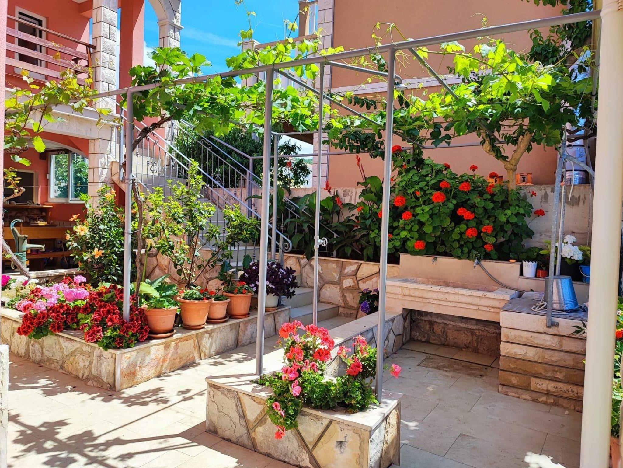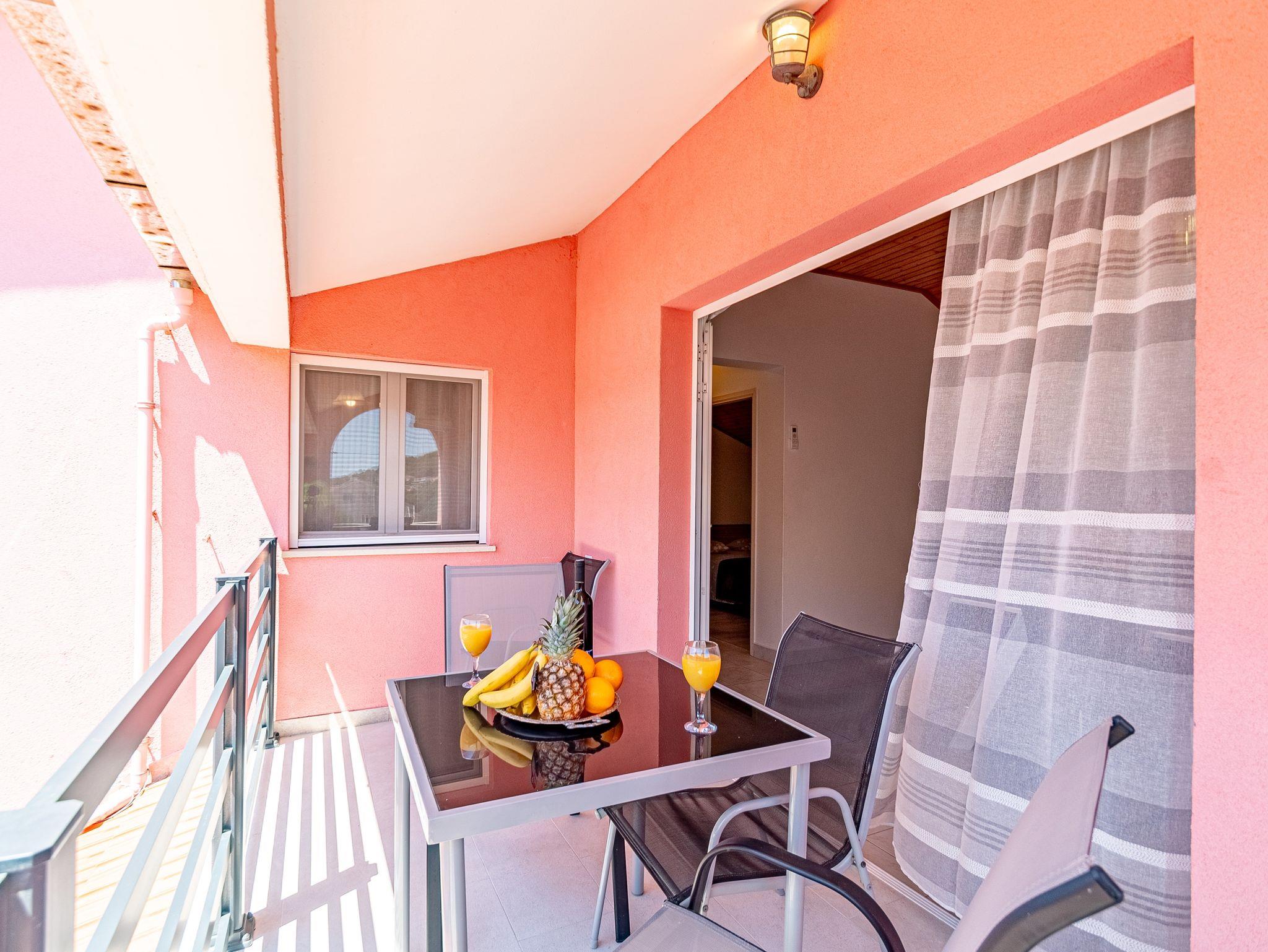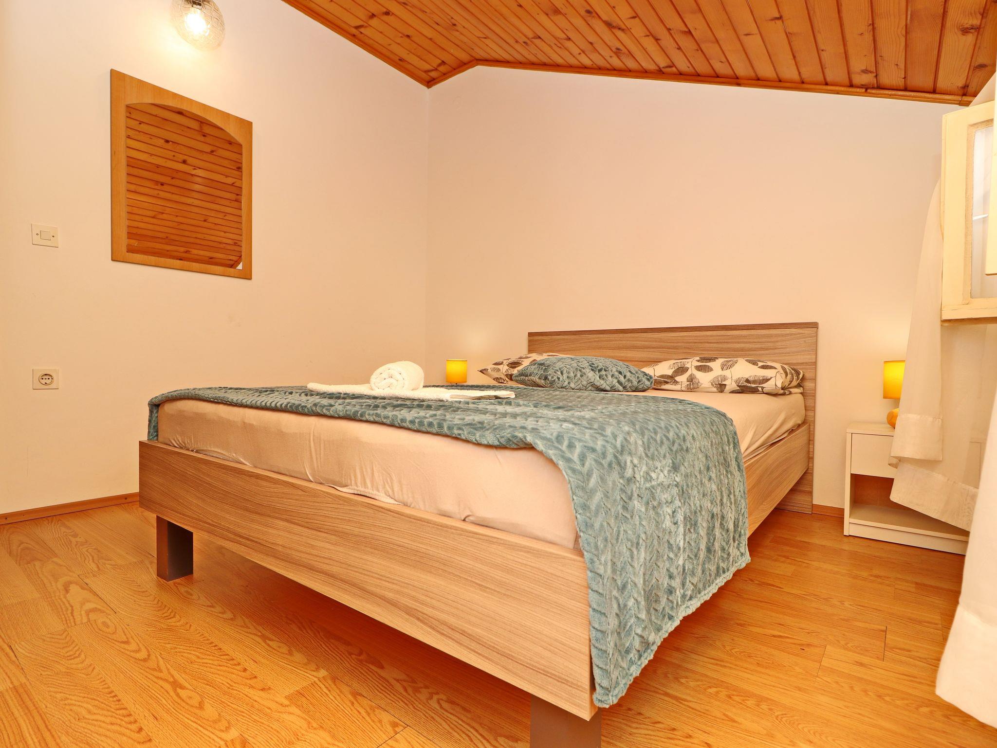 Ferienwohnung bietet Platz für 4 Gäste. Die Betten sind in Schlafzimmern, die es 2 gibt, innerhalb einer Gesamtfläche von 45m2, angeordnet. Die Gäste haben eine eigene Terrasse zur Verfügung, auf der sie in warmen Sommernächten genießen können. Das Apartment bietet Meerblick. Es ist erlaubt, Speisen auf dem Gemeinschafts-Grill vorzubereiten. IM PREIS INBEGRIFFEN: Kurtaxe, Endreinigung, Klimatisierung, Parkplatz, Internet, Kinderbett, Bügeleisen, Bügelbrett, Föhn, Sonnenschirm. VERBINDLICHE ZUSÄTZLICHE KOSTEN: Aufzahlung für Kurzaufenthalte (prozentualer Zuschlag pro Nächtigungsanzahl: 30% - 1, 20% - 2, 10% - 3). Die Verfügbarkeit zusätzlicher Dienstleistungen in Ihrem reservierten Termin und die Preise derselben (falls nicht aufgeführt) müssen im Voraus überprüft werden. Zusätzliche Dienstleistungen die in der Zahlungsaufforderung nicht aufgeführt sind werden direkt beim Vermieter bezahlt, angenommen der Gast nutzt auch diese. Ermäßigung auf den Grundpreis: Gratistag 21=19 (bei einem Aufenthalt von 21 Tagen oder mehr erhalten Sie 2 Gratistage für den Aufenthalt bis 31.12.26).
