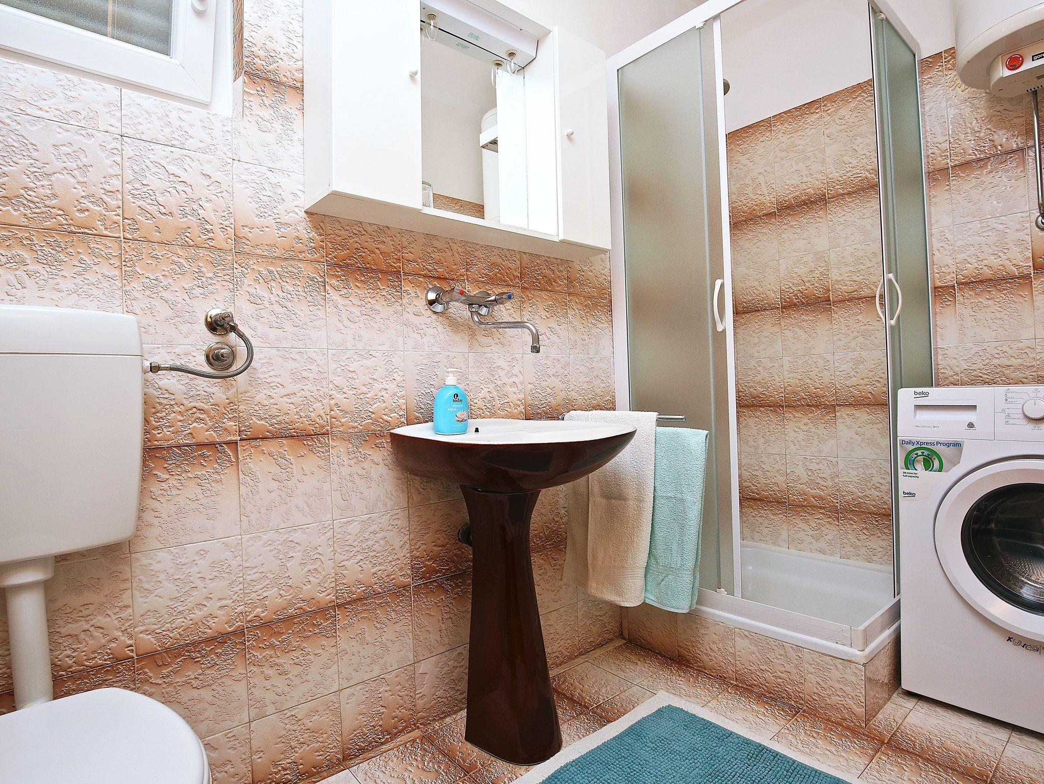Ferienwohnung bietet Platz für 7 Gäste. Die Betten sind in Schlafzimmern, die es 3 gibt, und in Wohnzimmer, innerhalb einer Gesamtfläche von 55m2, angeordnet. Die Gäste haben eine eigene Terrasse zur Verfügung, auf der sie in warmen Sommernächten genießen können. Das Apartment bietet Meerblick. Es ist erlaubt, Speisen auf dem Gemeinschafts-Grill vorzubereiten. In der Unterkunftseinheit besteht die Möglichkeit des Mitbringens von Haustieren gegen Aufpreis. In der gebuchten Unterkunftseinheit zahlt man am Ort ein Depositum ( der Preis ist an der Internetseite angeführt ). IM PREIS INBEGRIFFEN: Kurtaxe, Endreinigung, Klimatisierung, Parkplatz, Internet, Wäschewaschen, Bootsanlegeplatz, Kinderbett, Bügeleisen, Bügelbrett. VERBINDLICHE ZUSÄTZLICHE KOSTEN: Kaution (100,00 € Einmalzahlung), Aufzahlung für Kurzaufenthalte (prozentualer Zuschlag pro Nächtigungsanzahl: 30% - 1, 20% - 2, 10% - 3). UNVERBINDLICHE ZUSÄTZLICHE KOSTEN: Haustiere (7,00 € pro Nacht). Die Verfügbarkeit zusätzlicher Dienstleistungen in Ihrem reservierten Termin und die Preise derselben (falls nicht aufgeführt) müssen im Voraus überprüft werden. Zusätzliche Dienstleistungen die in der Zahlungsaufforderung nicht aufgeführt sind werden direkt beim Vermieter bezahlt, angenommen der Gast nutzt auch diese. Ermäßigung auf den Grundpreis: Gratistag 14=13 (bei einem Aufenthalt von 14 Tagen oder mehr erhalten Sie einen Gratistag für den Aufenthalt bis 31.12.26).