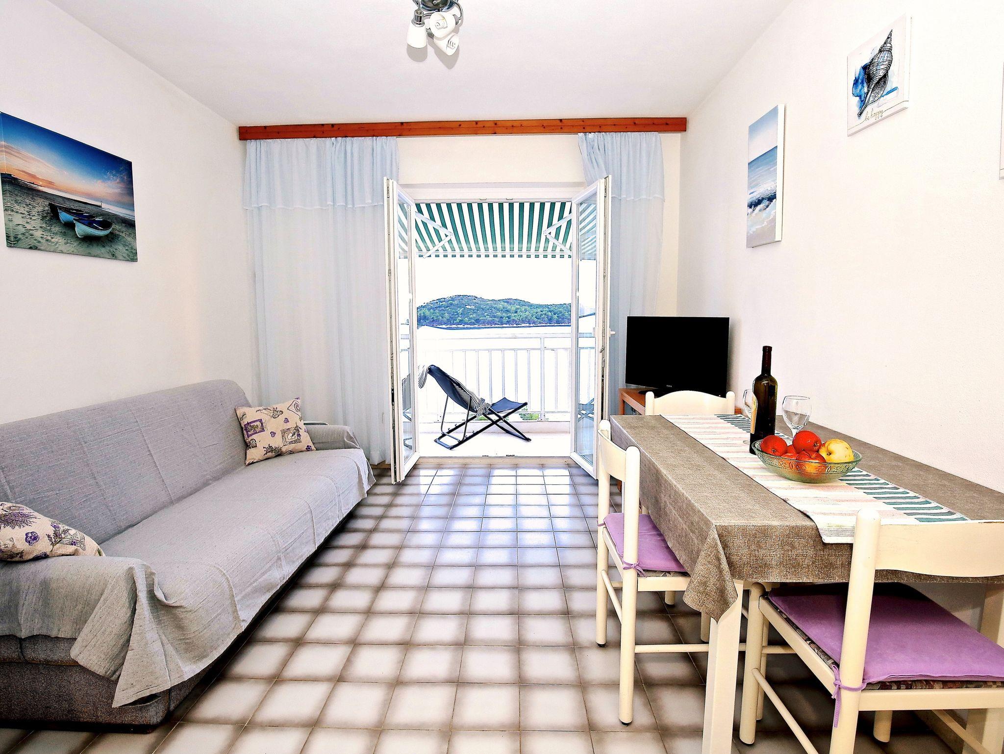 Ferienwohnung bietet Platz für 3 Gäste. Die Betten sind in Schlafzimmern, die es 1 gibt, und in Esszimmer, innerhalb einer Gesamtfläche von 28m2, angeordnet. Die Gäste haben einen eigenen Balkon zur Verfügung, auf der sie in warmen Sommernächten genießen können. Das Apartment bietet Meerblick. Es ist erlaubt, Speisen auf dem Gemeinschafts-Grill vorzubereiten. In der Unterkunftseinheit besteht die Möglichkeit des Mitbringens von Haustieren gegen Aufpreis. In der gebuchten Unterkunftseinheit zahlt man am Ort ein Depositum ( der Preis ist an der Internetseite angeführt ). IM PREIS INBEGRIFFEN: Kurtaxe, Endreinigung, Klimatisierung, Parkplatz, Internet, Wäschewaschen, Bootsanlegeplatz, Kinderbett, Bügeleisen, Bügelbrett. VERBINDLICHE ZUSÄTZLICHE KOSTEN: Kaution (100,00 € Einmalzahlung), Aufzahlung für Kurzaufenthalte (prozentualer Zuschlag pro Nächtigungsanzahl: 30% - 1, 20% - 2, 10% - 3). UNVERBINDLICHE ZUSÄTZLICHE KOSTEN: Haustiere (7,00 € pro Nacht). Die Verfügbarkeit zusätzlicher Dienstleistungen in Ihrem reservierten Termin und die Preise derselben (falls nicht aufgeführt) müssen im Voraus überprüft werden. Zusätzliche Dienstleistungen die in der Zahlungsaufforderung nicht aufgeführt sind werden direkt beim Vermieter bezahlt, angenommen der Gast nutzt auch diese. Ermäßigung auf den Grundpreis: Gratistag 14=13 (bei einem Aufenthalt von 14 Tagen oder mehr erhalten Sie einen Gratistag für den Aufenthalt bis 31.12.26).