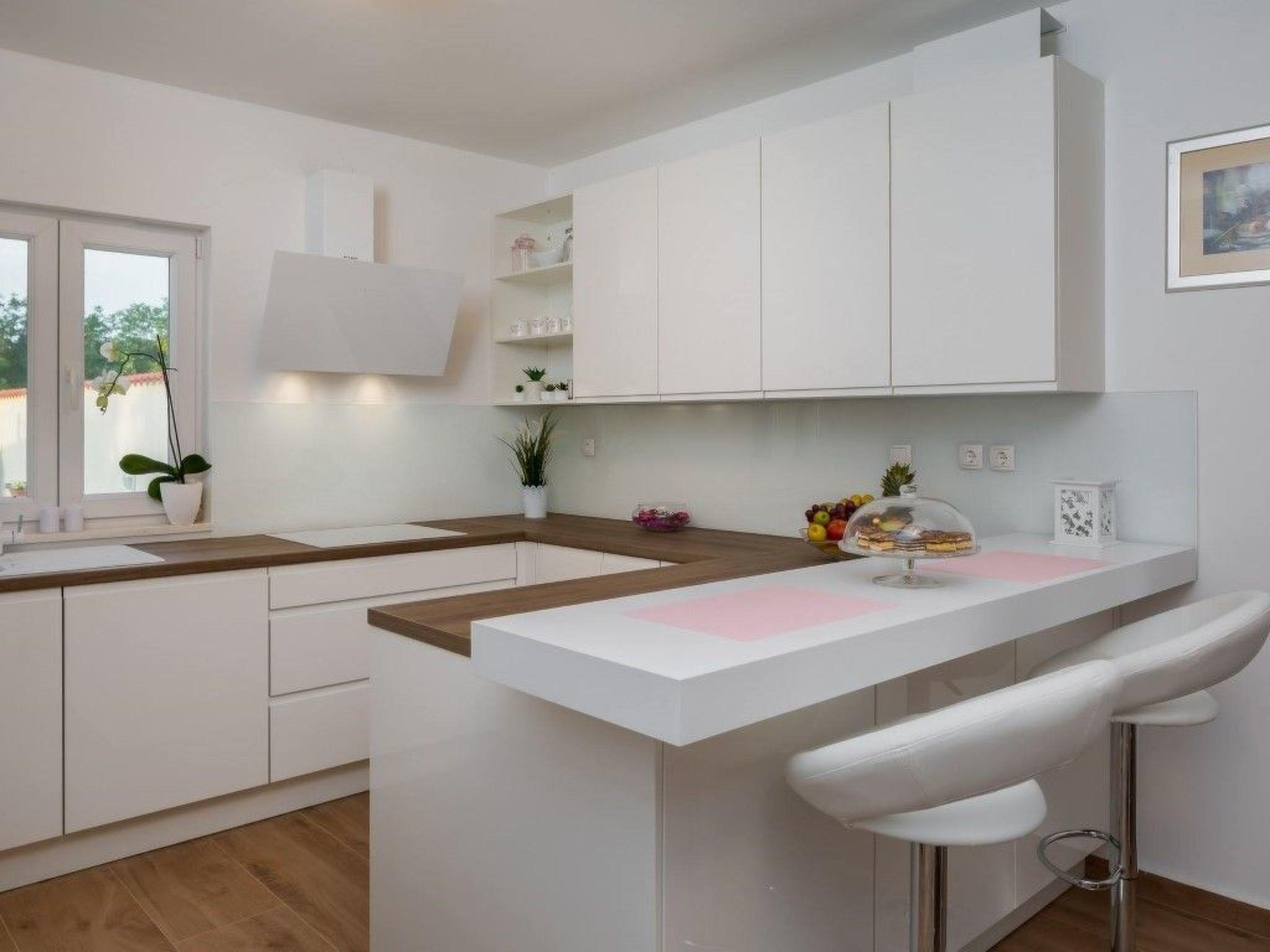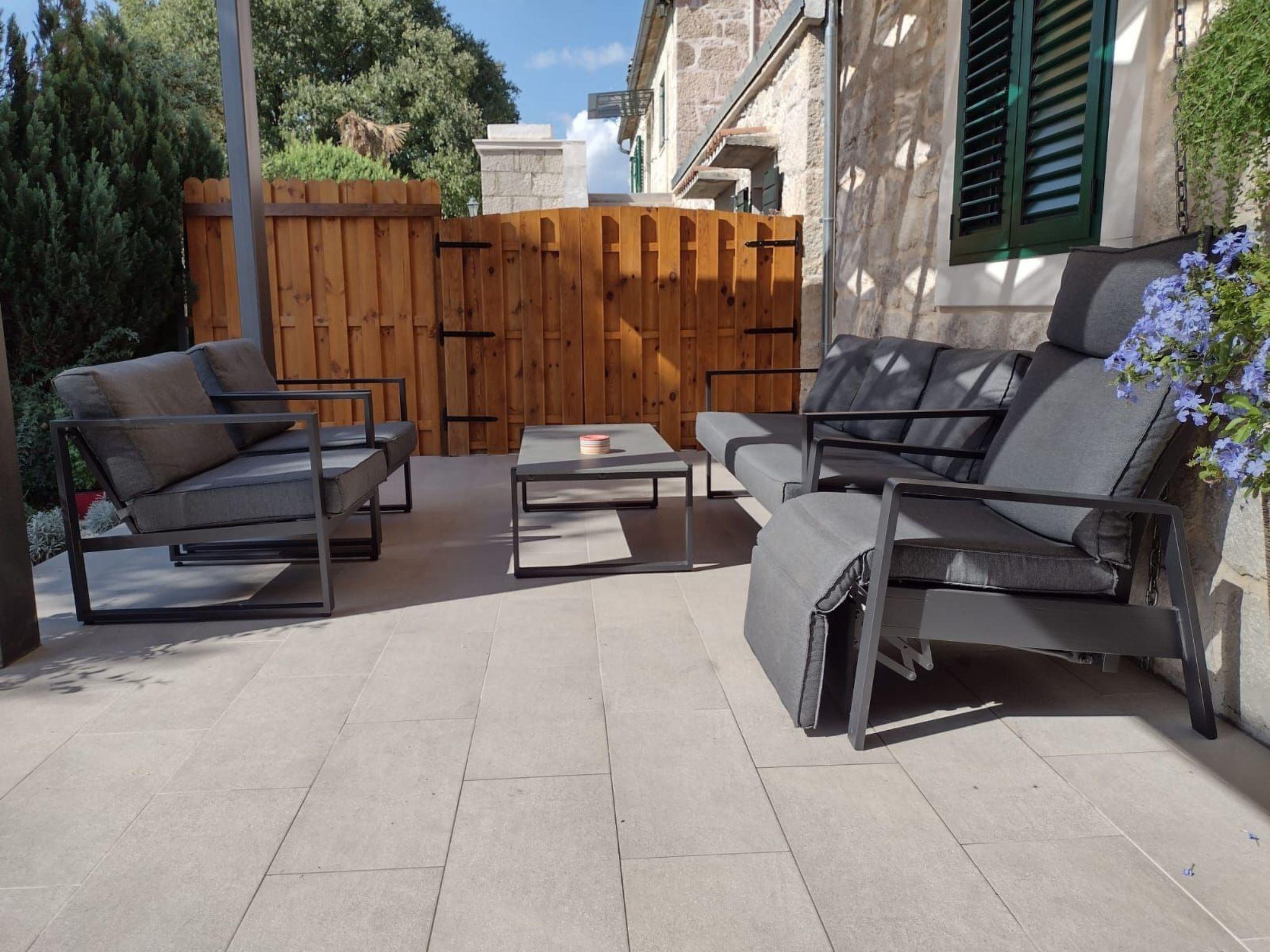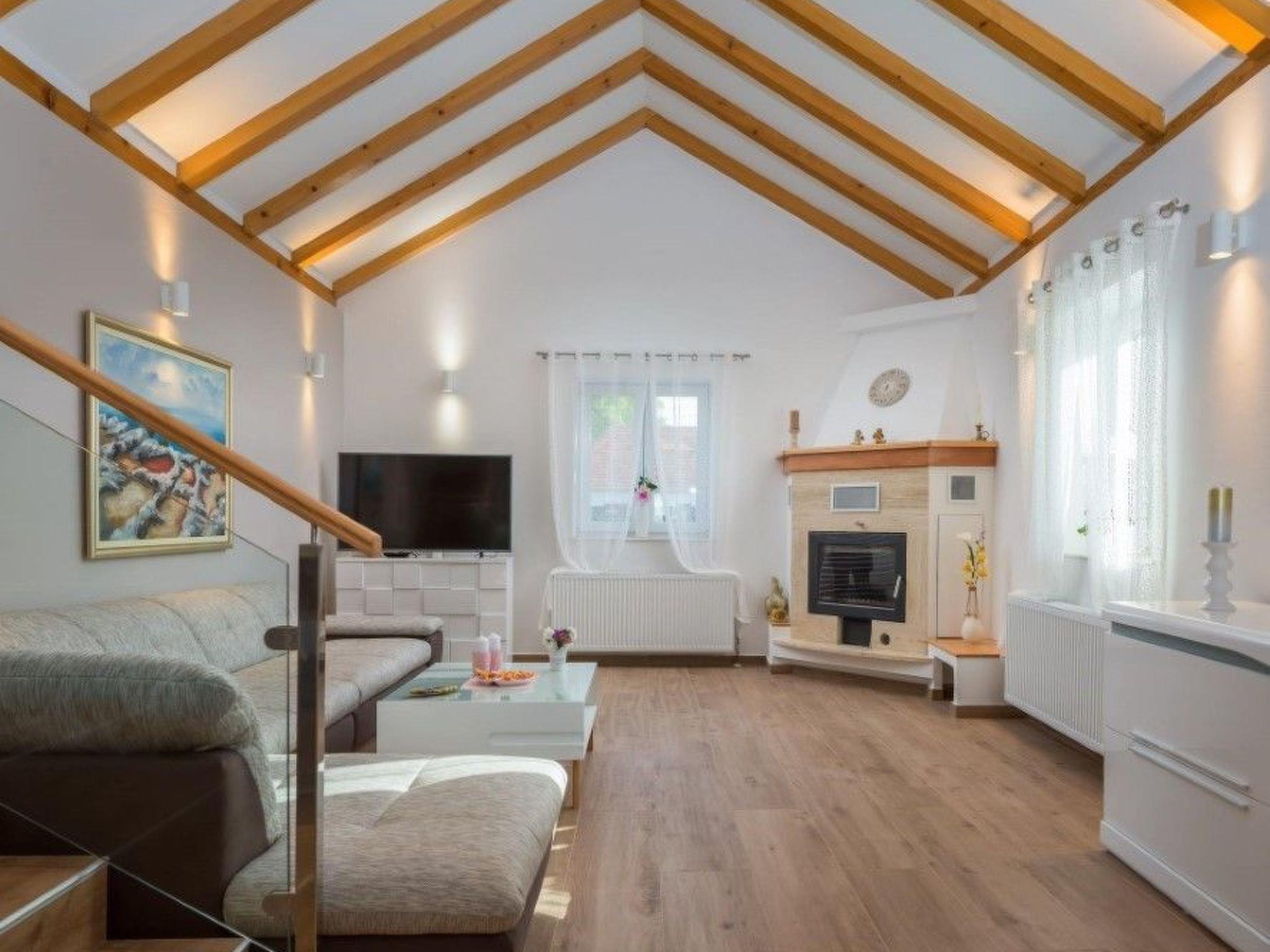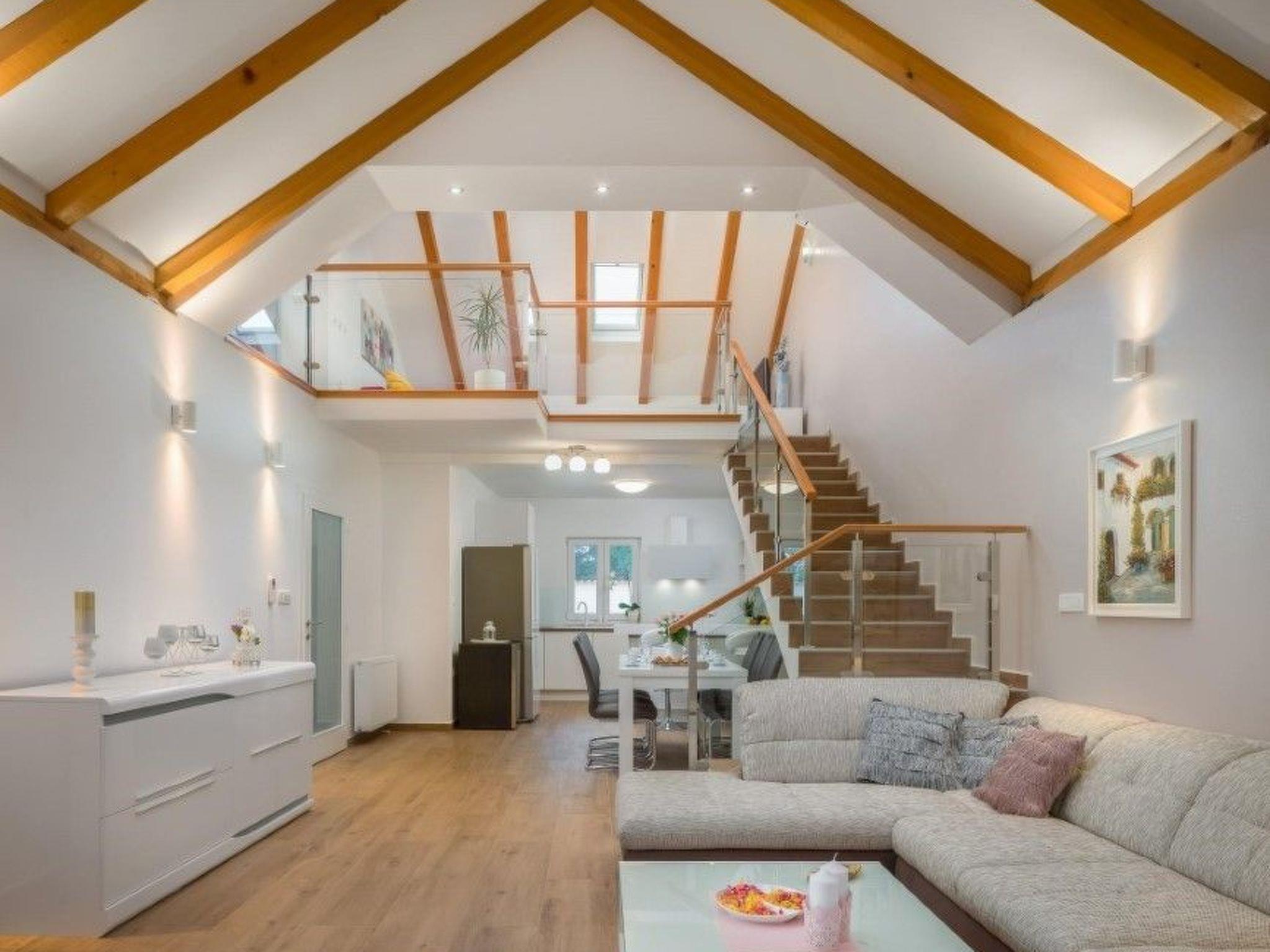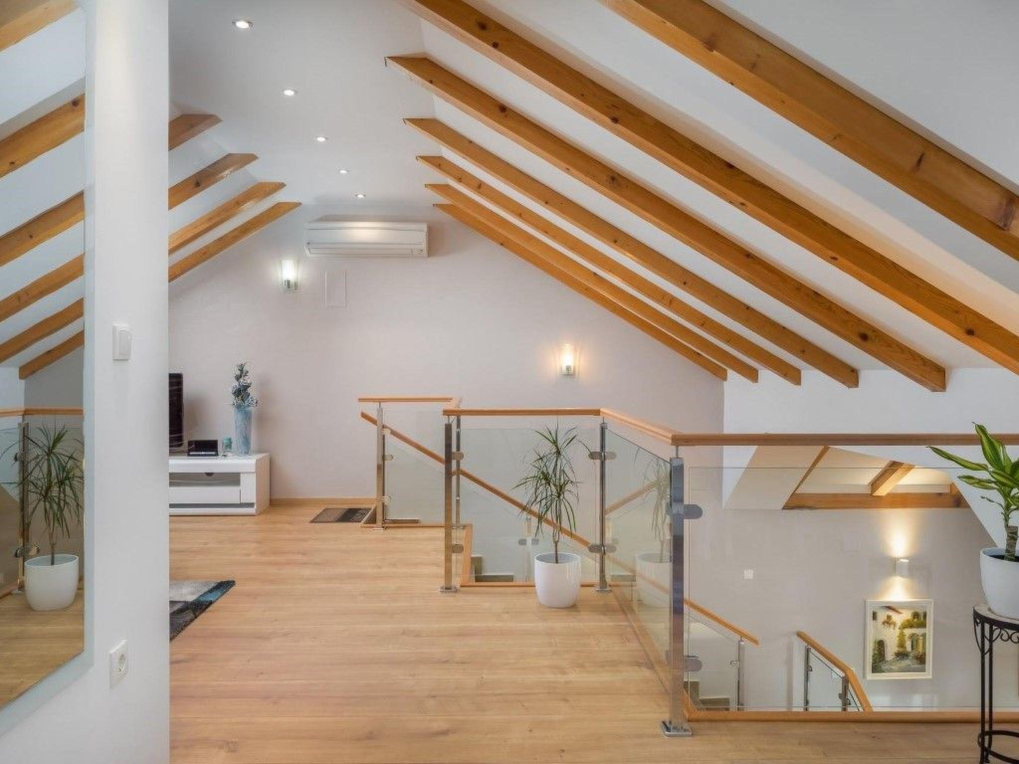 The ground floor’s concept is a sunlit open space with a fully equipped kitchen, suited for all your needs; dining area, which can comfortably accommodate all guests, and a cosy living room. It has three spacious double rooms, one having a private bathroom. The sofa bed on the gallery and the extra bed in one room are available for two additional guests, so this stone villa can accommodate up to a total of 8 people.