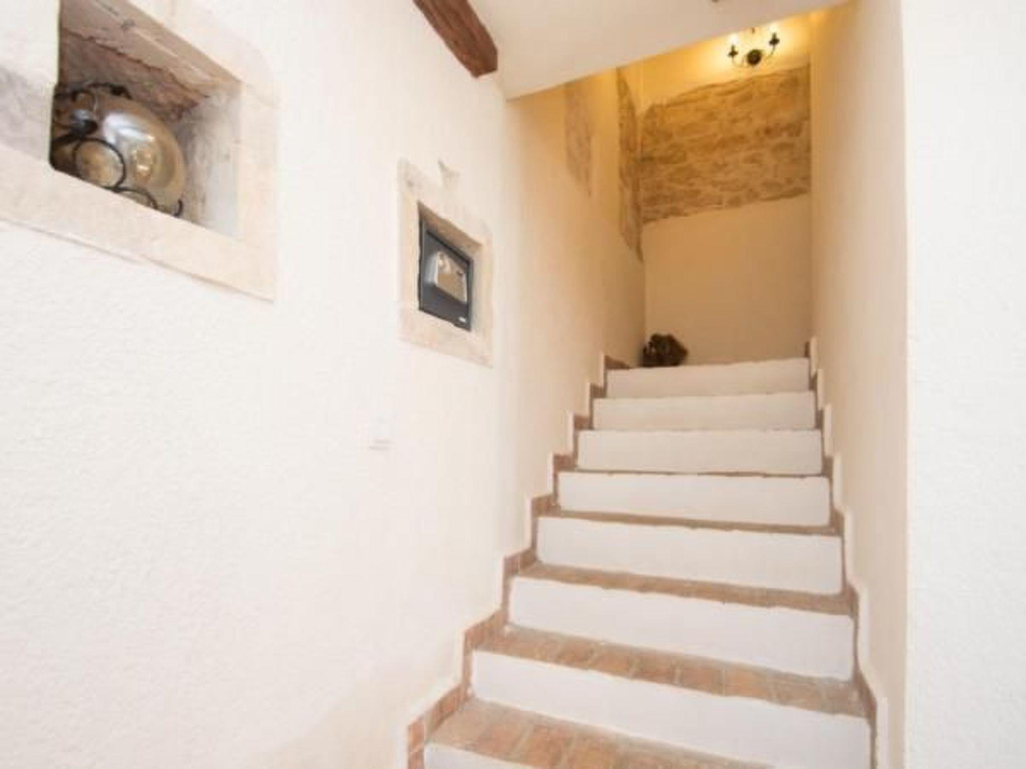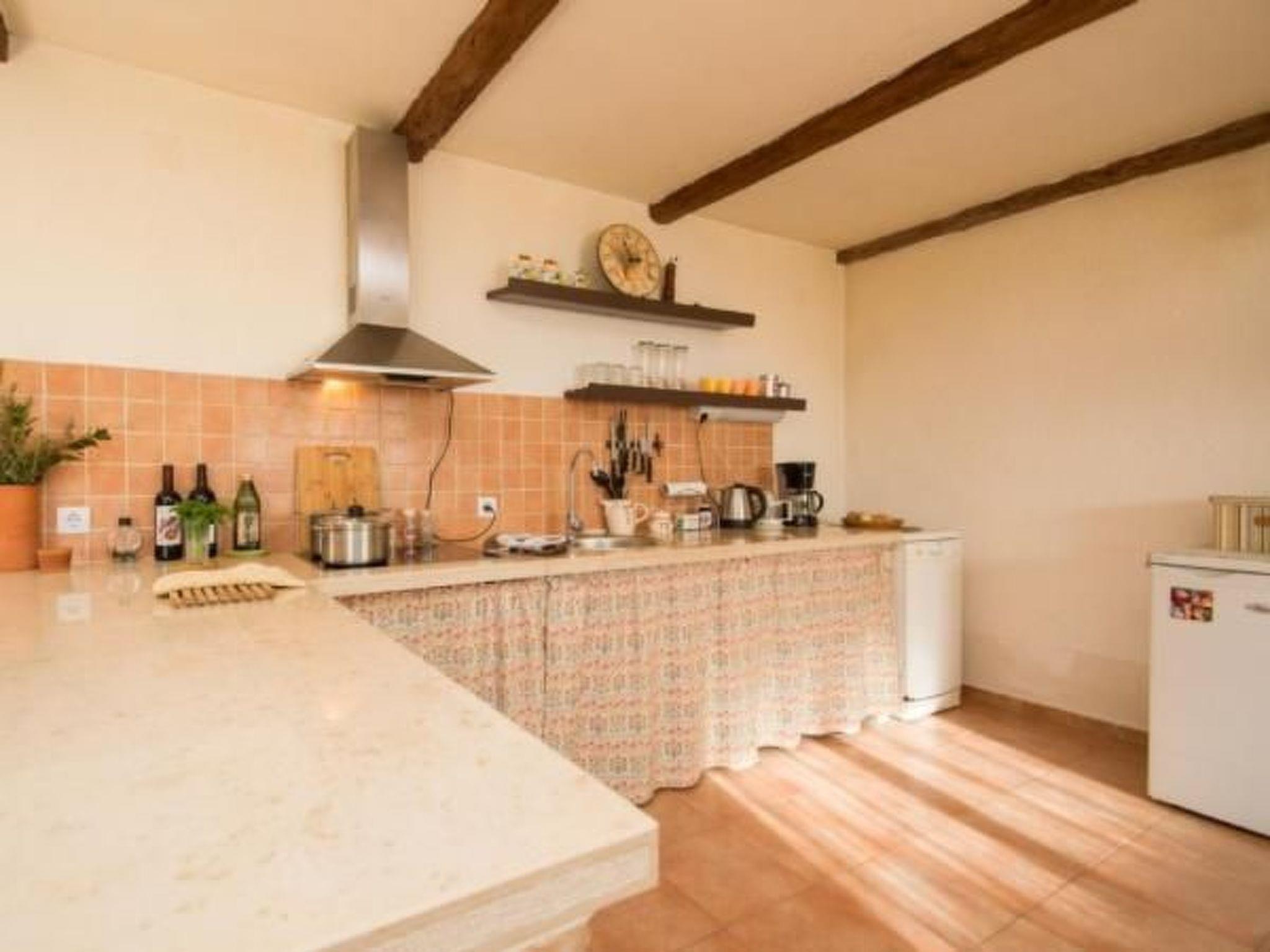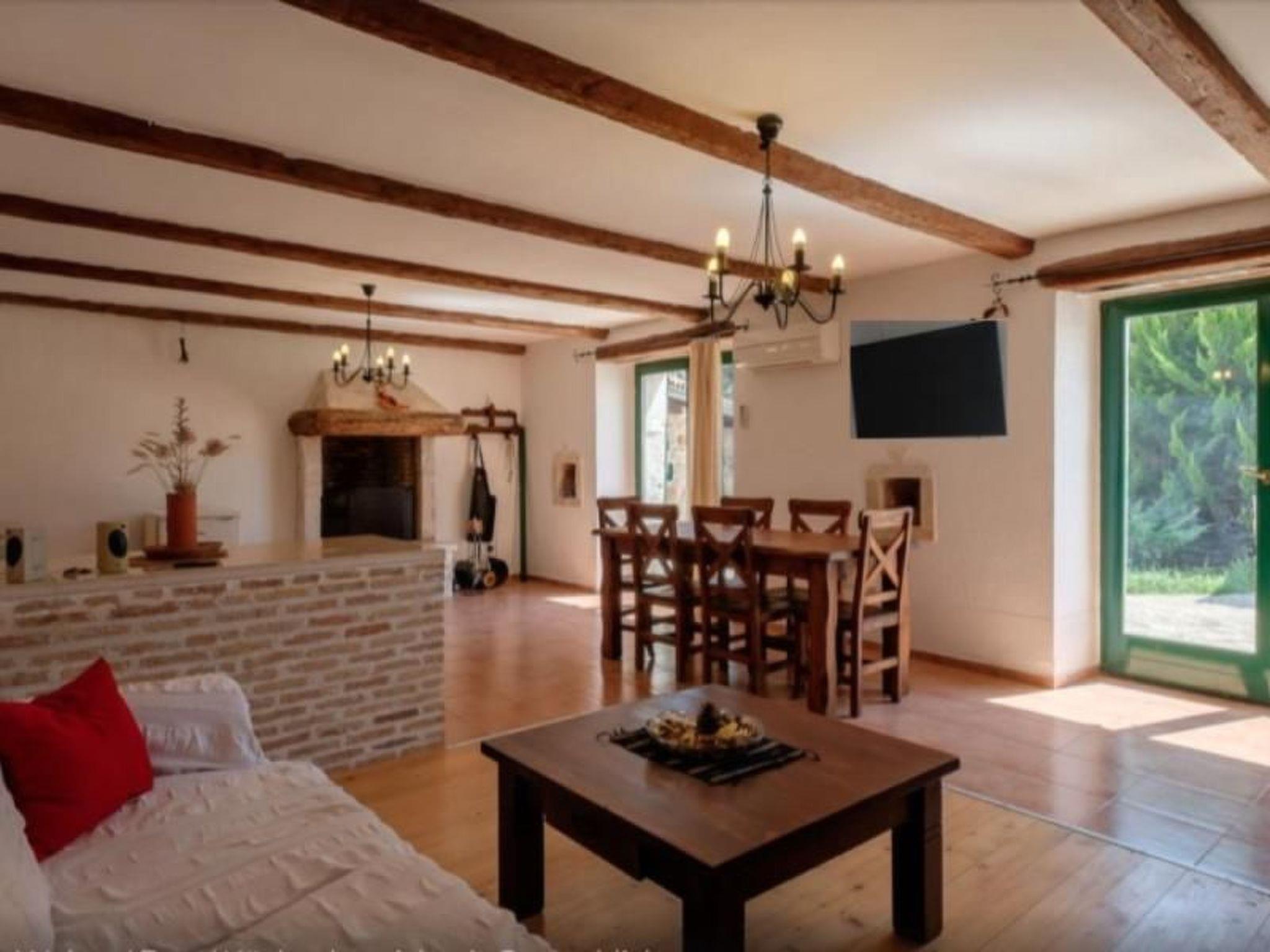 The villa's interior mirrors the elegance of its external stone facade, with spacious living quarters that have been thoughtfully designed to cater to your comfort and convenience. The ground floor unfolds into a generous 50m² living and dining area, featuring an open kitchen fully equipped with modern appliances, including air conditioning, a dishwasher, a ceramic hob, and a microwave. The comprehensive renovation in 2020 emphasized the retention of traditional elements, lending the space a particularly pleasant atmosphere. The upper floor comprises two comfortable bedrooms, each with air conditioning, a ceiling fan, and an ensuite bathroom, offering private retreats that promise restful nights.