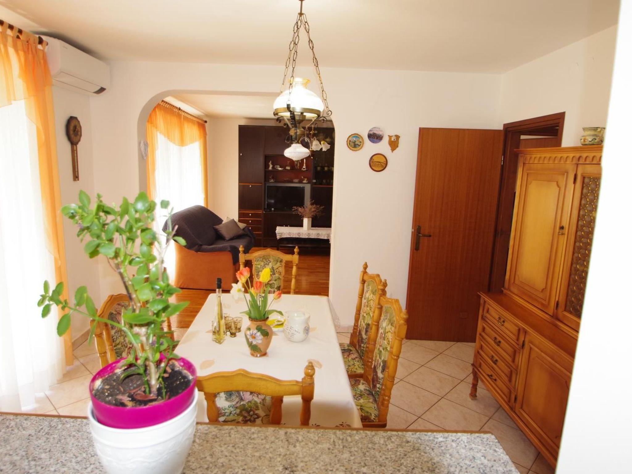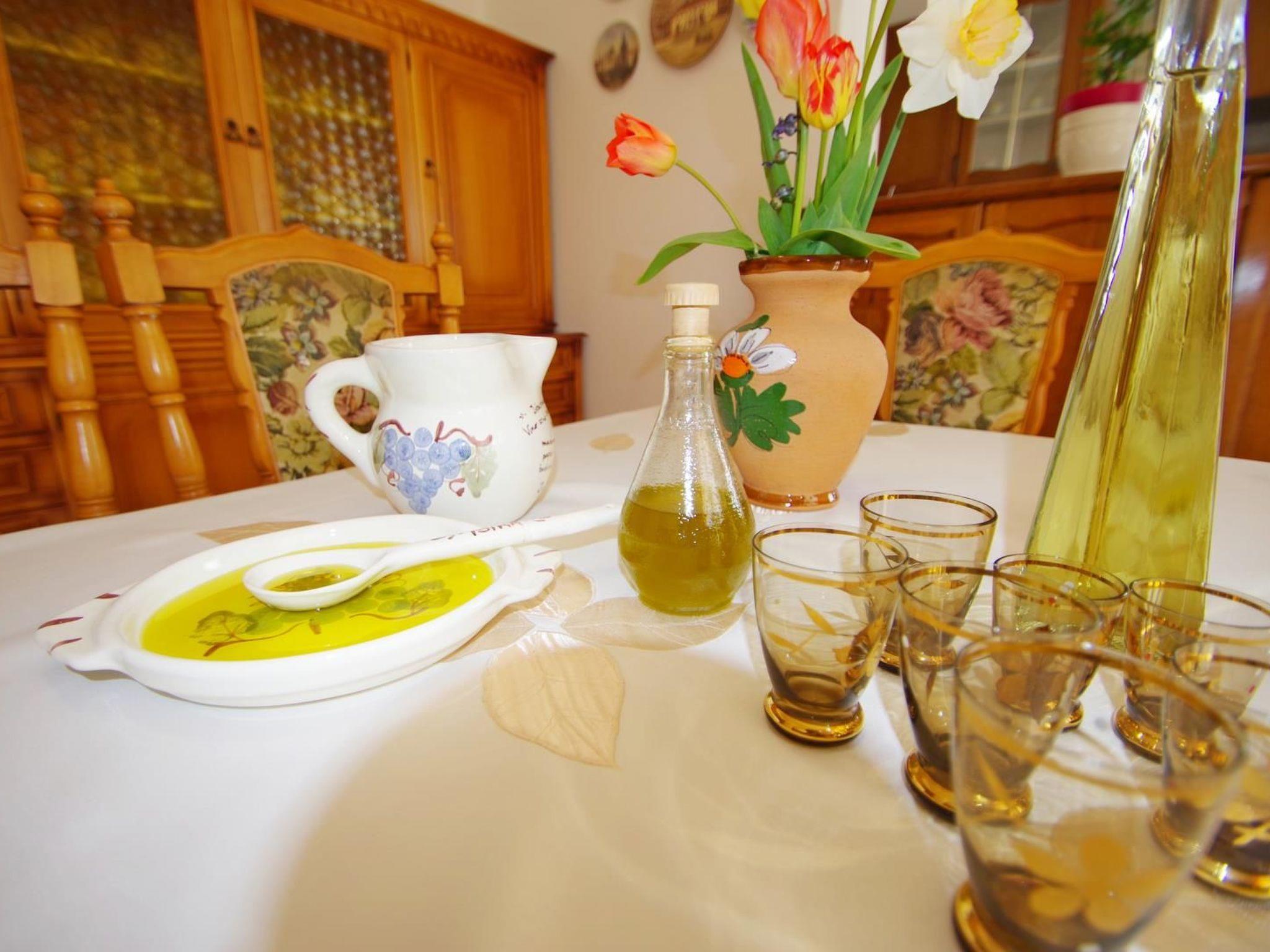 The interior area of the apartment is 110 m2. Furnished for the full living comfort, this apartment offers air condition, private parking space, bed linen and towels, baby cot and high chair on request, iron and board, grill on disposal, 1 pet allowed on request, the possibility of buying domestic olive oil directly from the owner. The owner is living on the first floor.