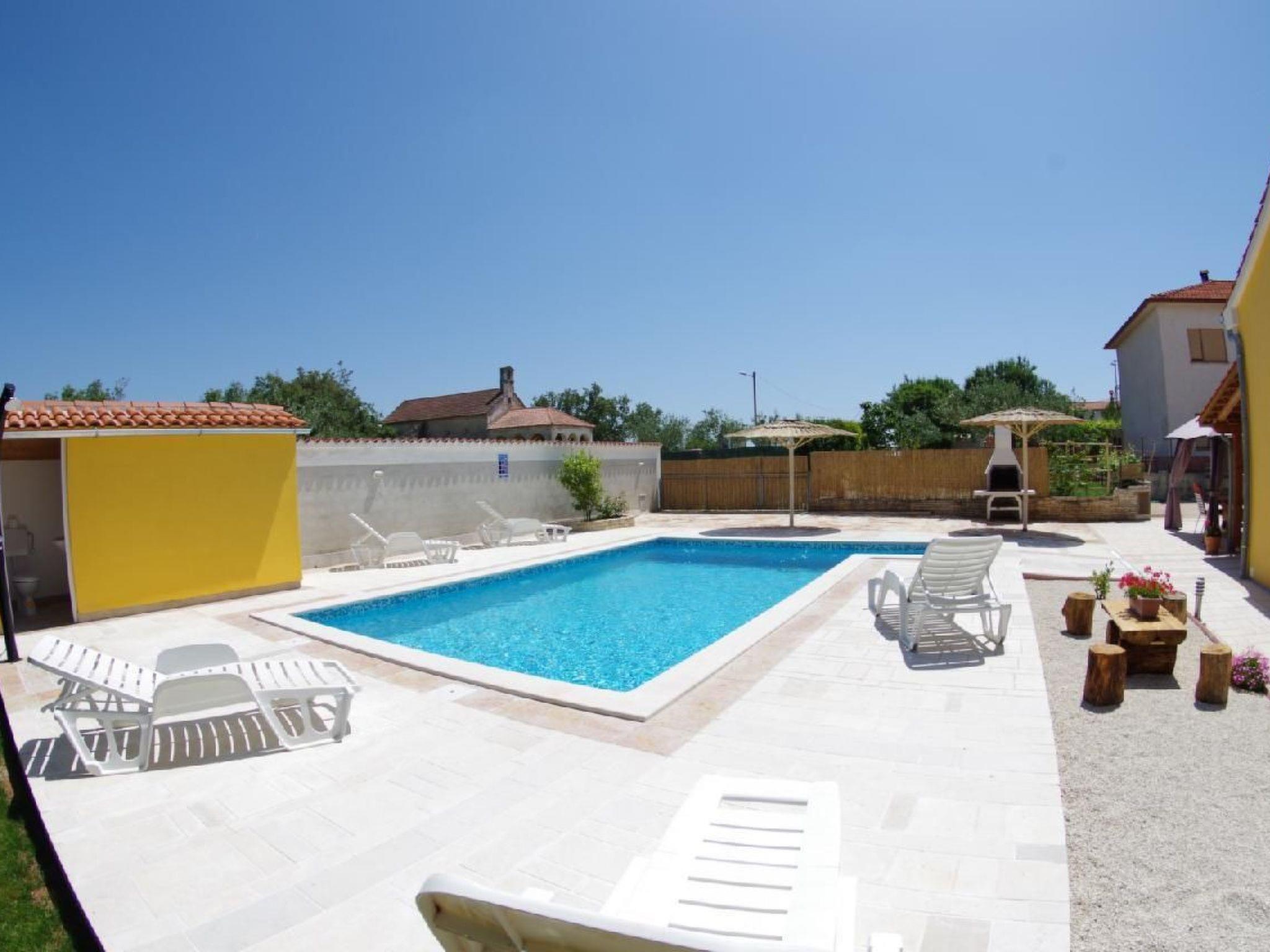 Step into the serene ambiance of our comfortable, self-standing ground-floor house located at the entrance of the quaint Istrian village of St. Kirin. This property is an ideal retreat for groups of friends or two families who seek a vacation away from the hustle and bustle of city life, offering a private oasis with its own pool measuring 8x4 meters. For those who crave urban excitement, the vibrant city life and colorful sites of Pula are just 15 kilometers to the south, making it easily accessible for day trips or evening outings.