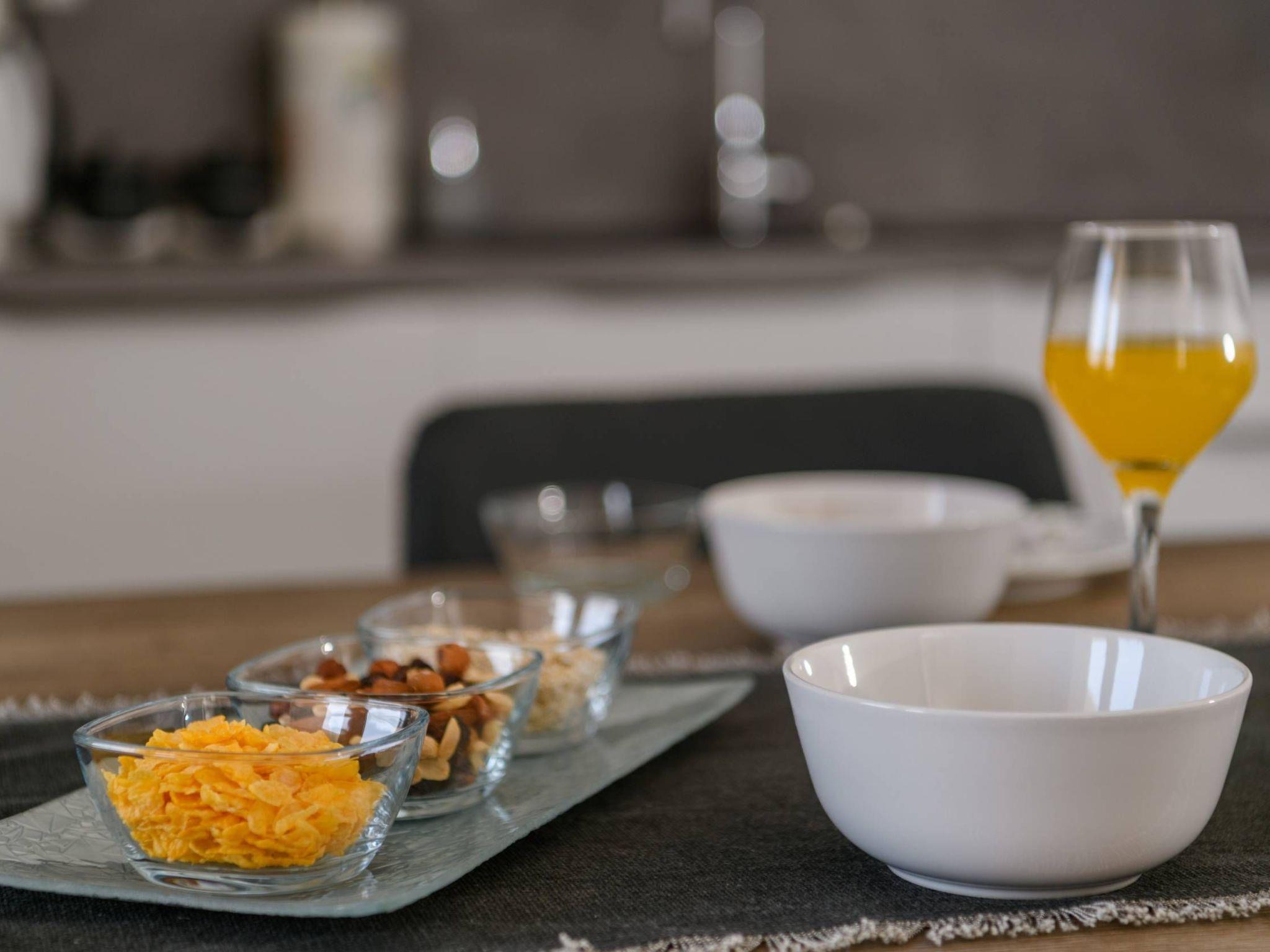 The kitchen is fully equipped and has a dishwasher and a microwave.